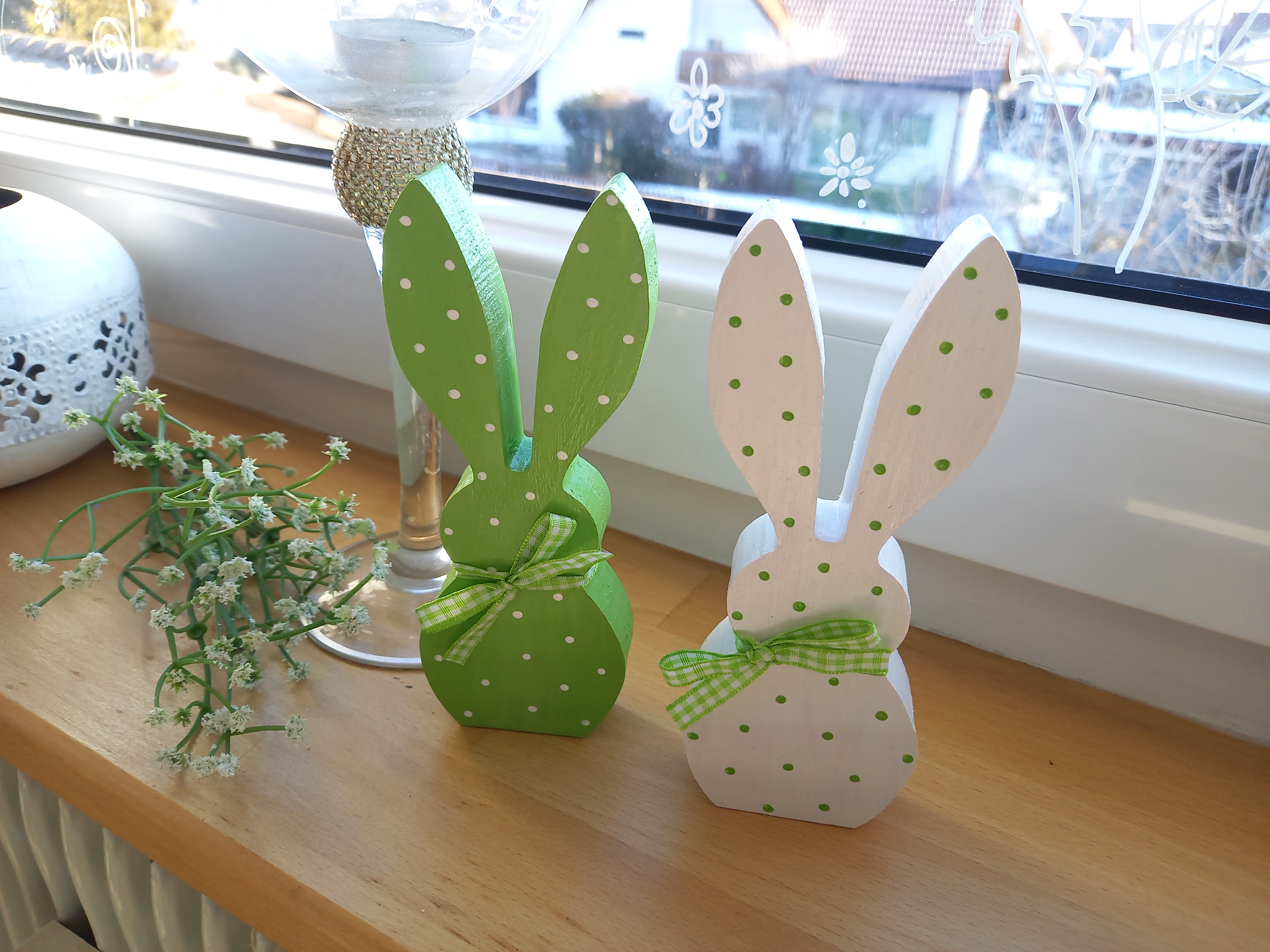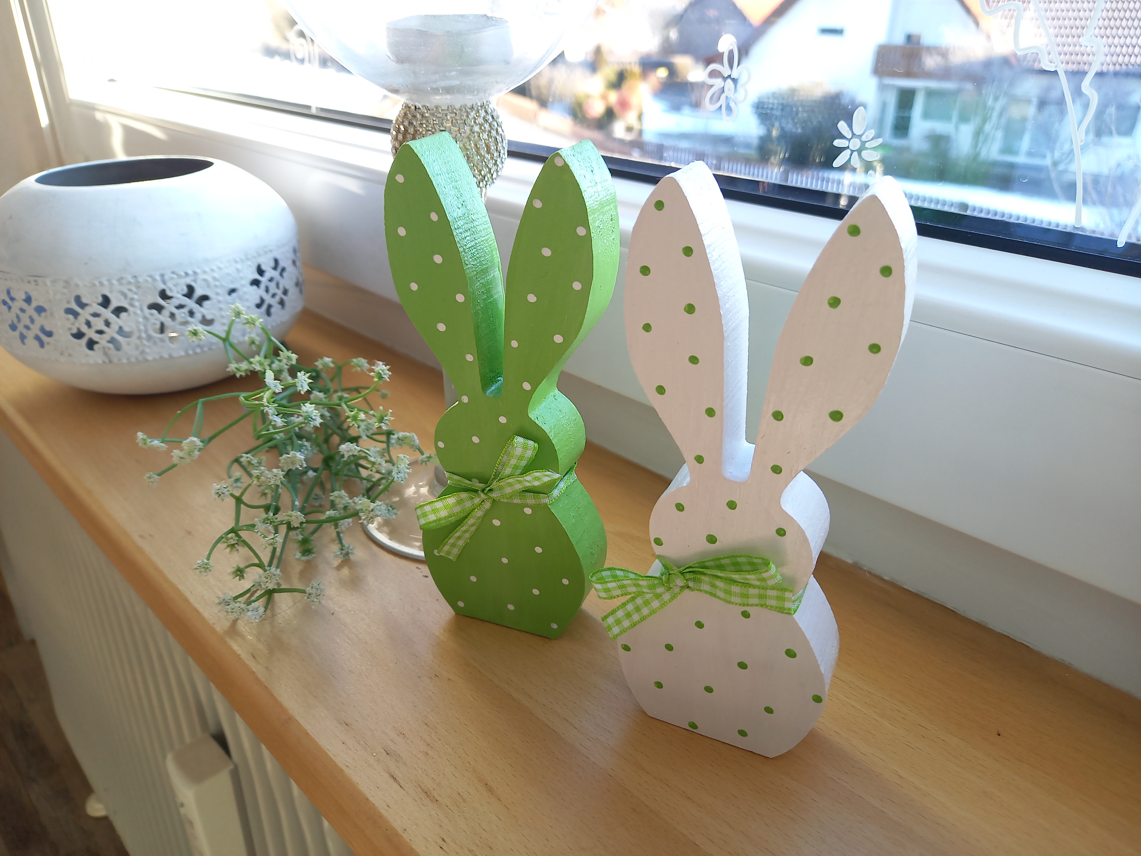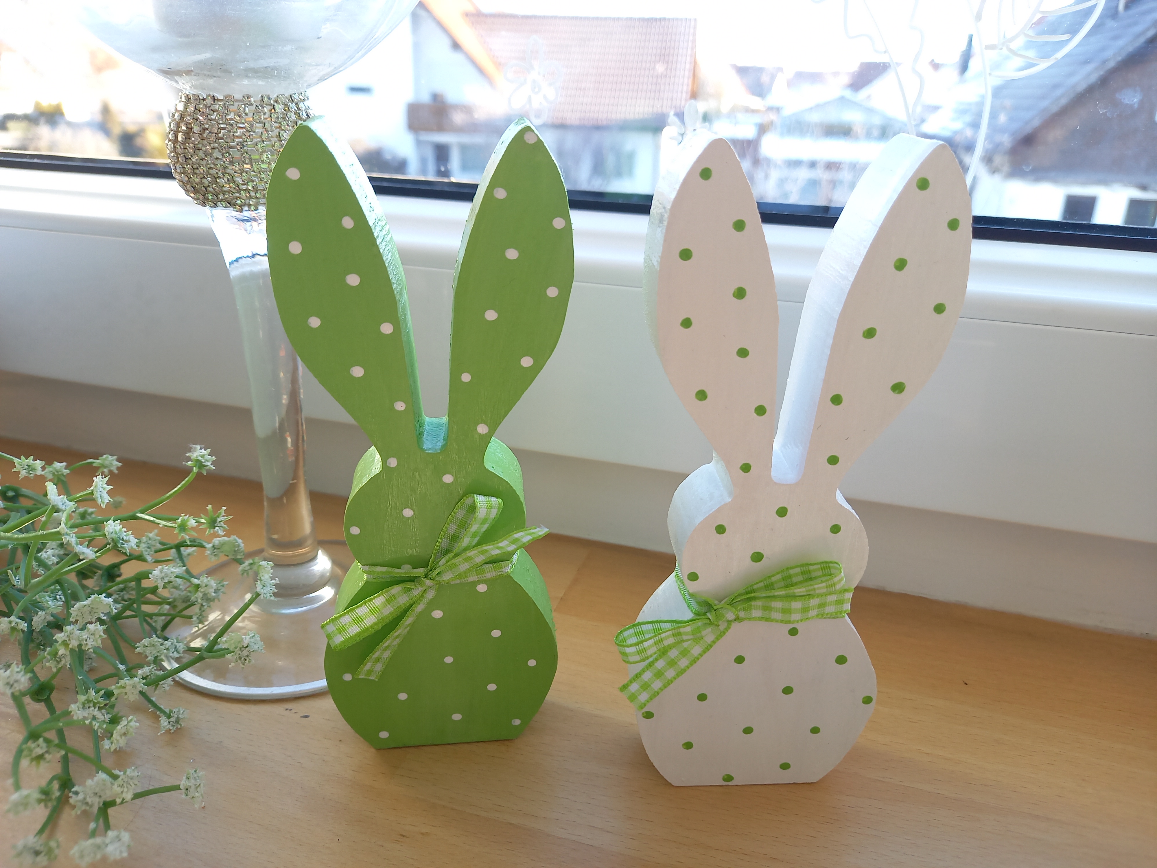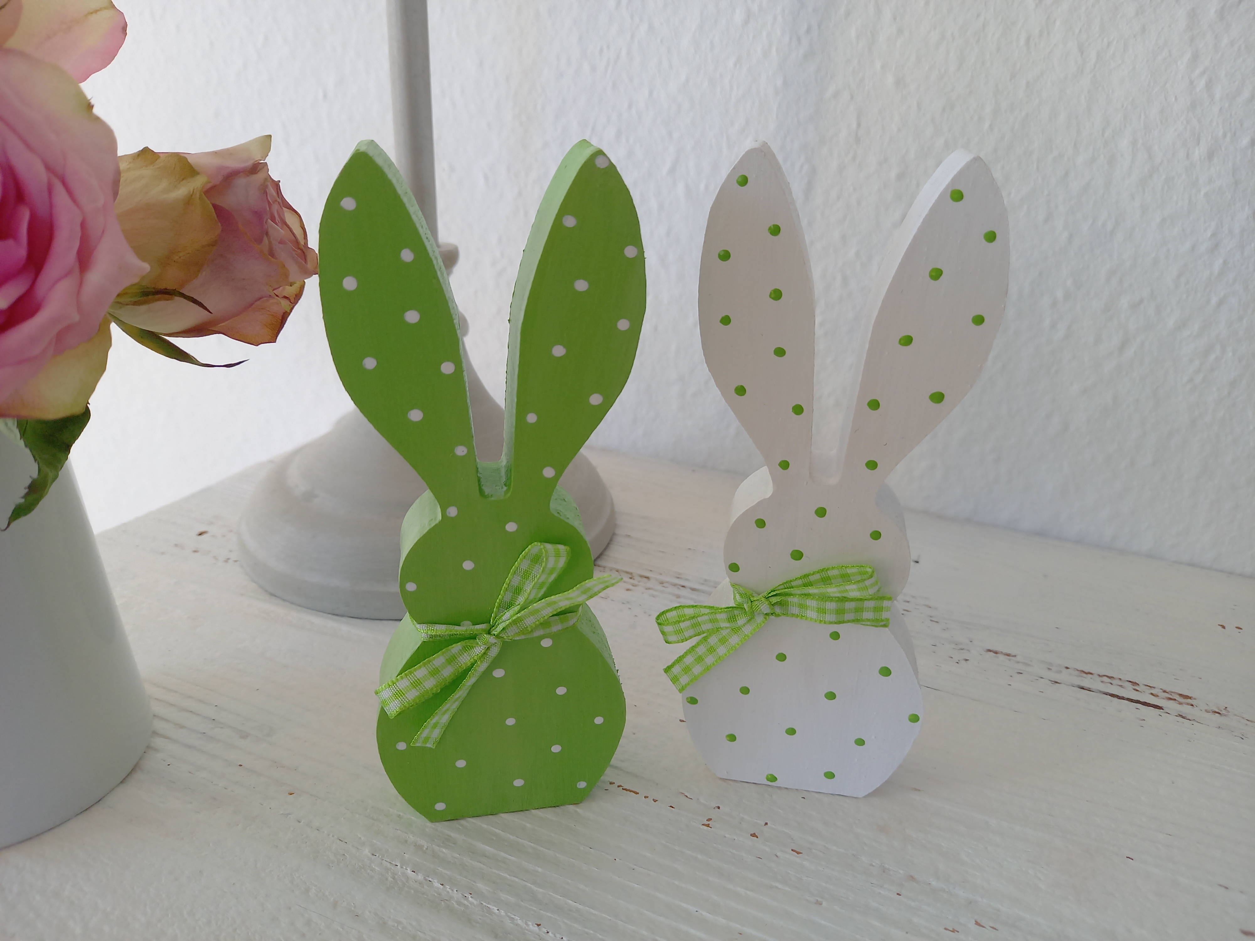 2 Osterhasen * Pünktchen * Grün * 15 x 6 x 2 cm