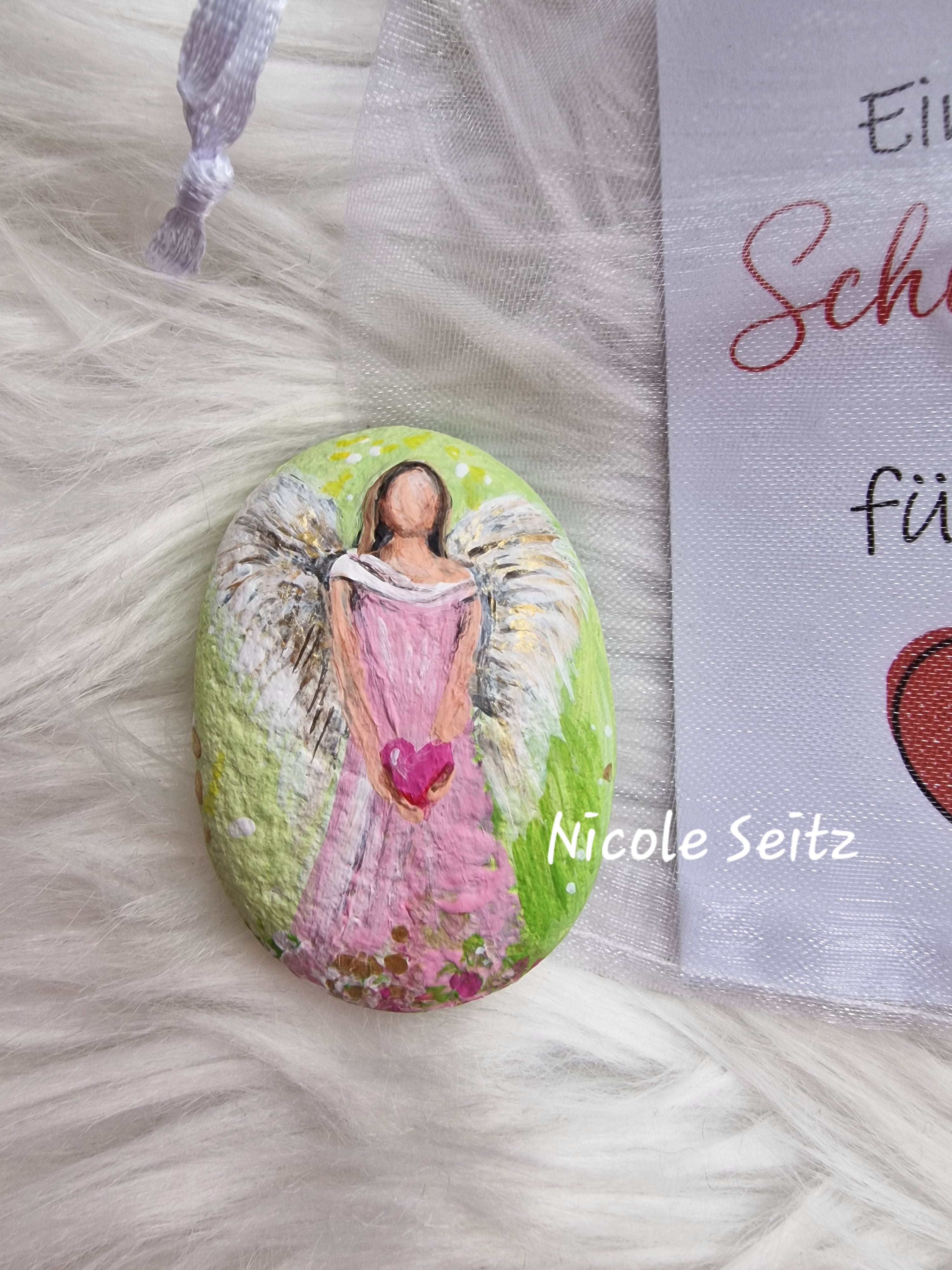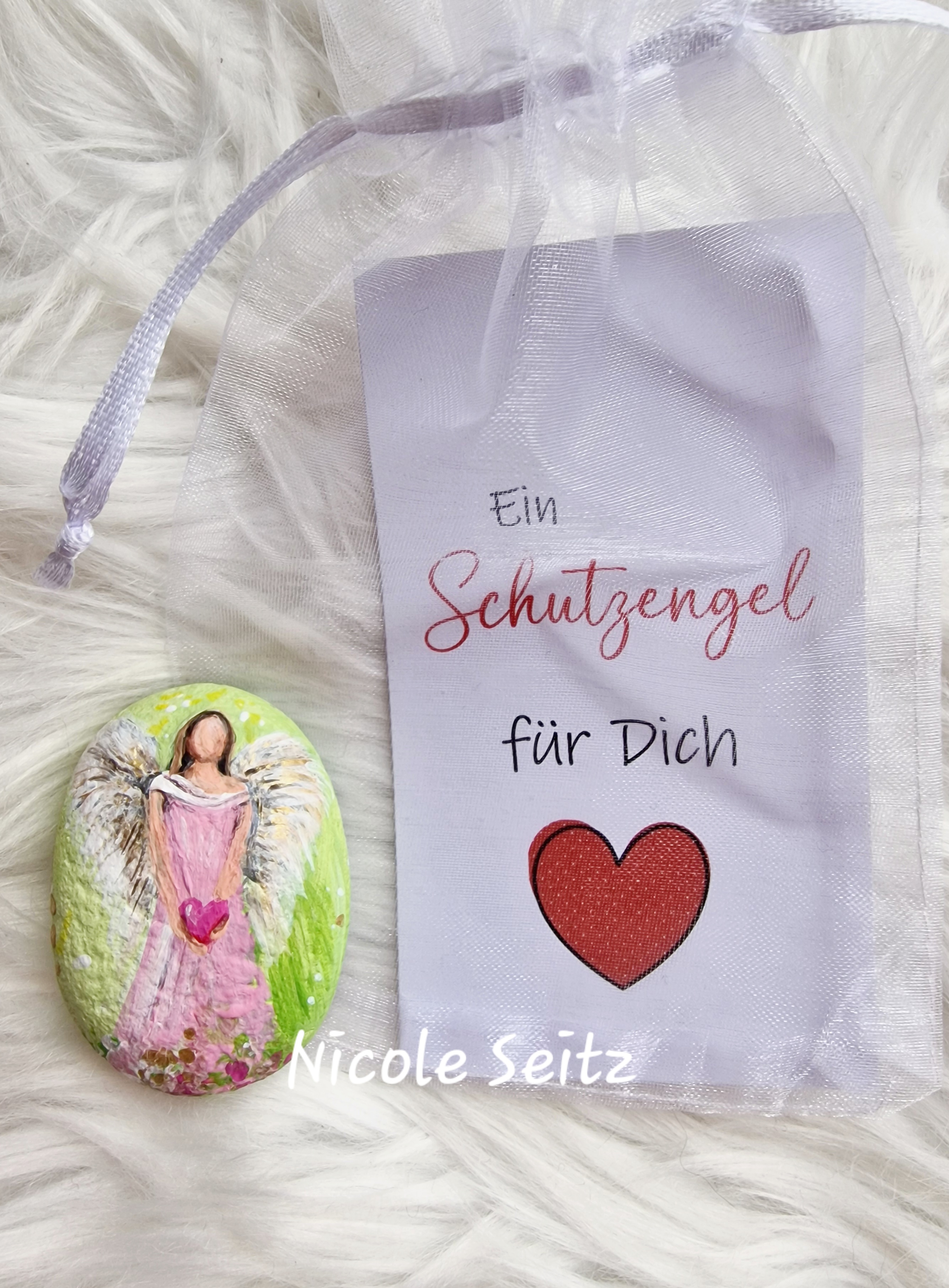 Hosentaschen-Schutzengel in einem weißen Organza-Säckchen