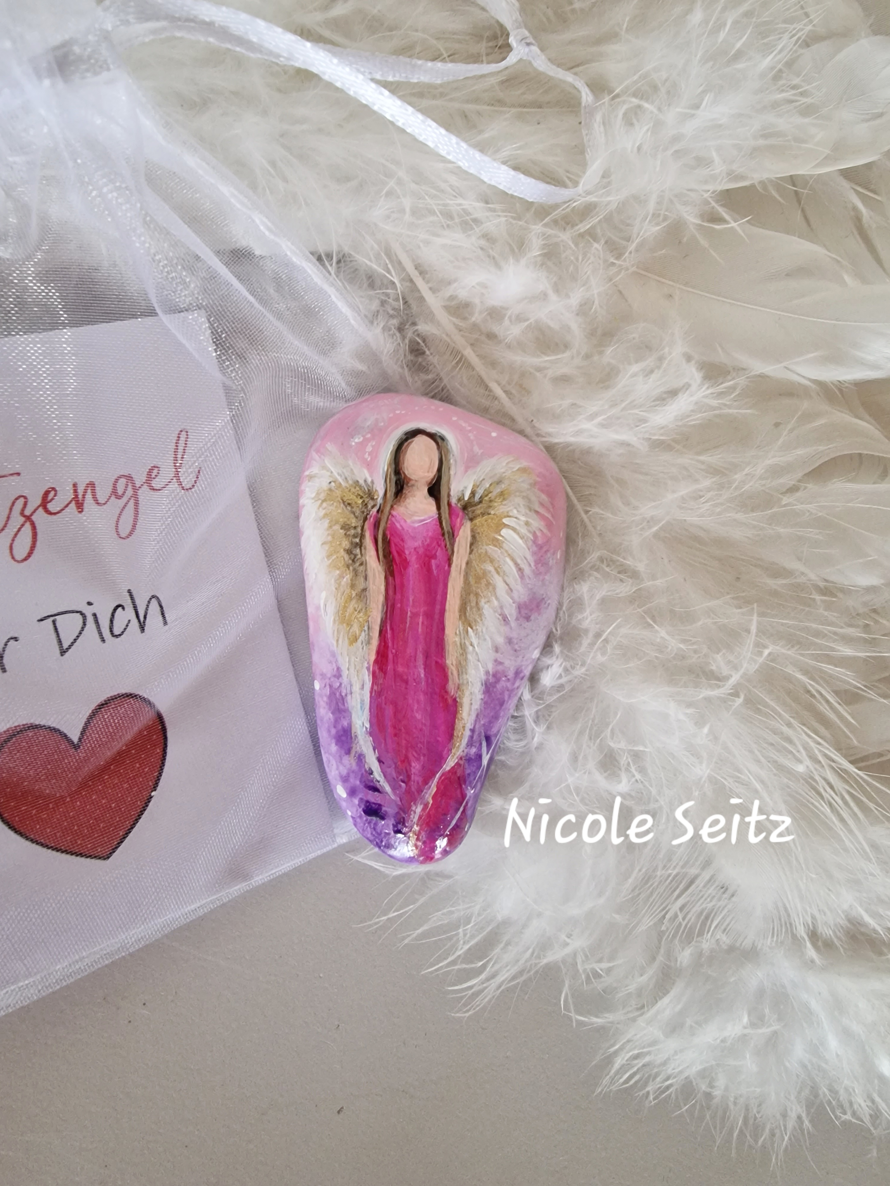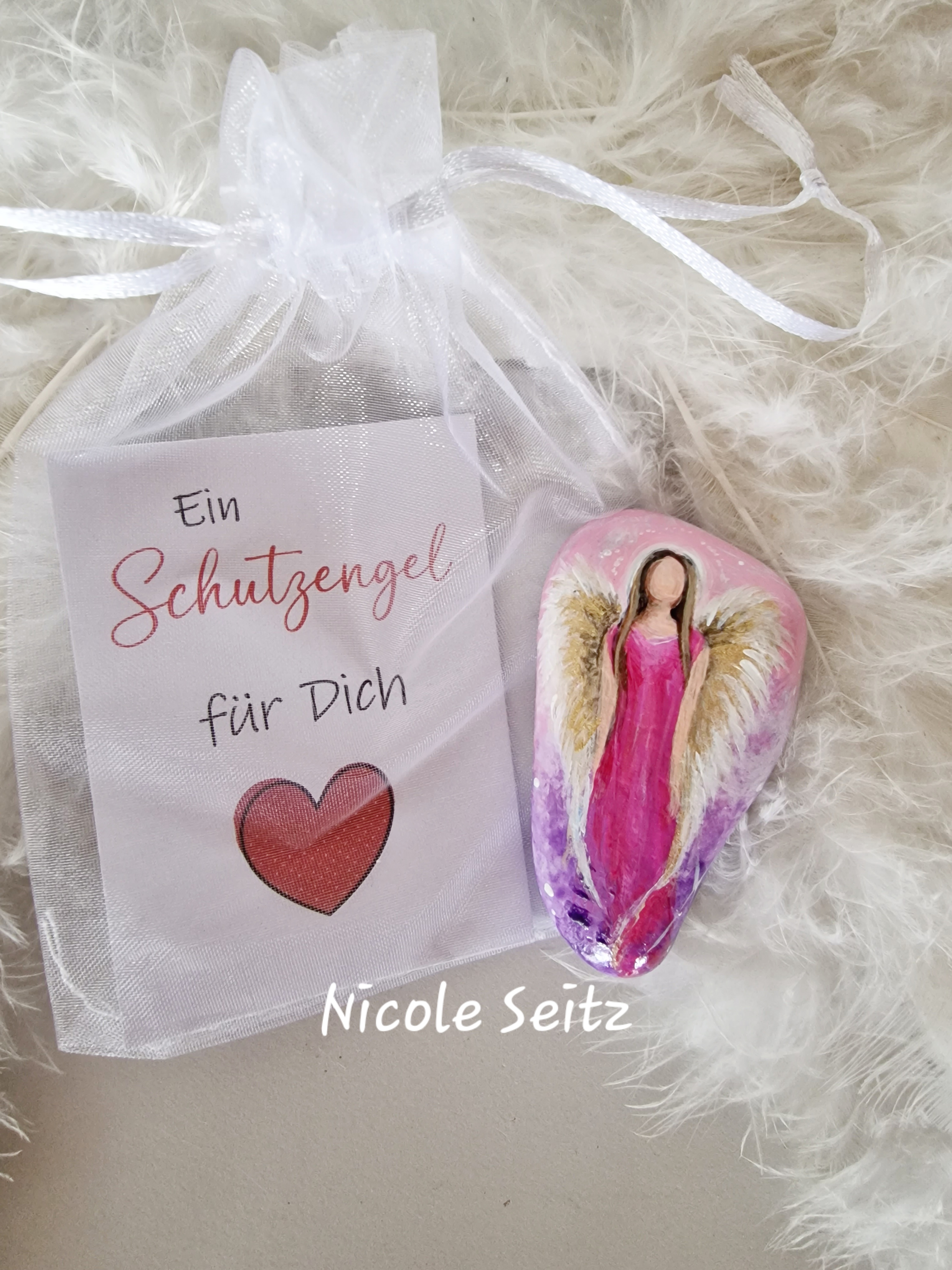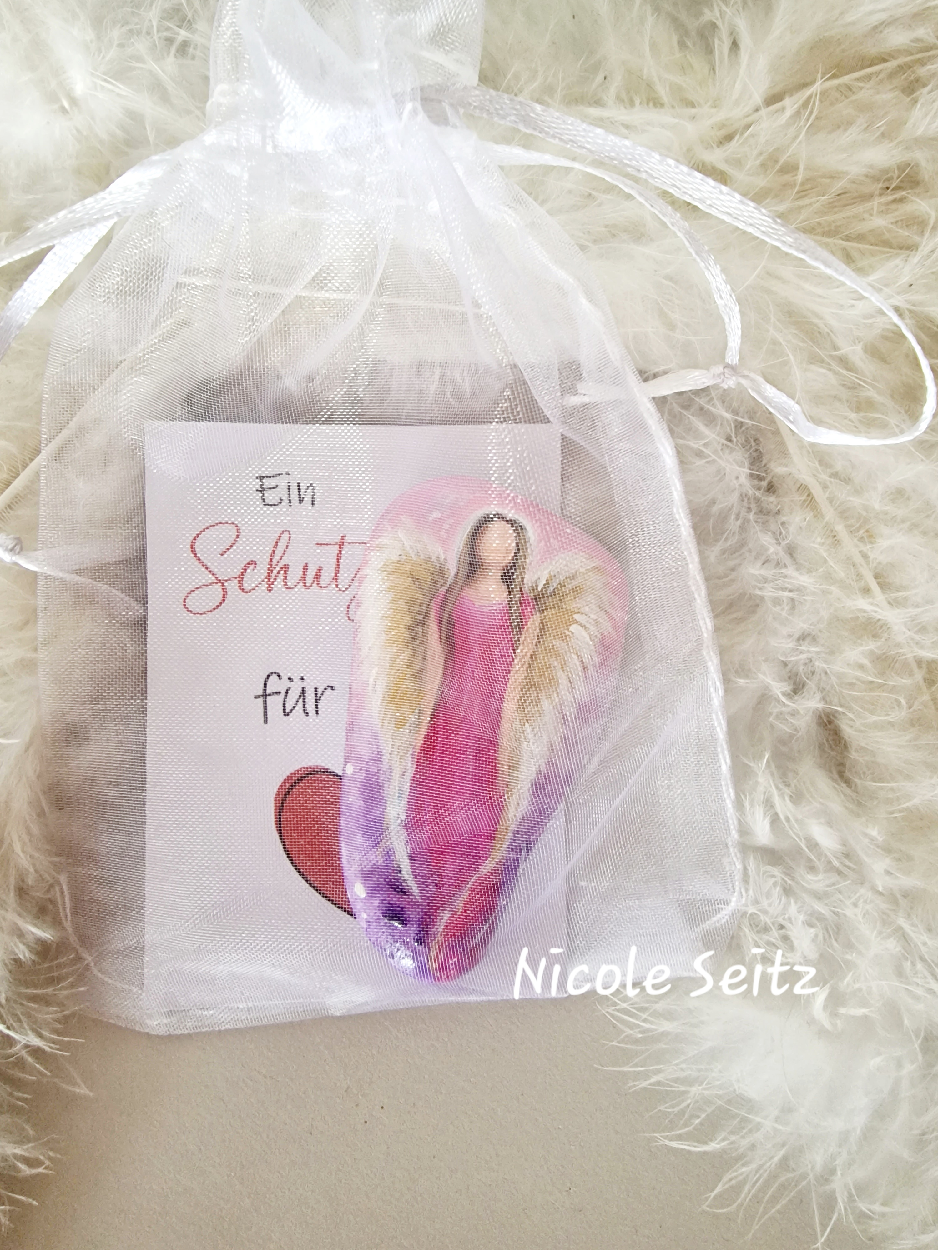 Hosentaschen-Schutzengel in einem weißen Organza-Säckchen