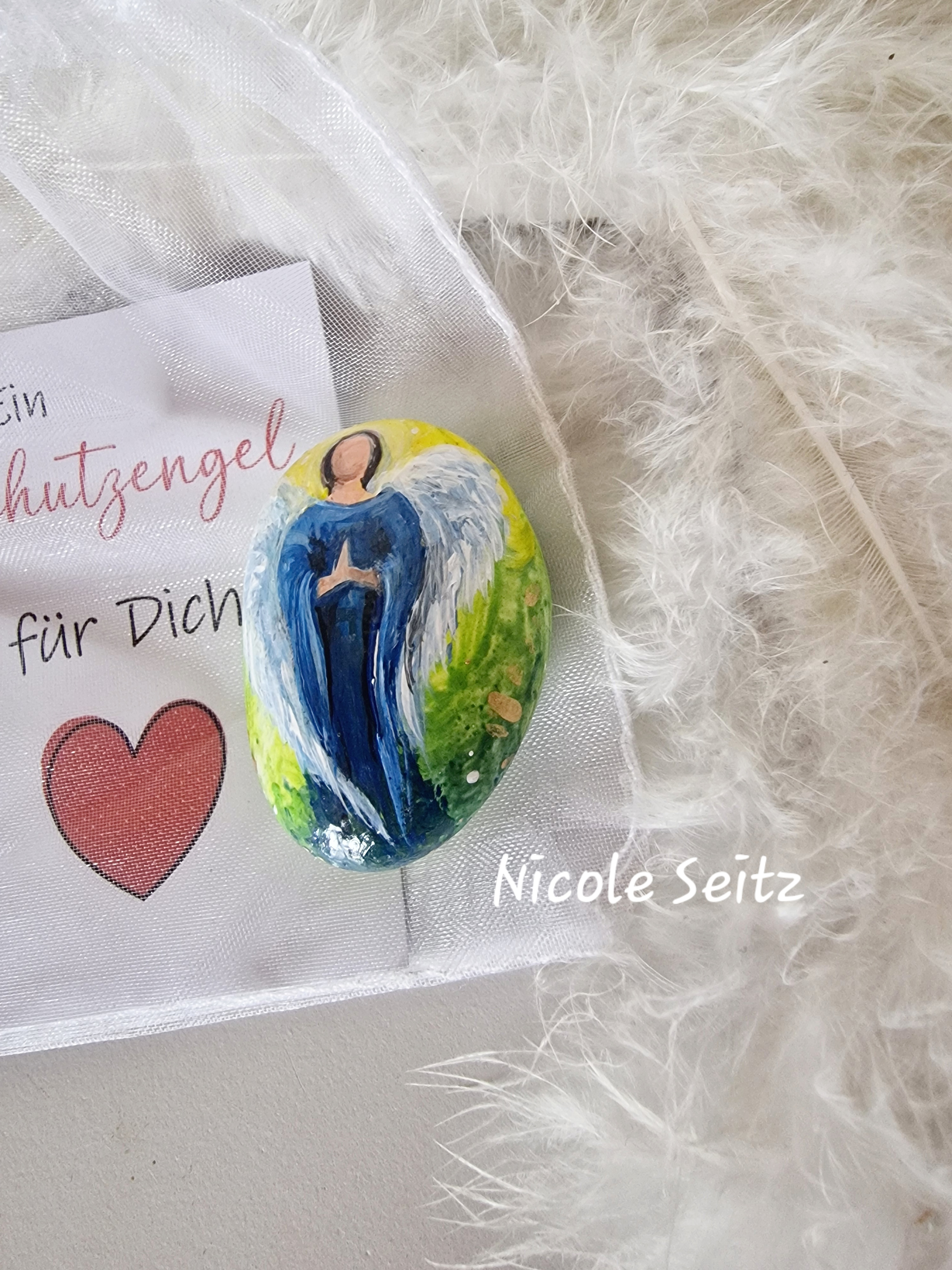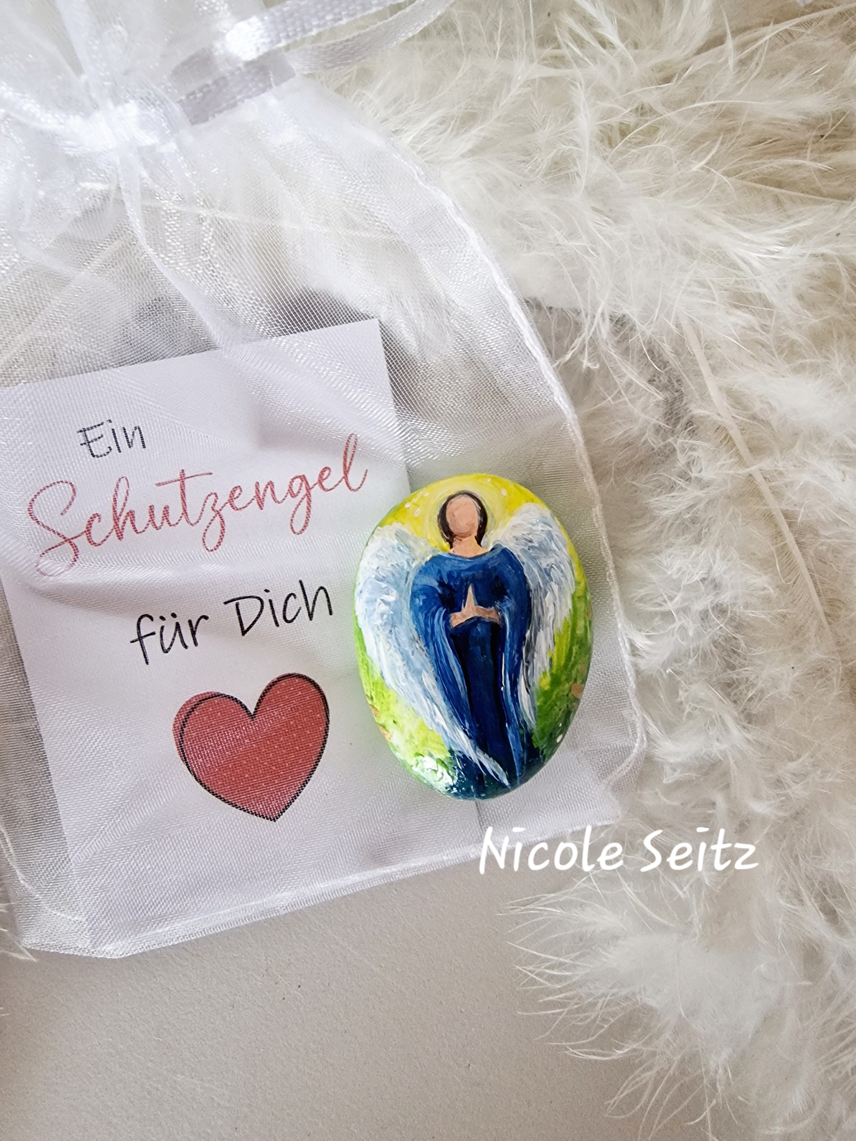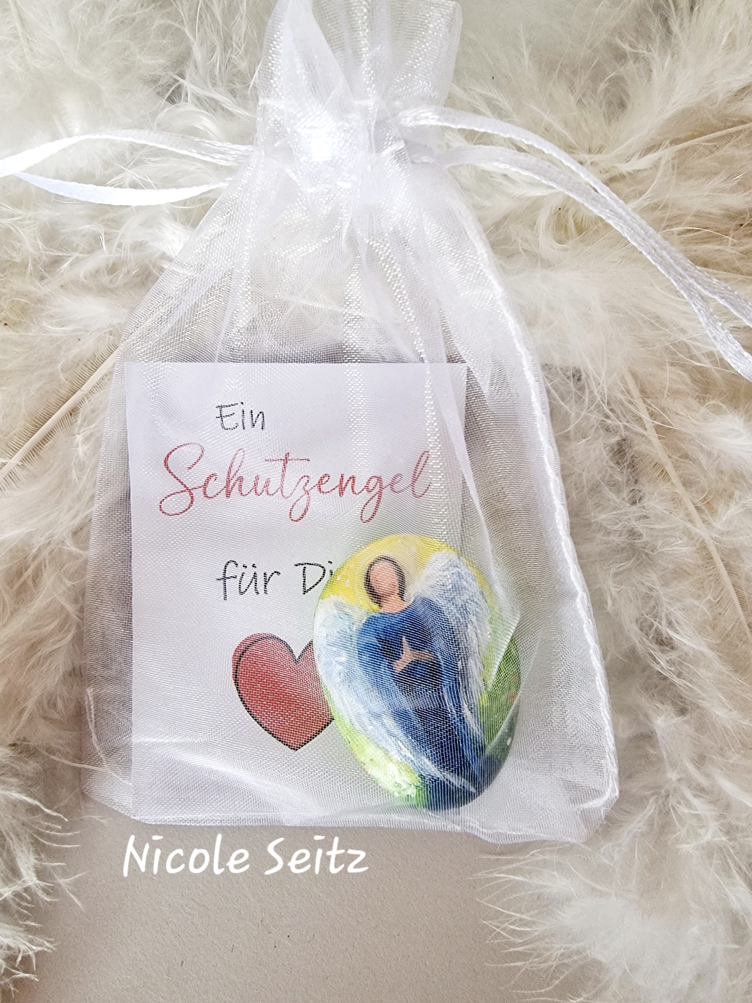 Hosentaschen-Schutzengel in einem weißen Organza-Säckchen