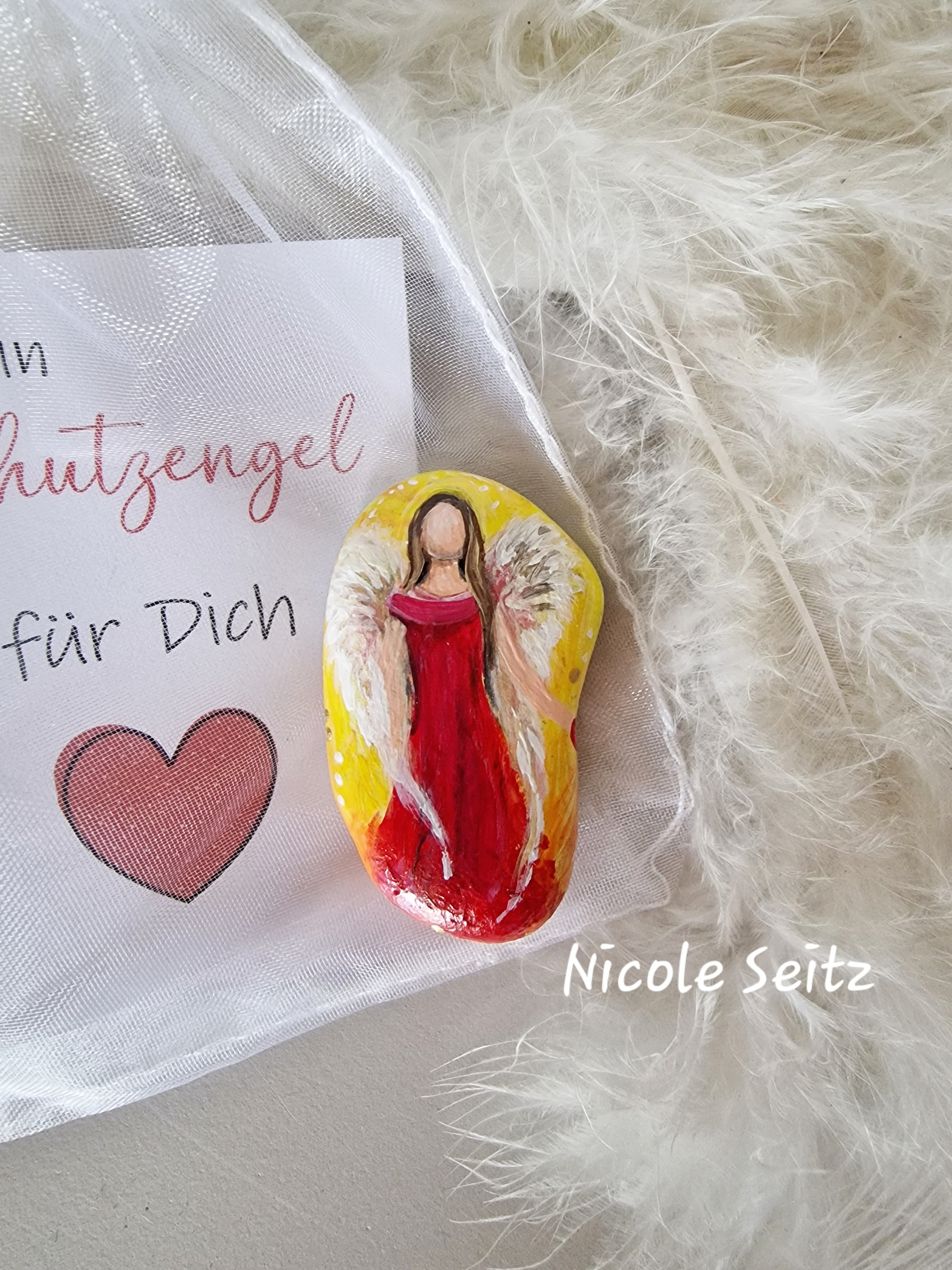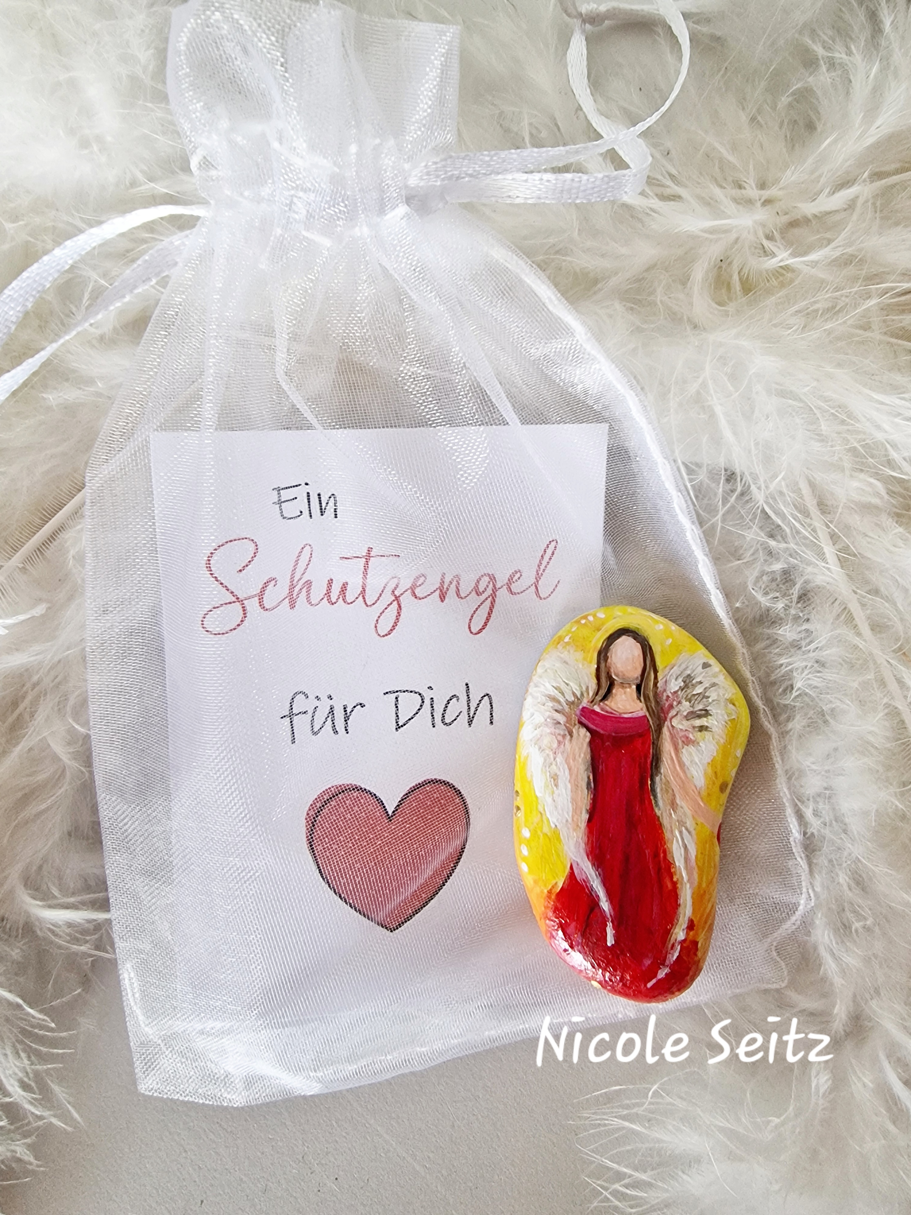 Hosentaschen-Schutzengel in einem weißen Organza-Säckchen