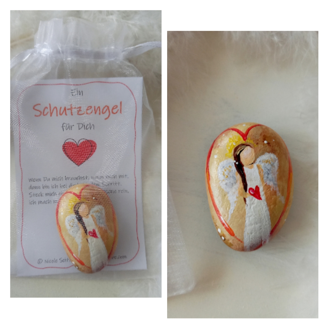 Hosentaschen-Schutzengel in einem weißen Organza-Säckchen