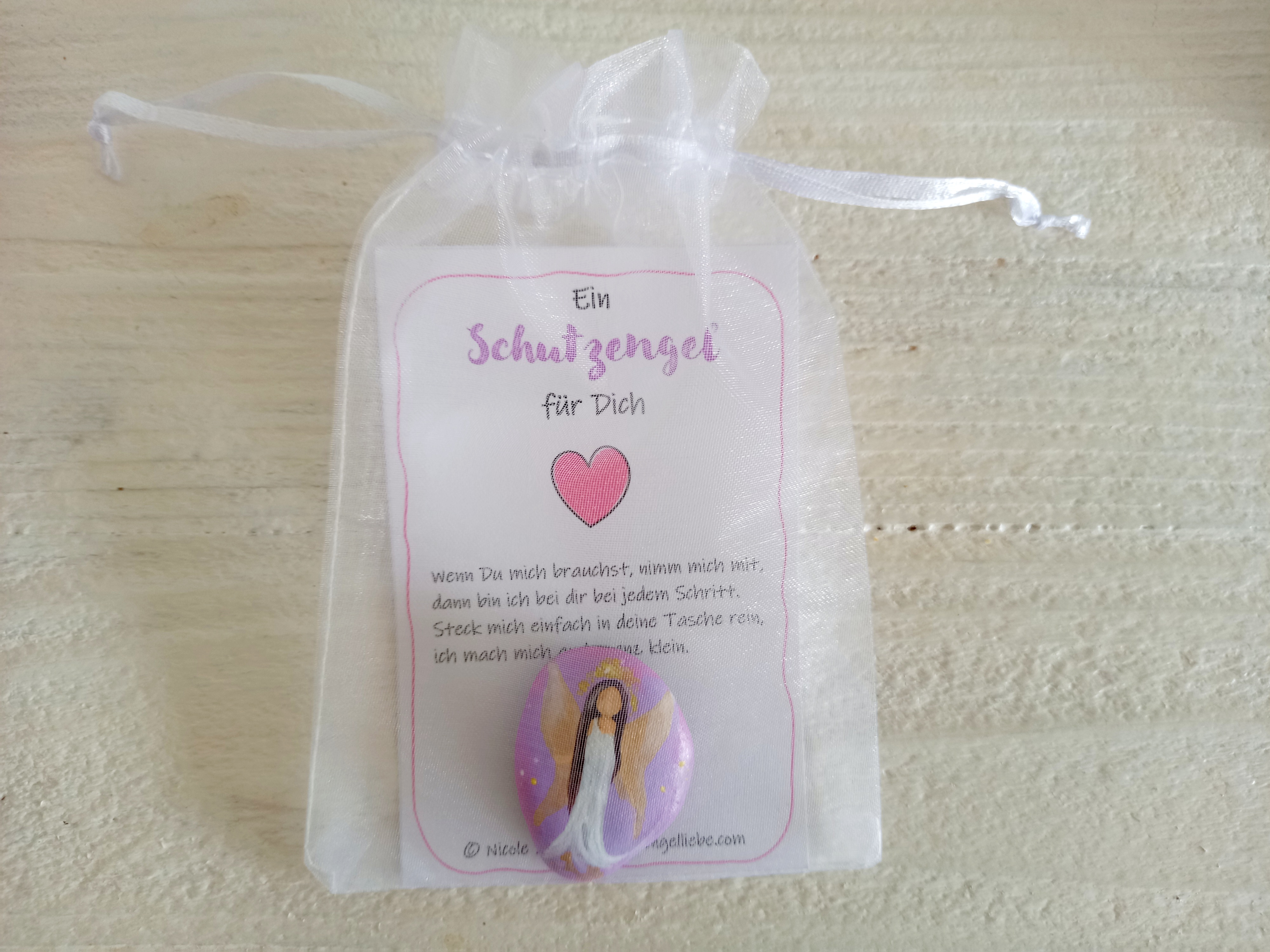 Hosentaschen-Schutzengel in einem weißen Organza-Säckchen