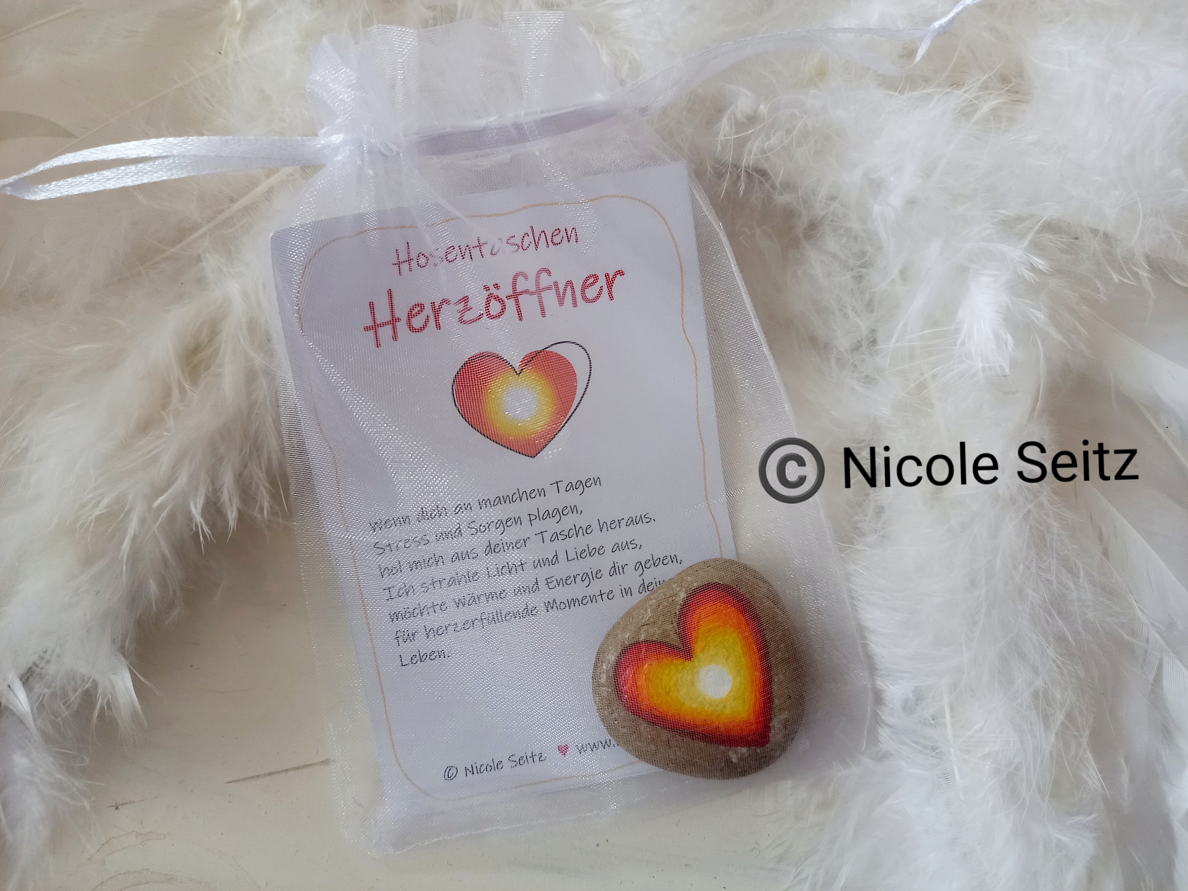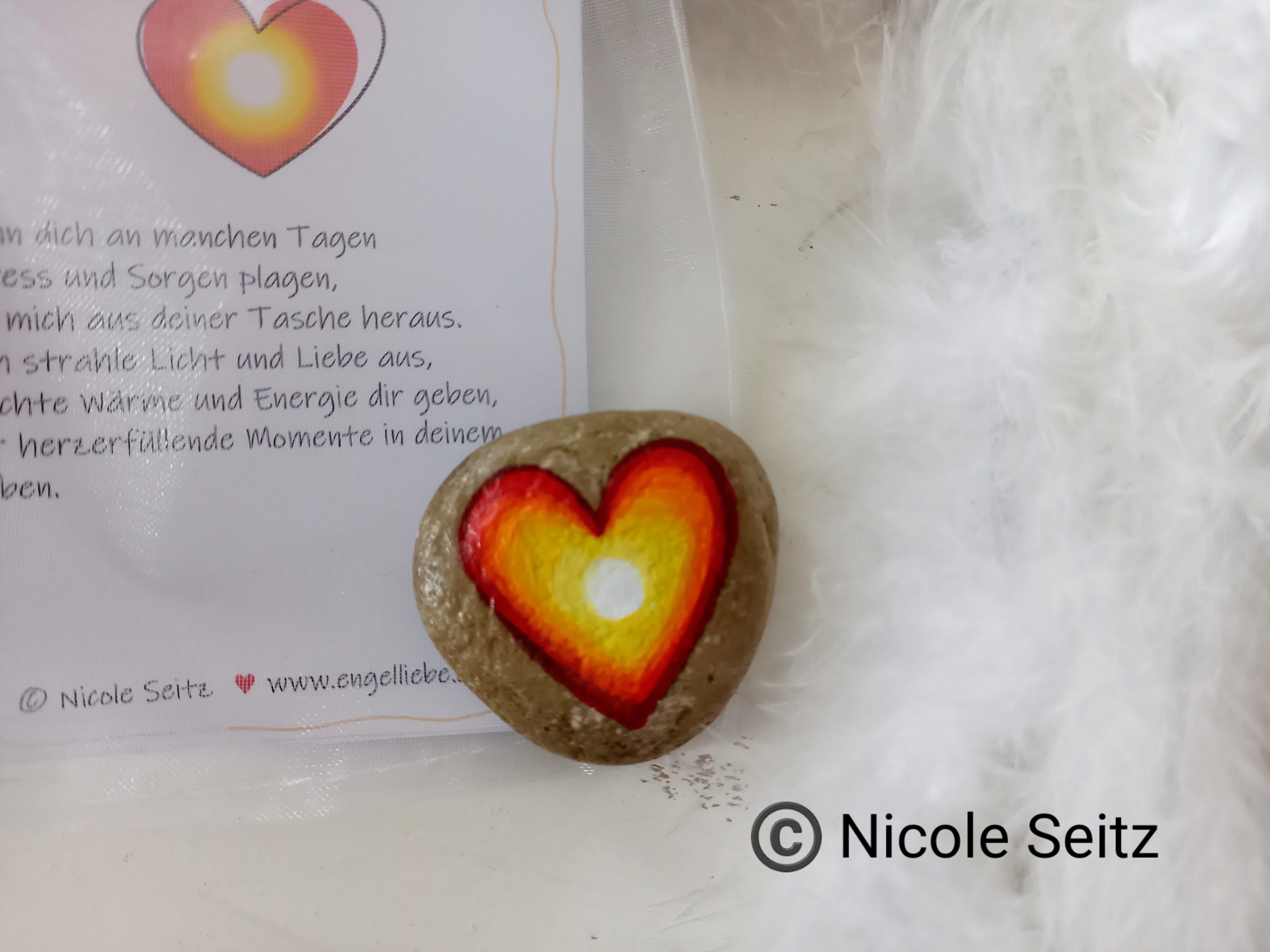Der Stein ist mit einem Herz bemalt, das Wärme und Energie ausstrahlt.