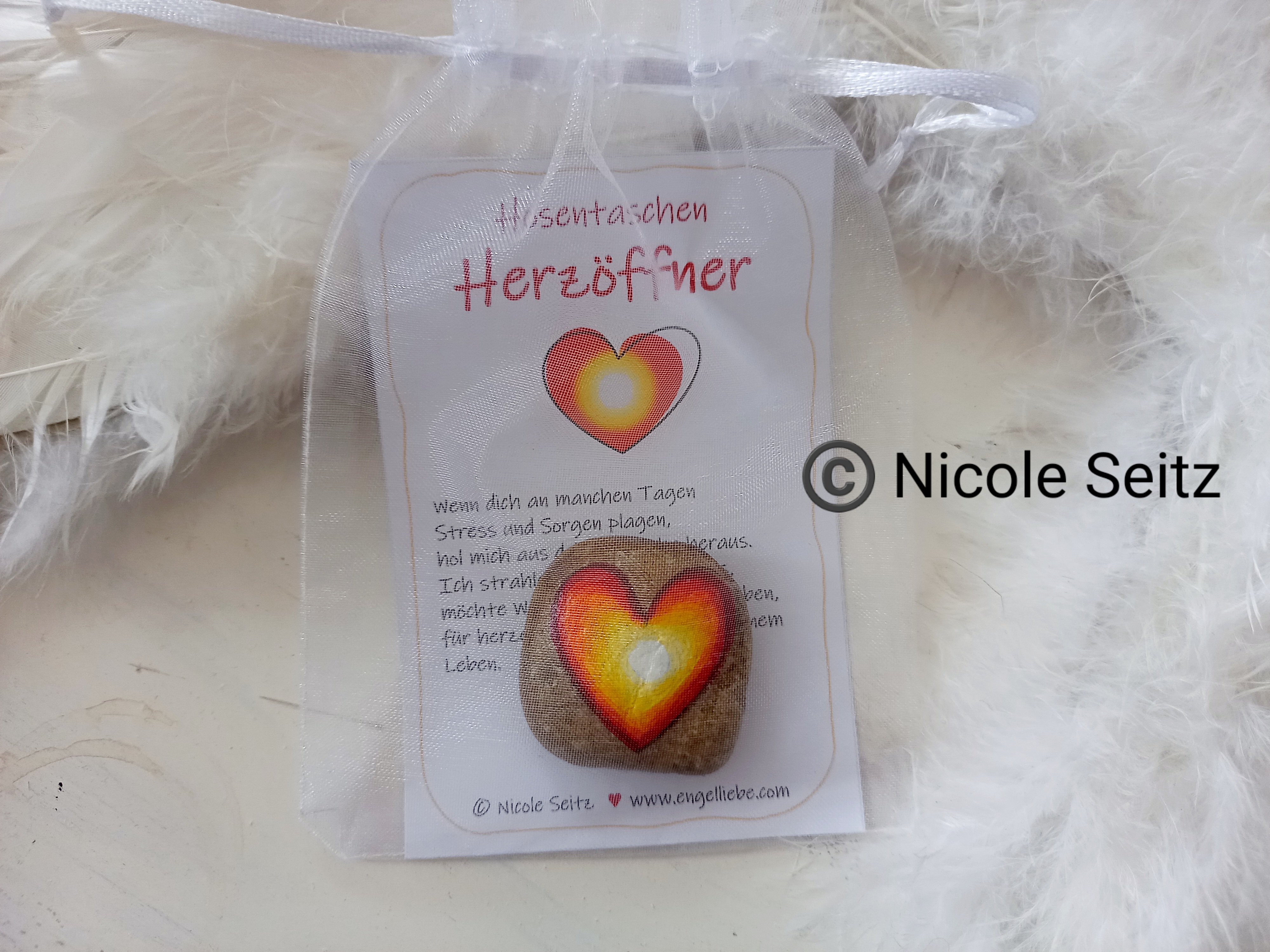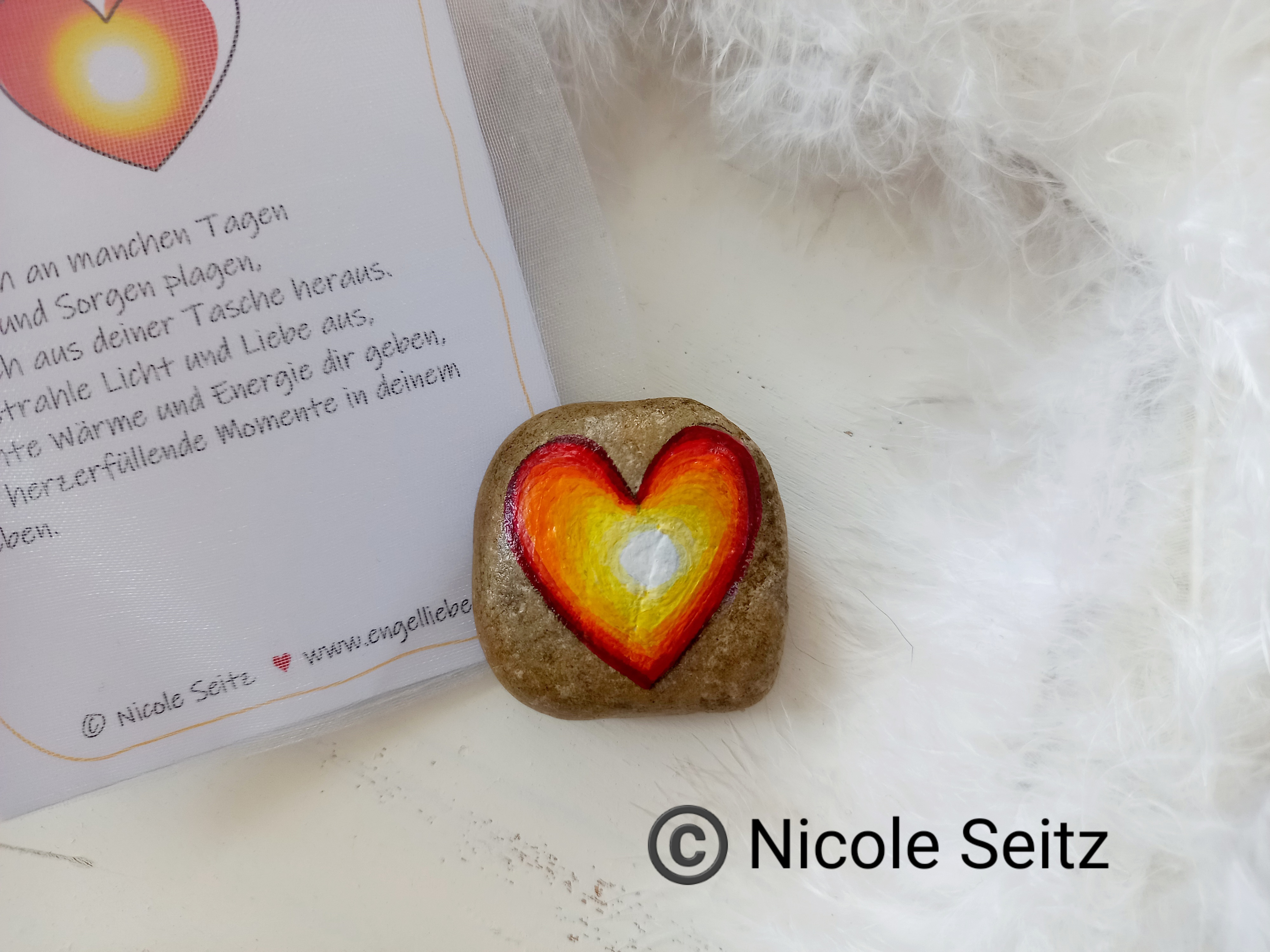 Der Stein ist mit einem Herz bemalt, das Wärme und Energie ausstrahlt.