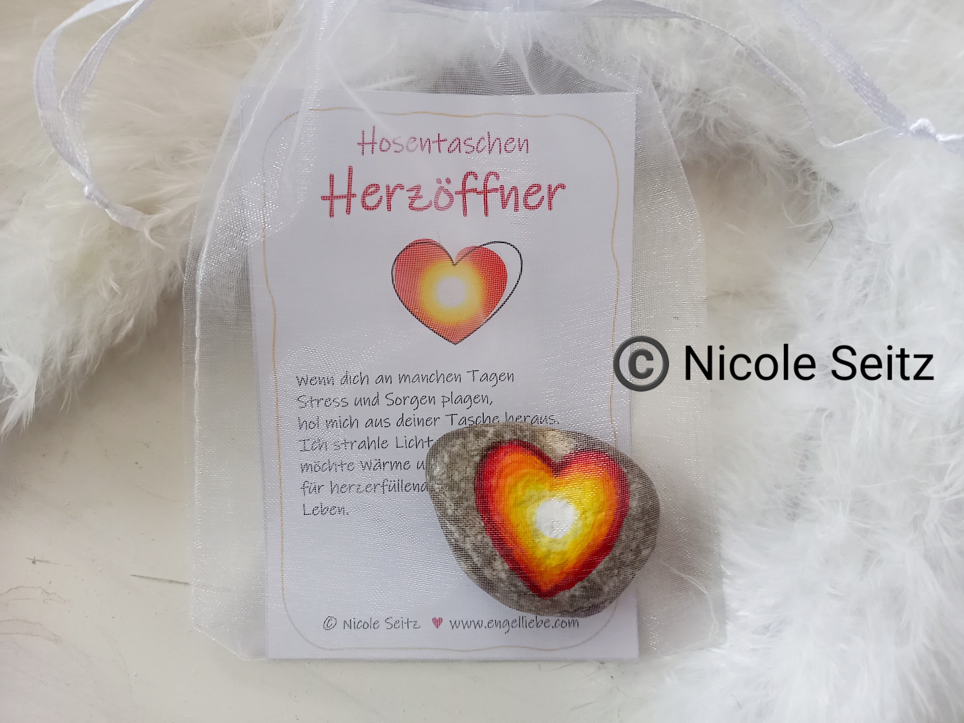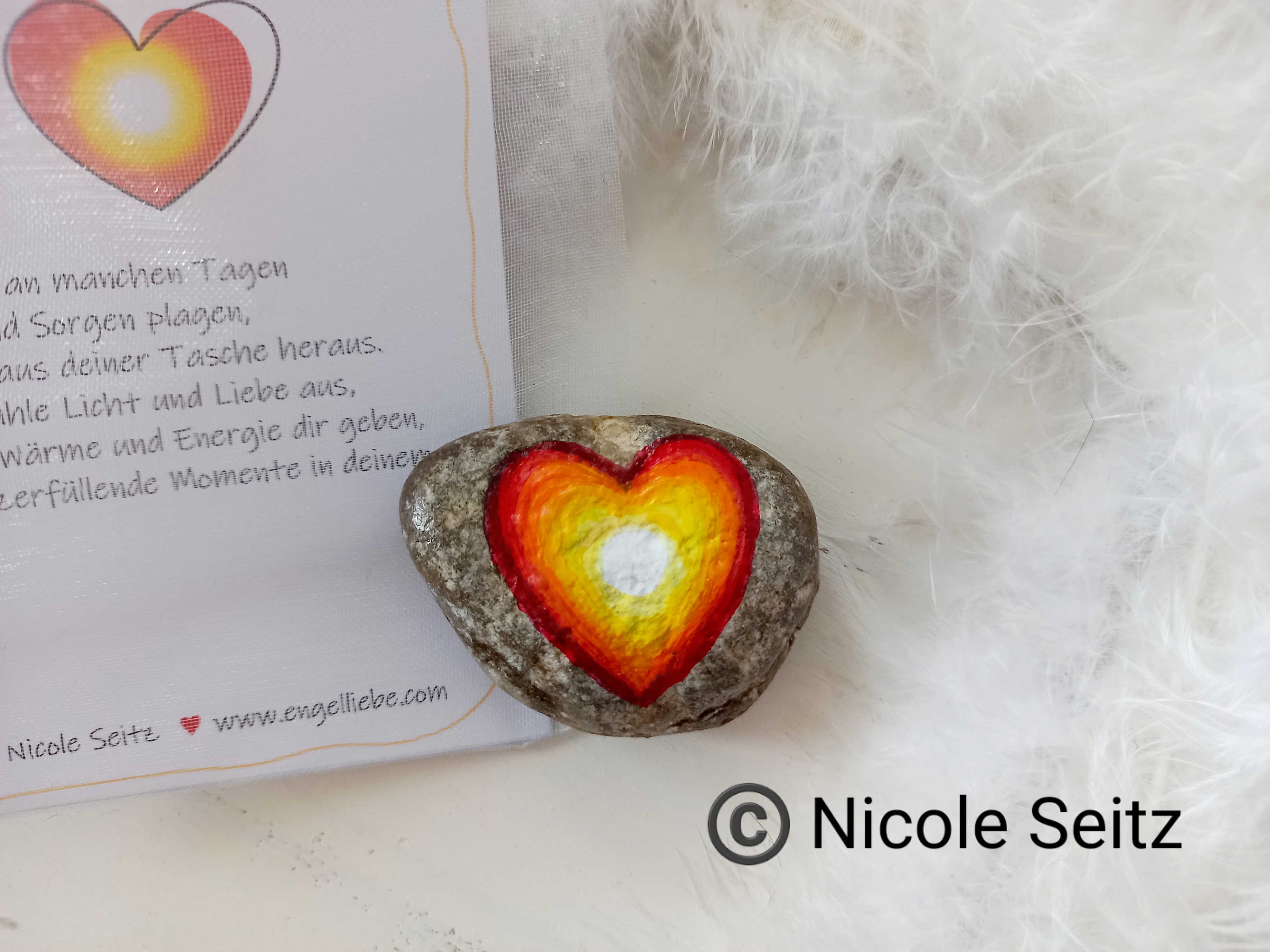 Der Stein ist mit einem Herz bemalt, das Wärme und Energie ausstrahlt.