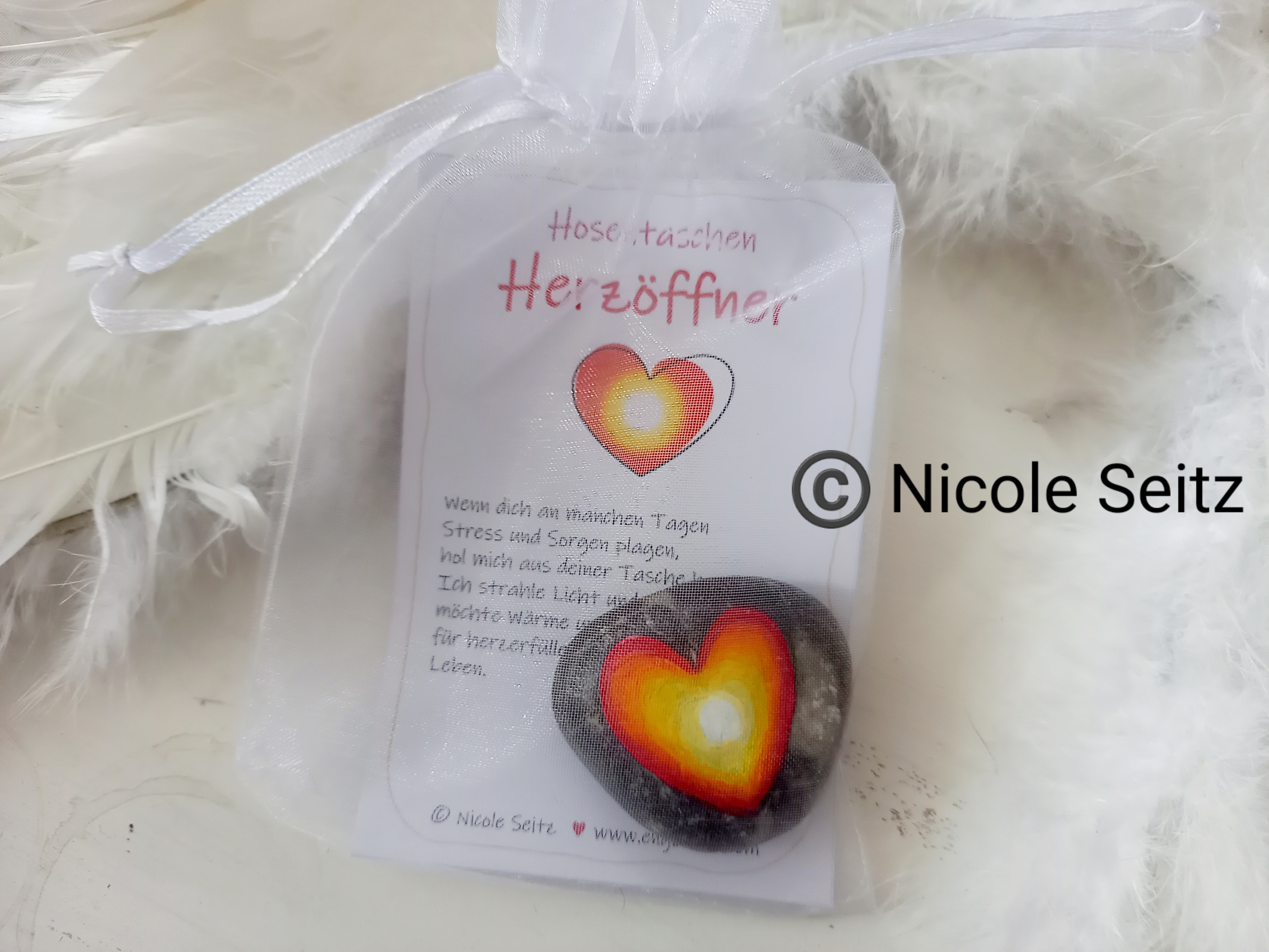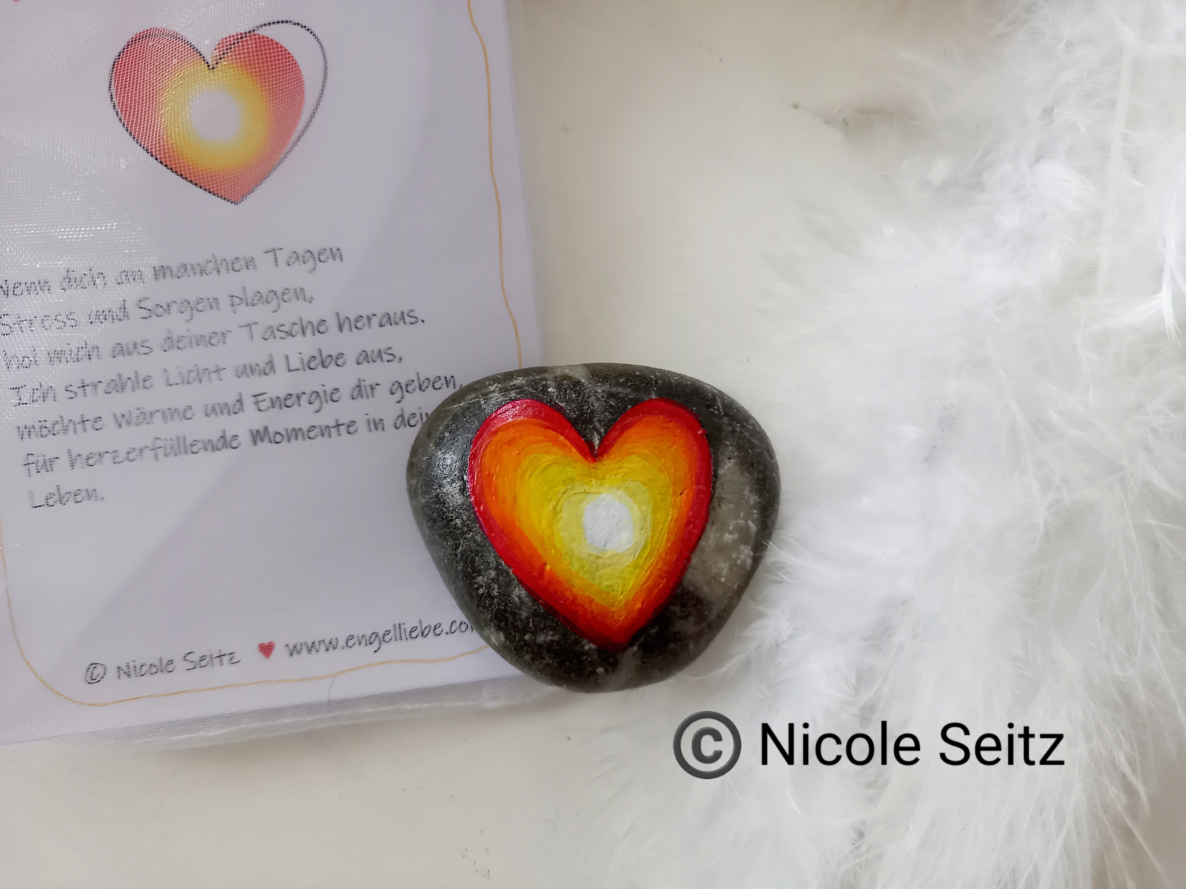 Der Stein ist mit einem Herz bemalt, das Wärme und Energie ausstrahlt.