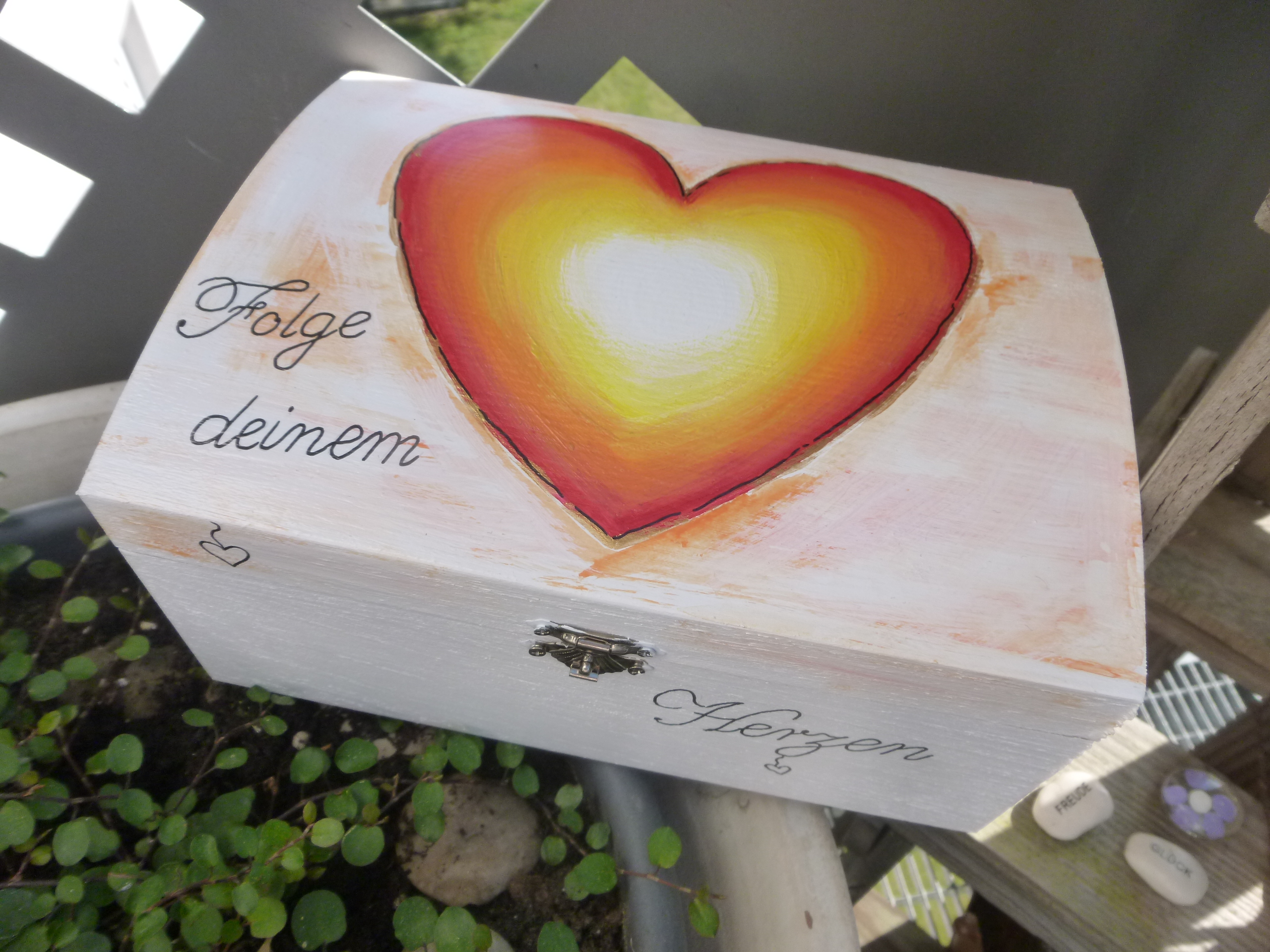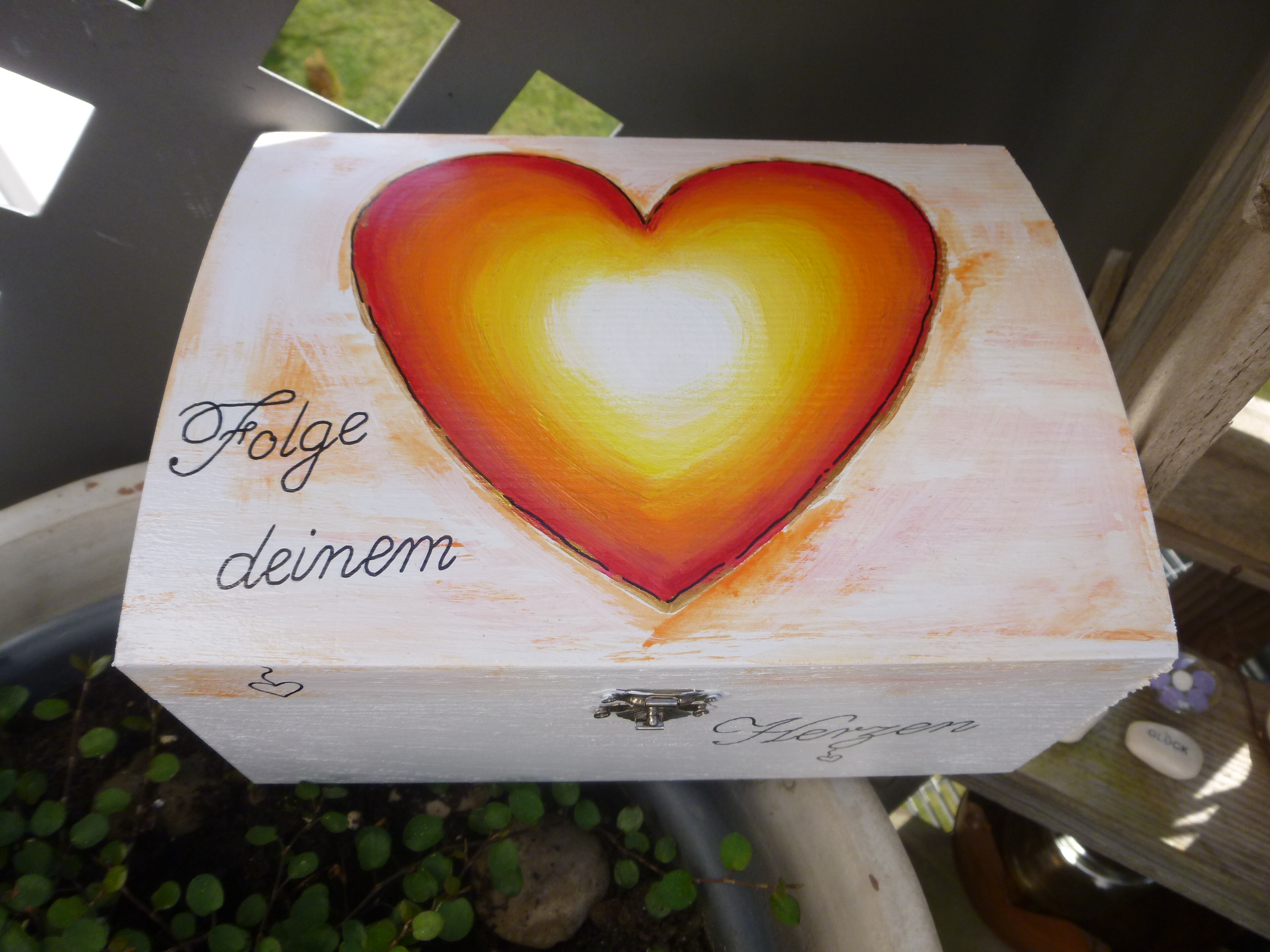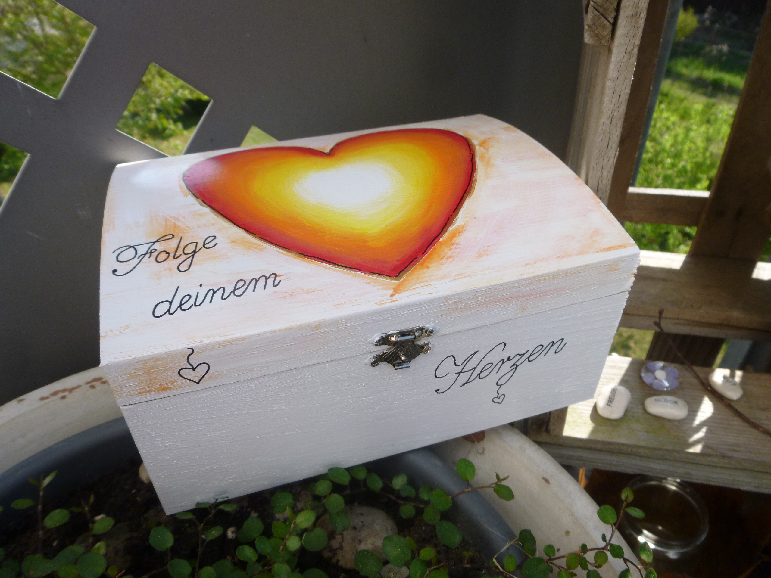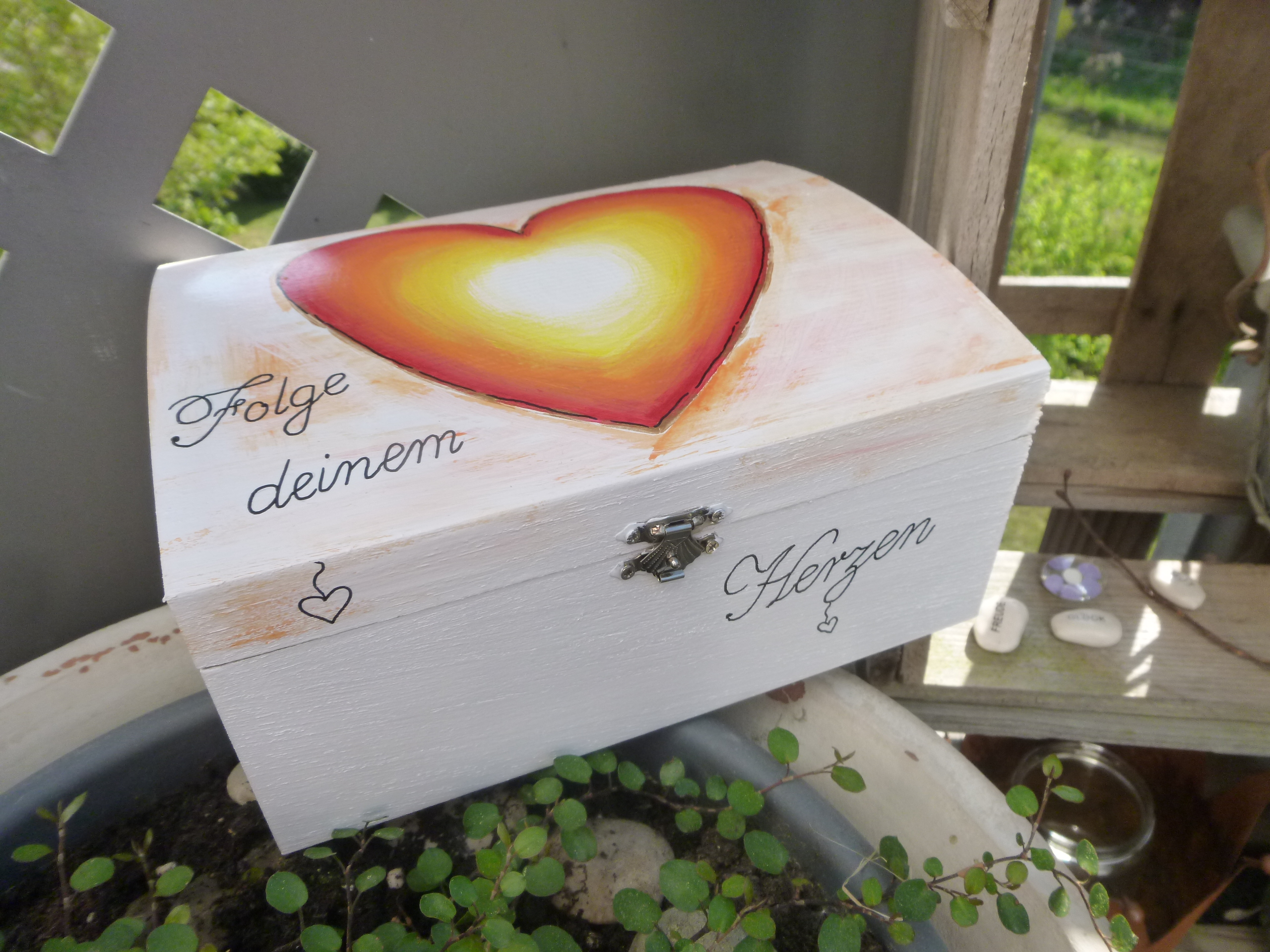 Holztruhe * Herzöffnung * 21,5 x 15,8 x 10,6