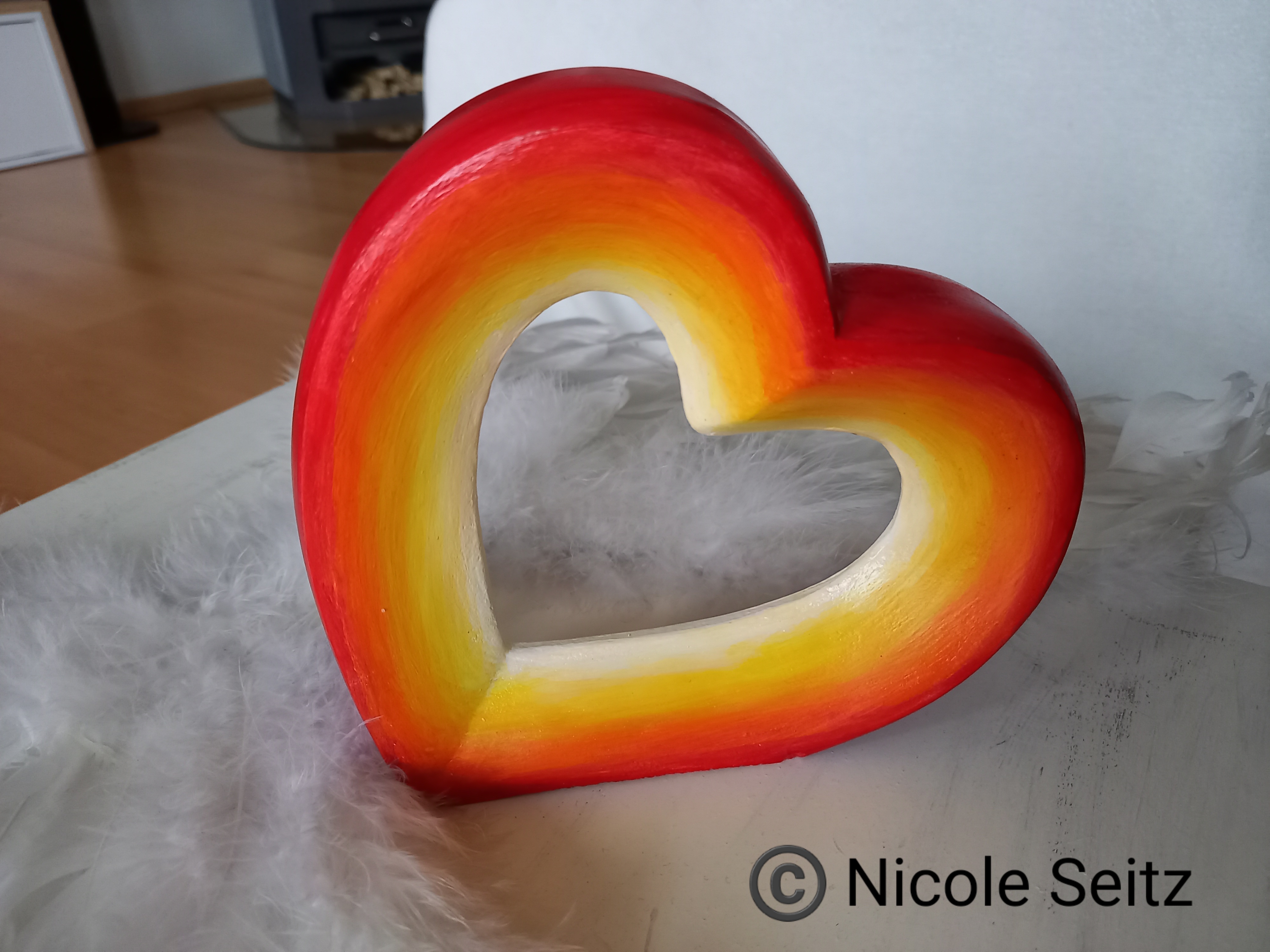 Als Kraftquelle an einem bestimmten Platz (Schreibtisch, Küche...), um einen Moment innezuhalten. Das Herz strahlt Liebe, Wärme und Energie aus.