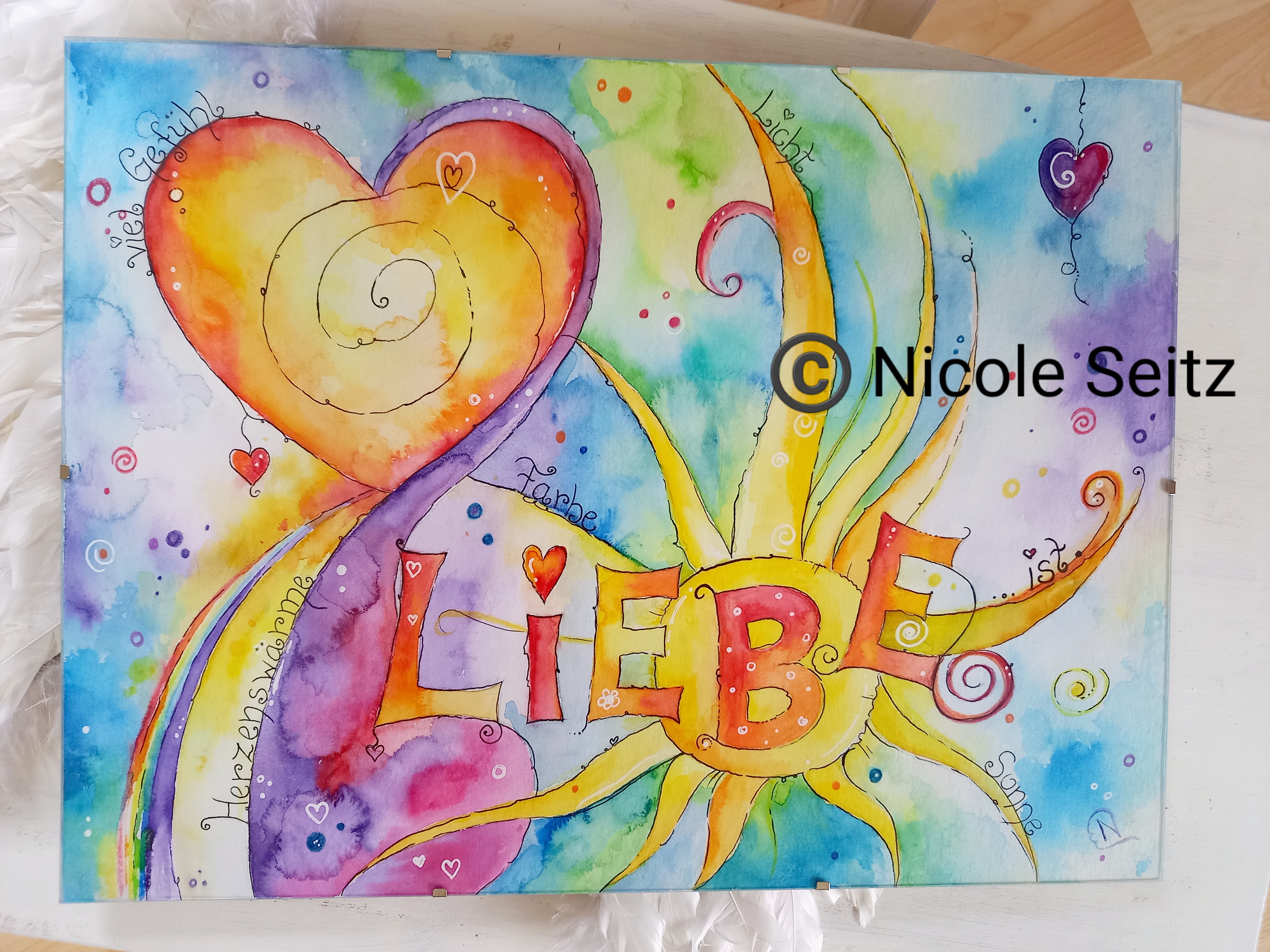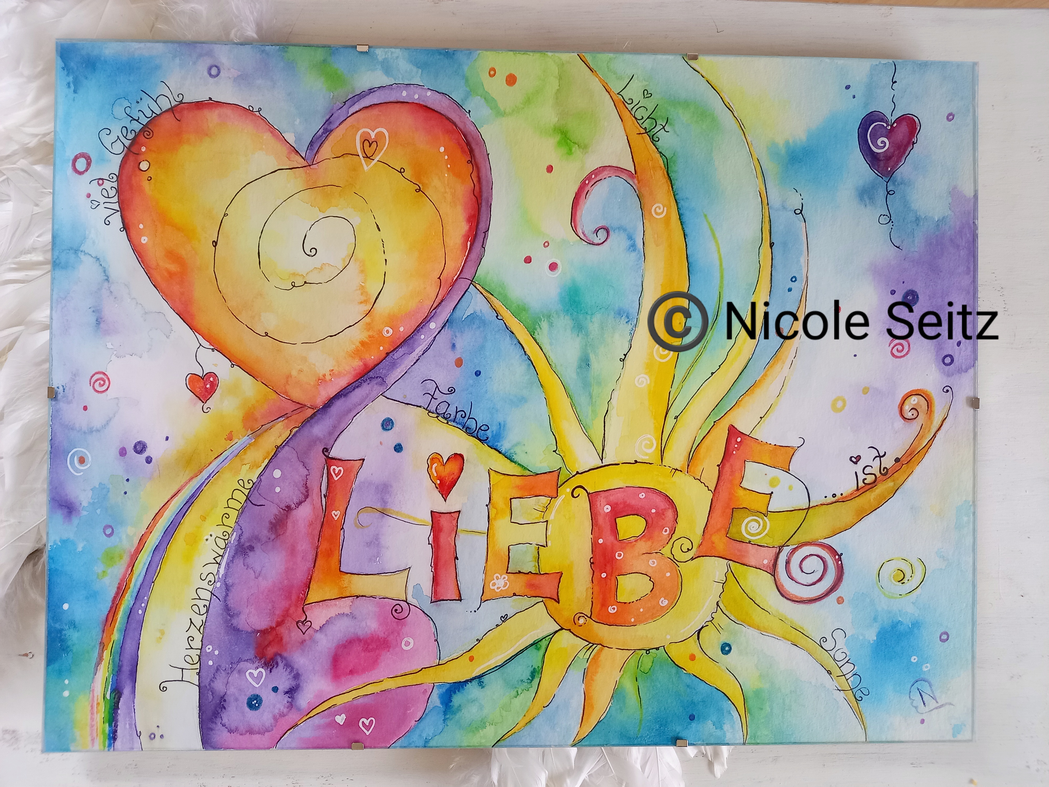 Aquarell-Bild (Original) * Liebe ist. * 30 x 40 cm * Glasrahmen