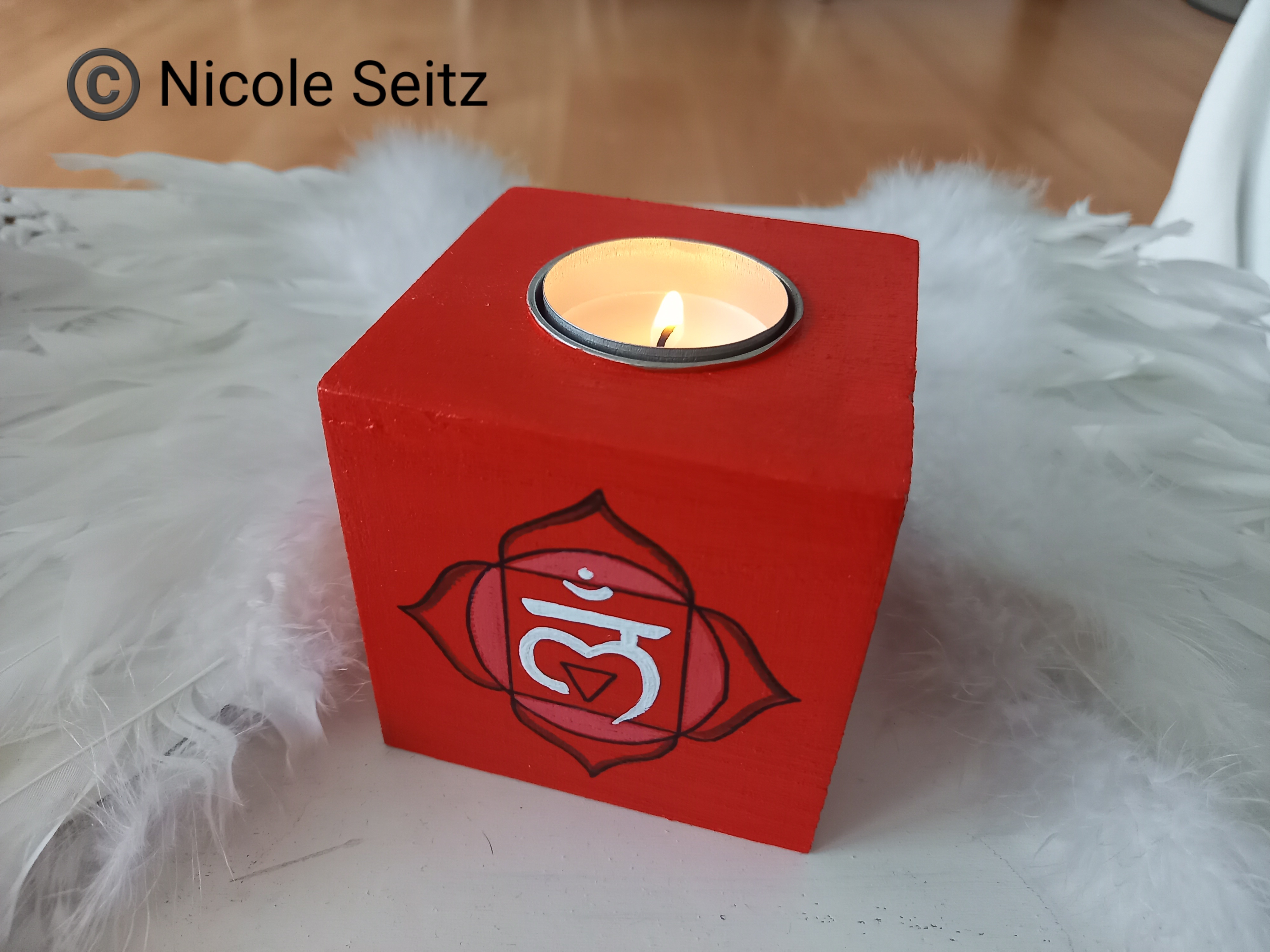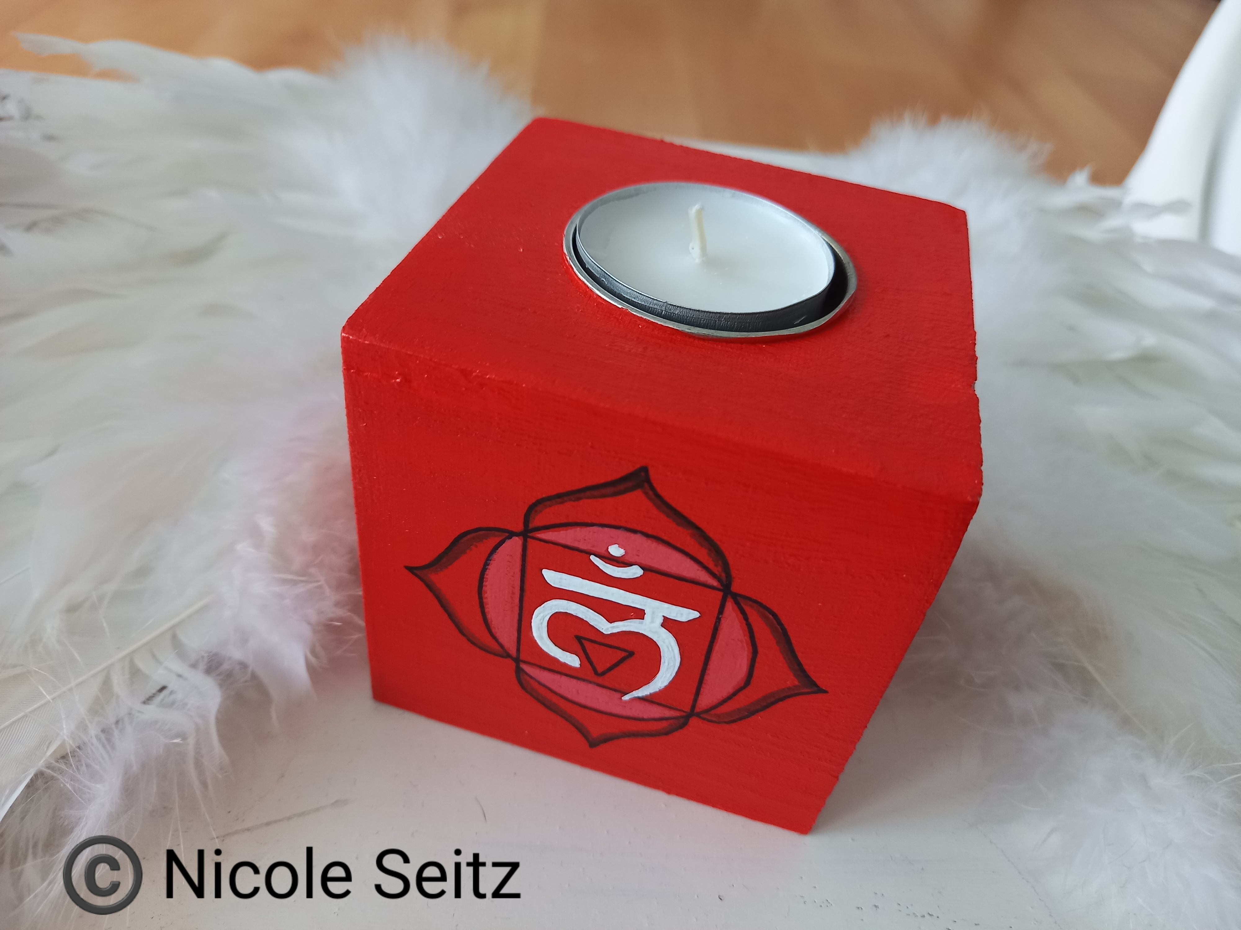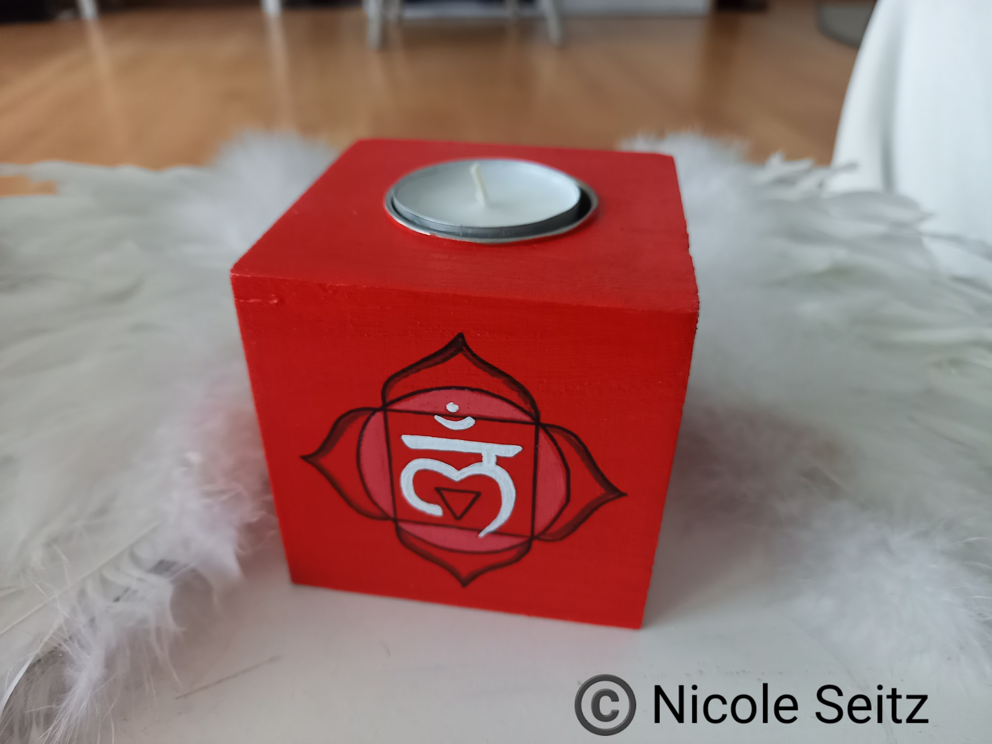 Wurzelchakra * Licht * handbemalt mit Symbol * Holz
