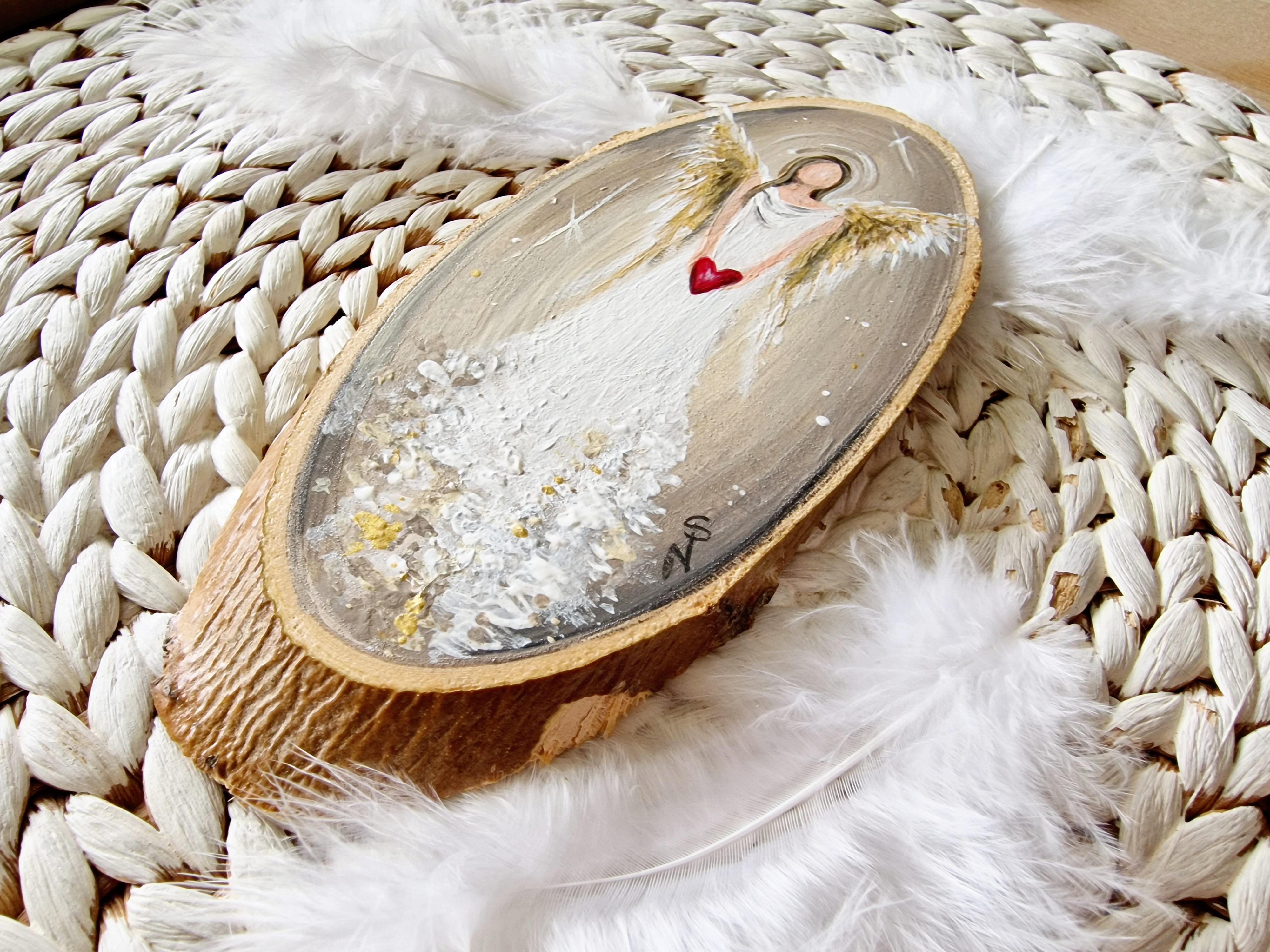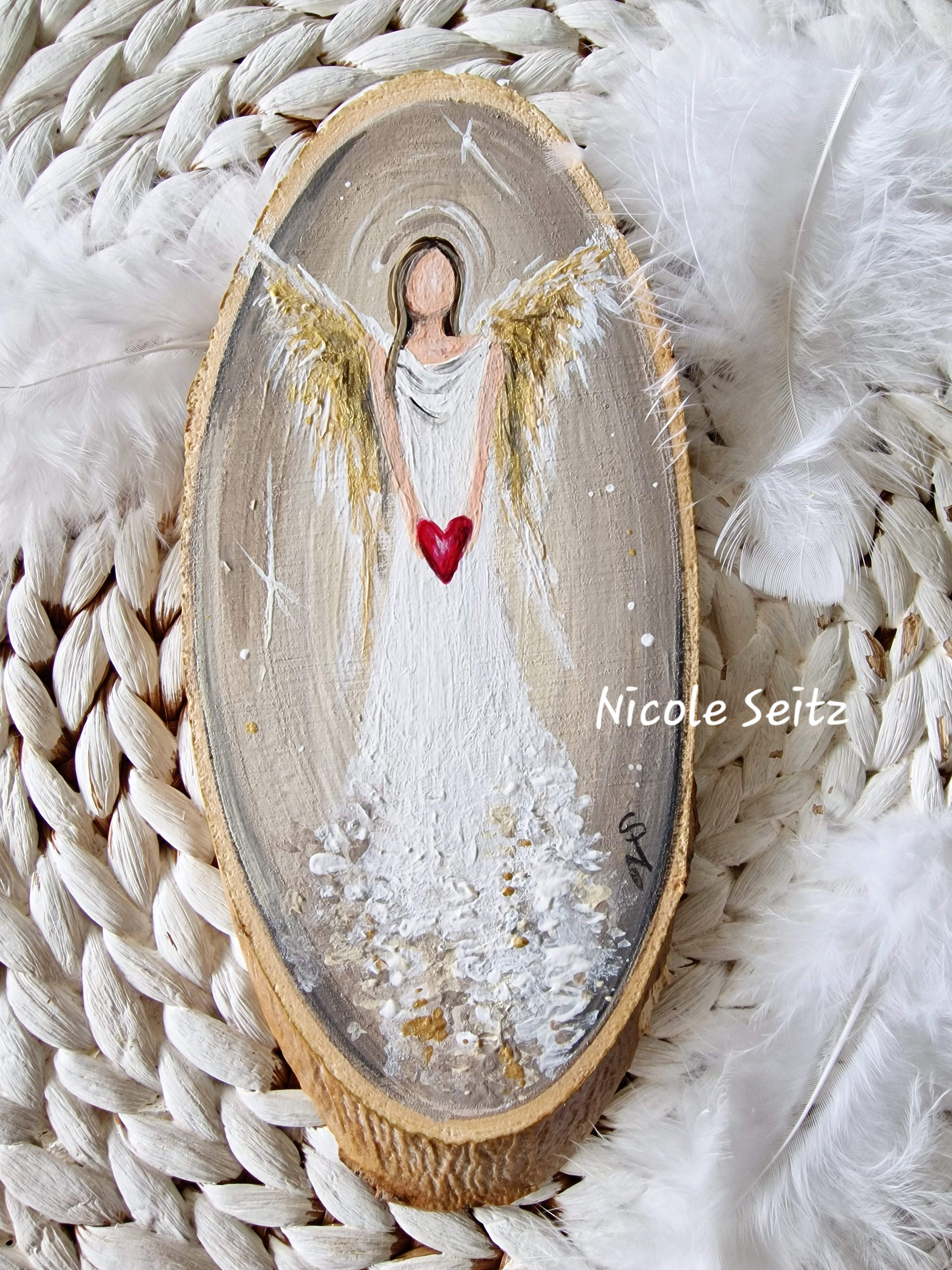 Engel auf Baumscheibe gemalt * Herz * 17,5 x 8 x 1 cm * Shabby
