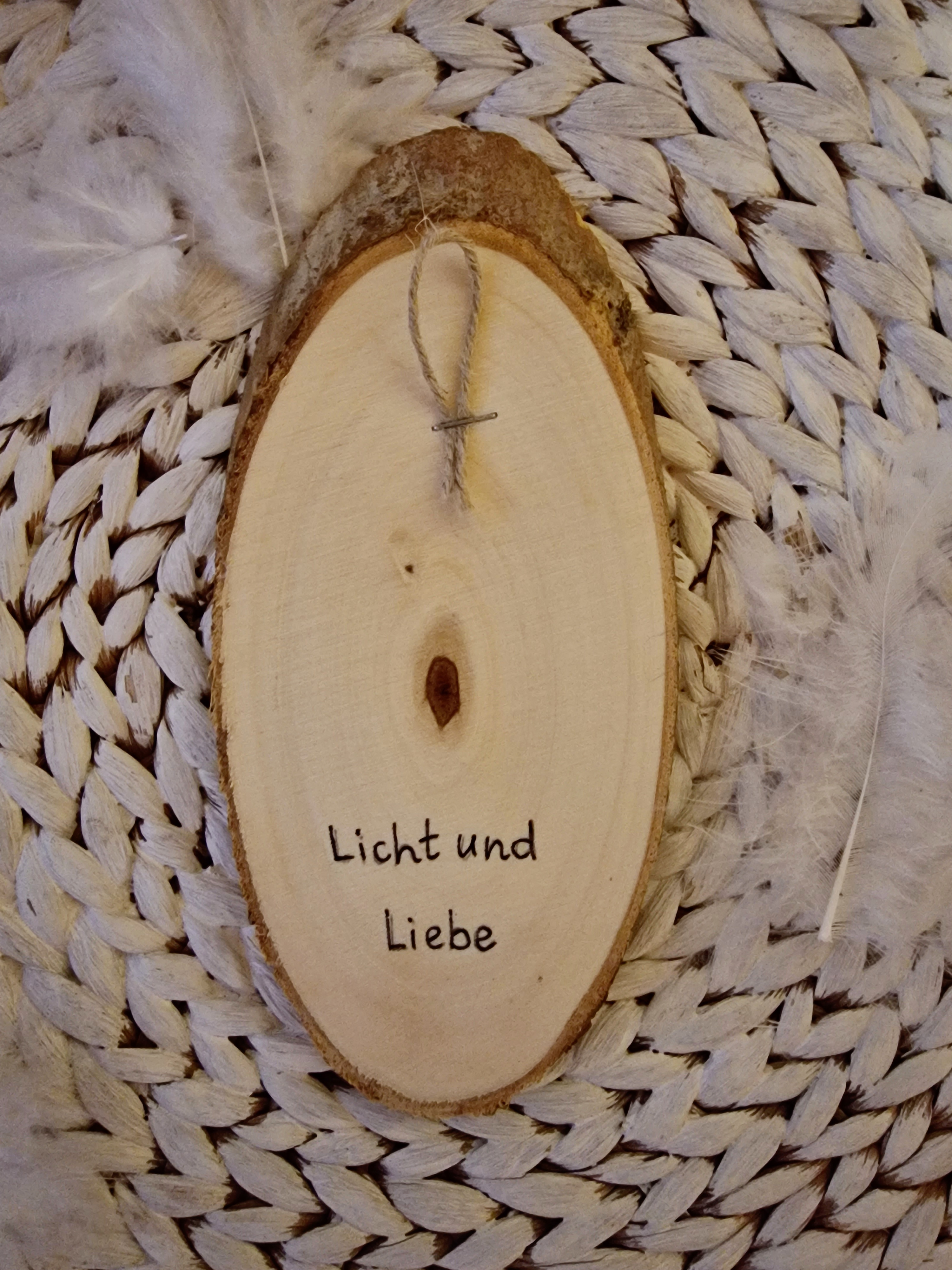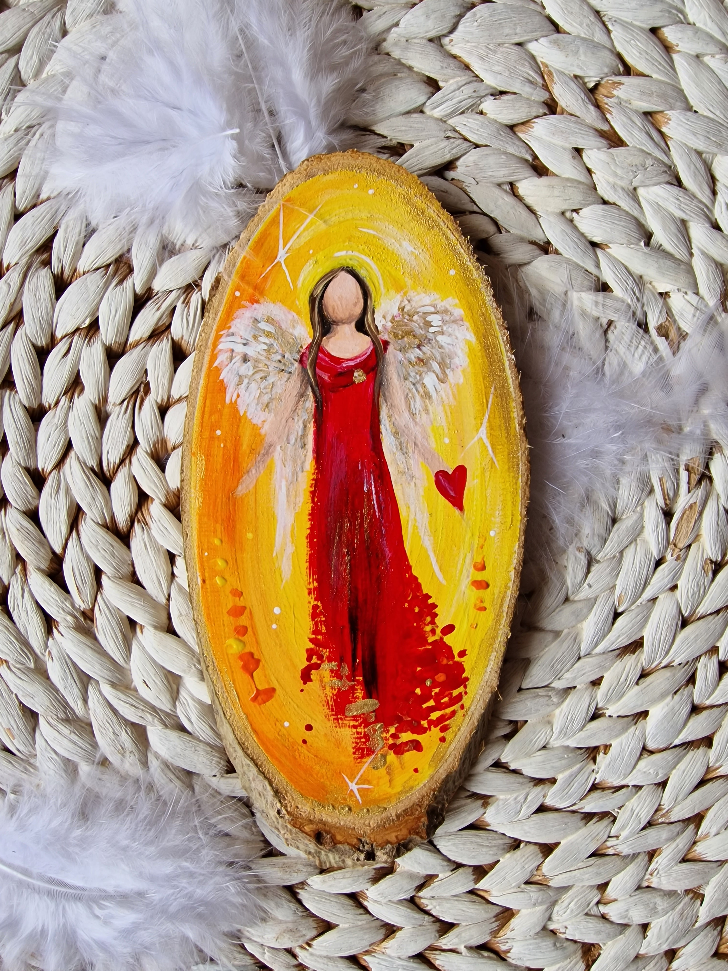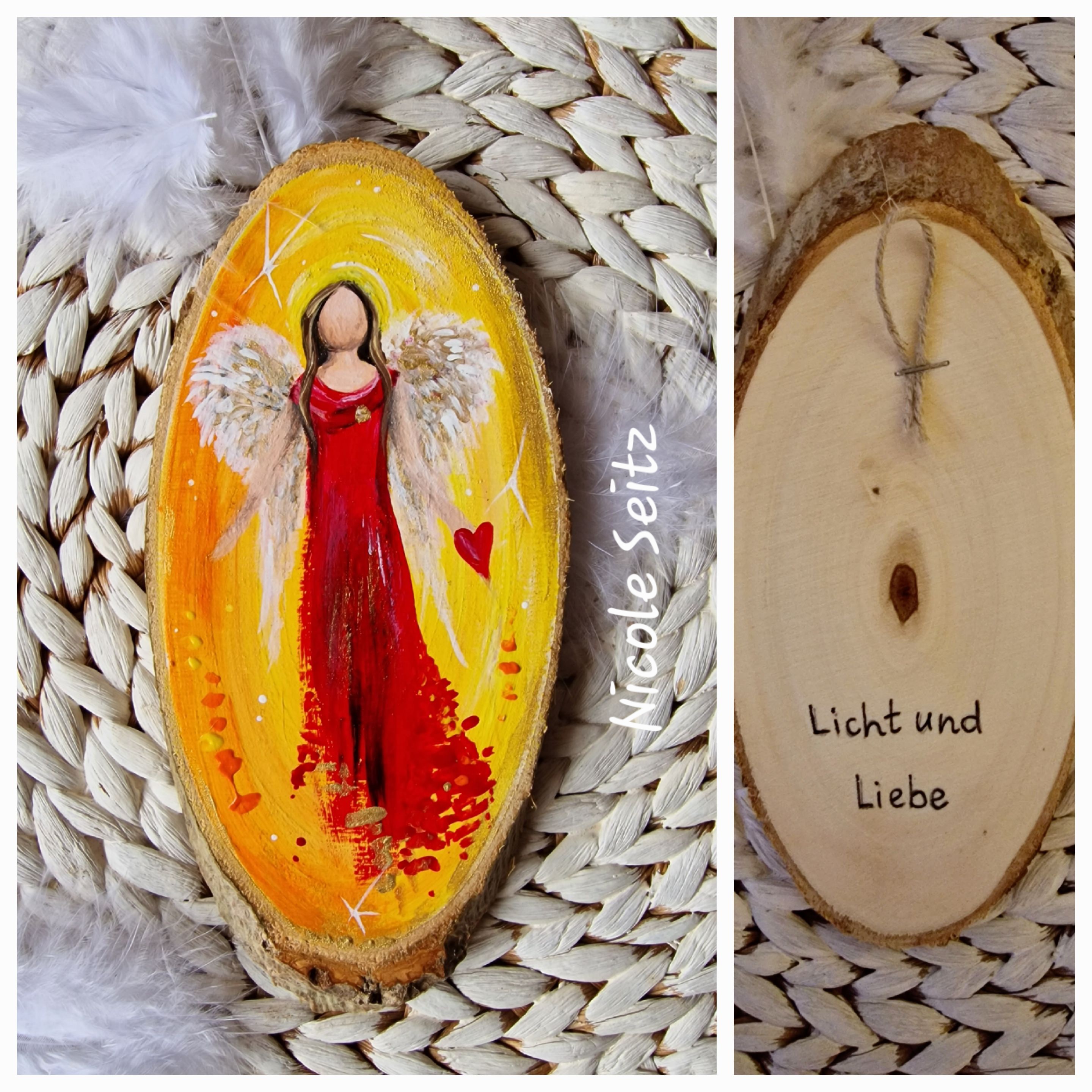 Engel auf Baumscheibe gemalt * Licht und Liebe * 17,5 x 8 x 1 cm