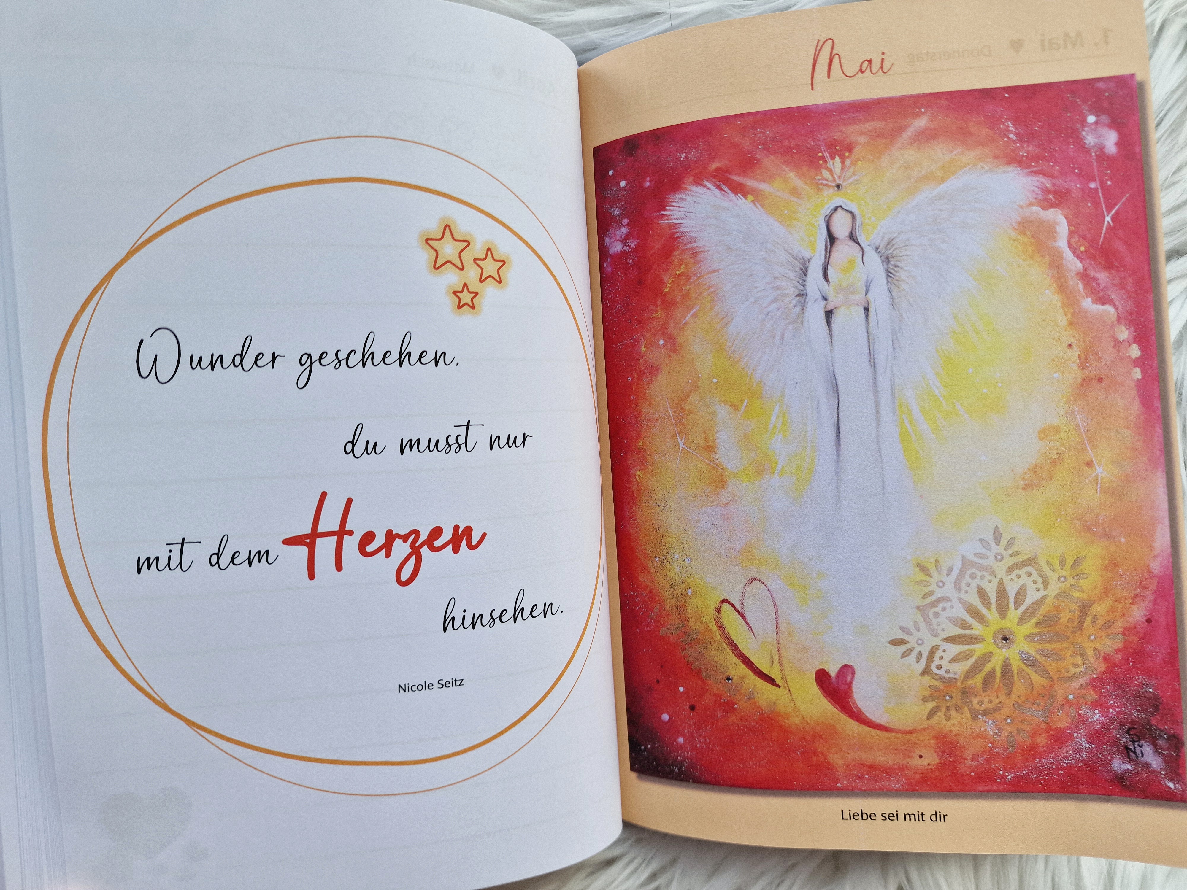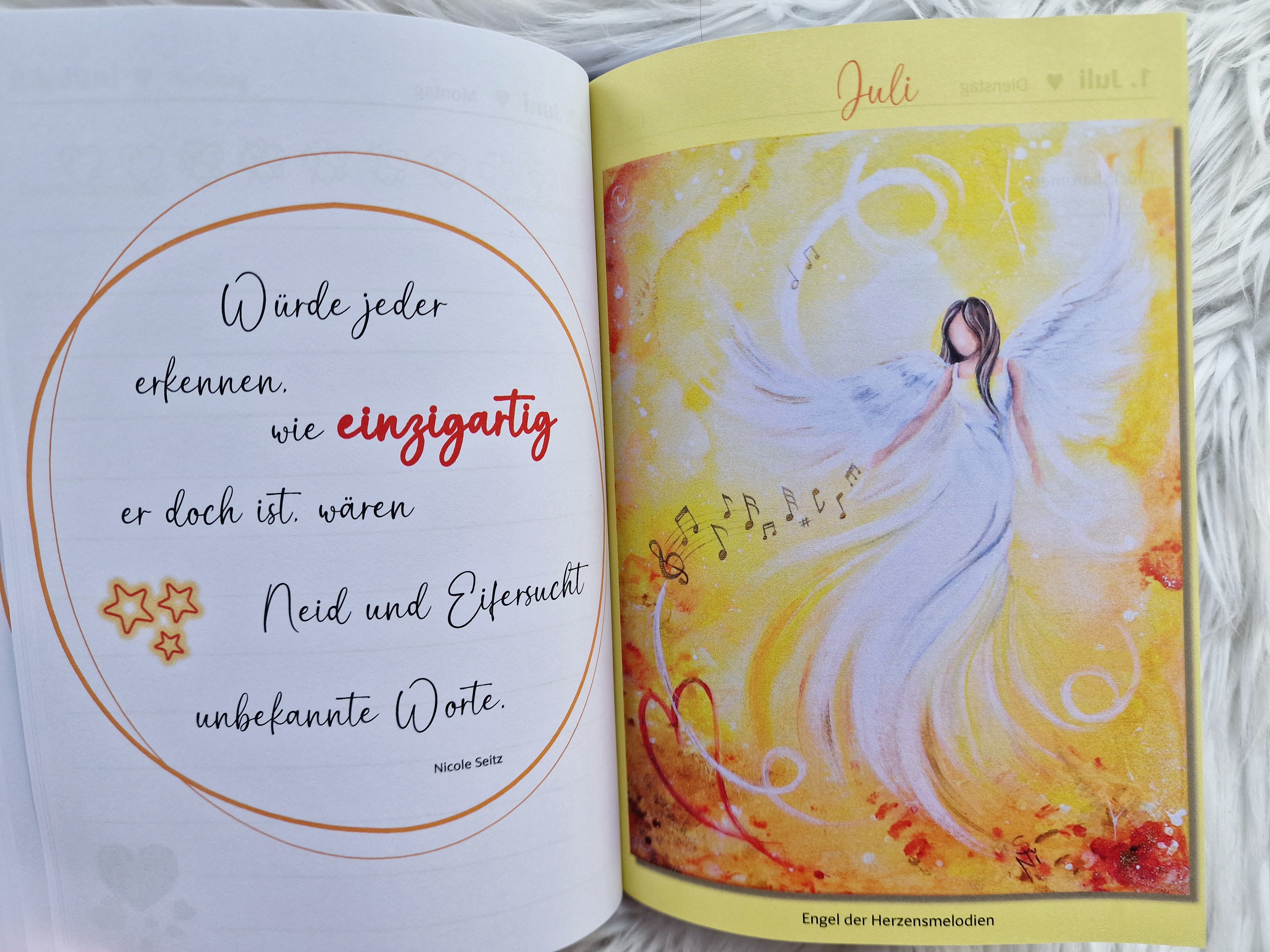 Jeder Monat beginnt mit einem passenden - im Original von mir gemalten - Engelbild. Außerdem gibt es auf einzelnen Seiten schöne Herzenssprüche.