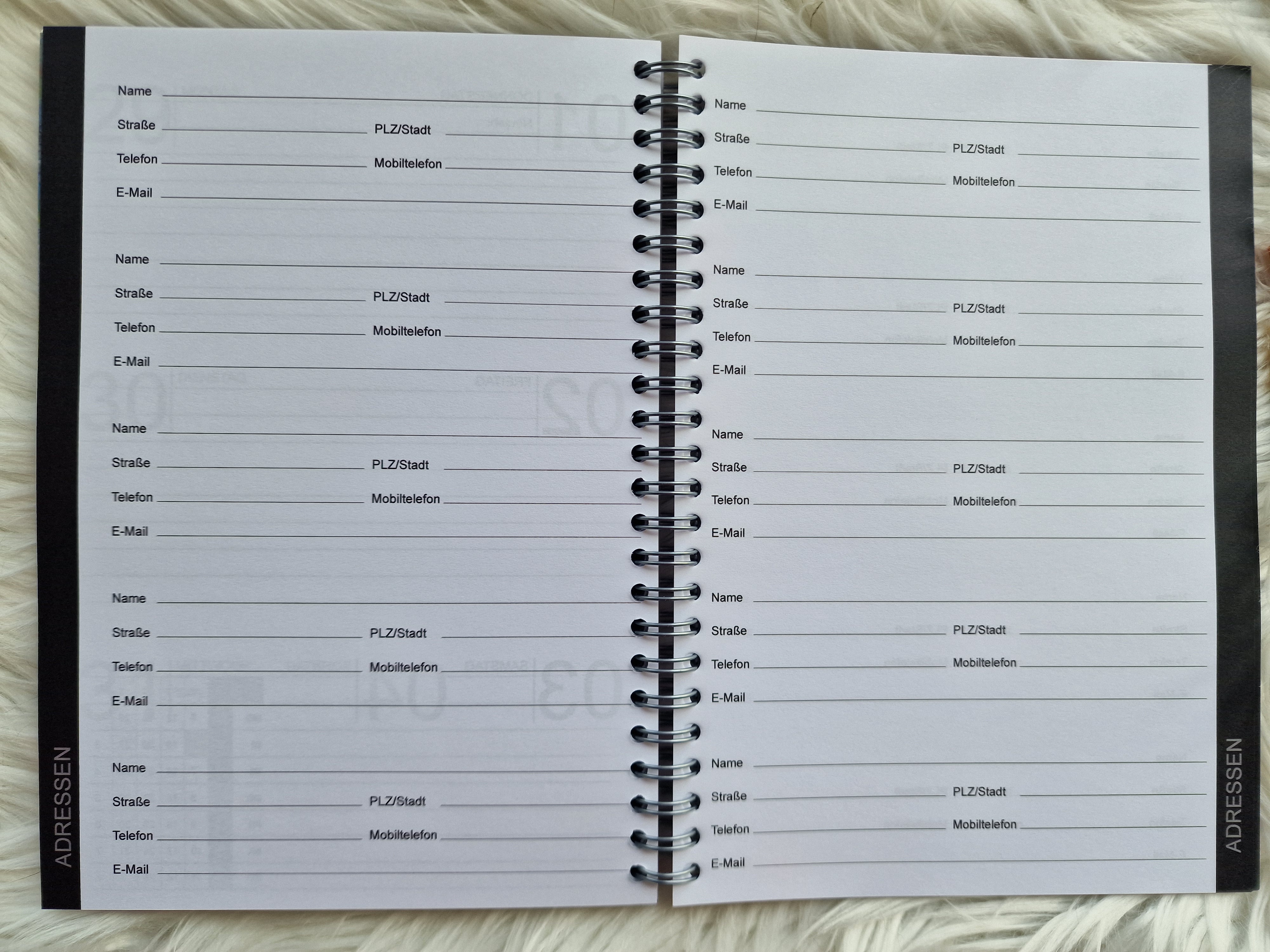 - Sonderseiten: Persönliche Angaben, Übersicht Kalender 2025, Ferienzeiten, Auflistung Feiertage, auf den letzten Seiten mehrere Seiten für Adressen und Notizen