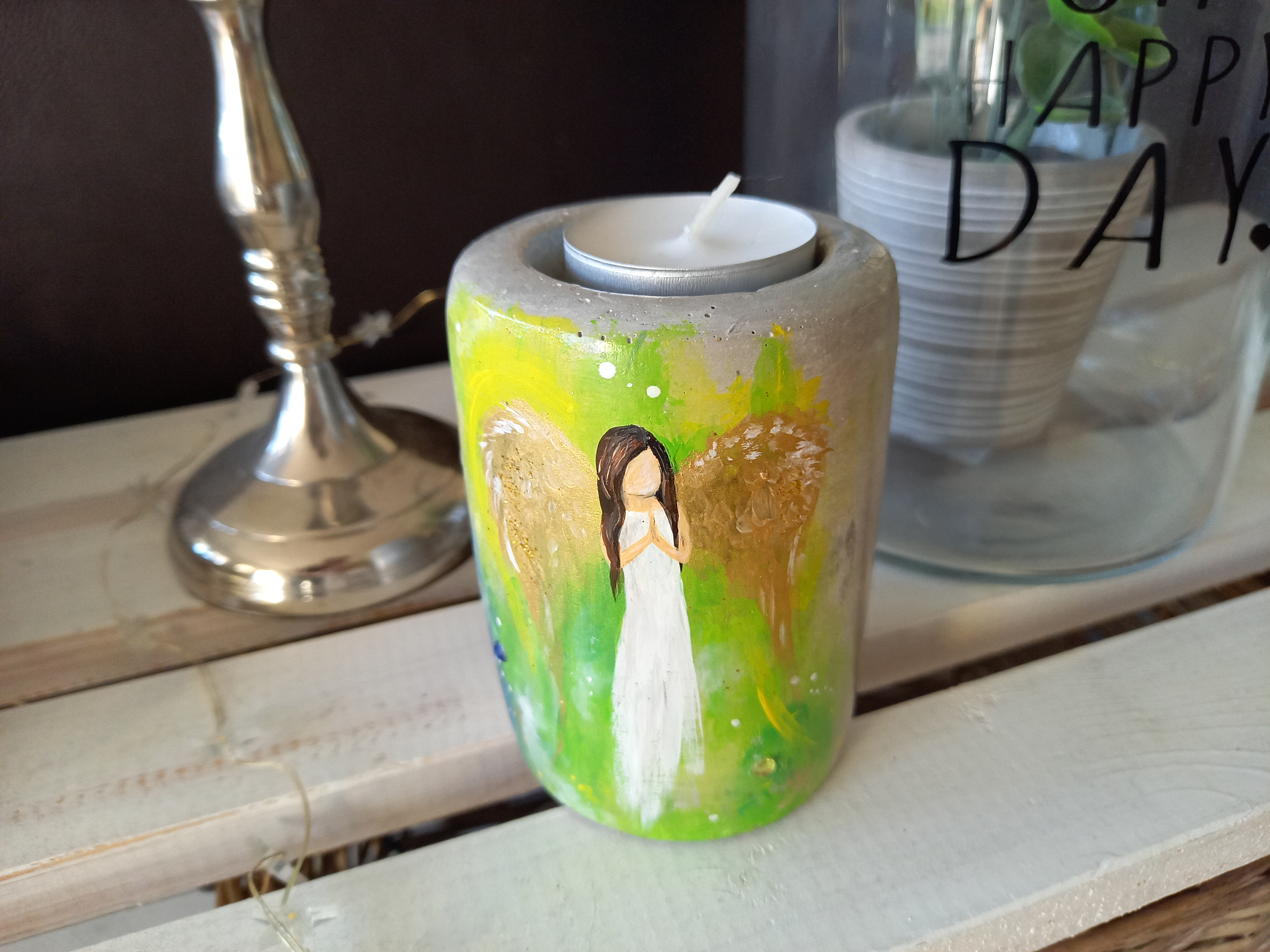 Engellicht aus Beton * handbemalt * Engel der Hoffnung