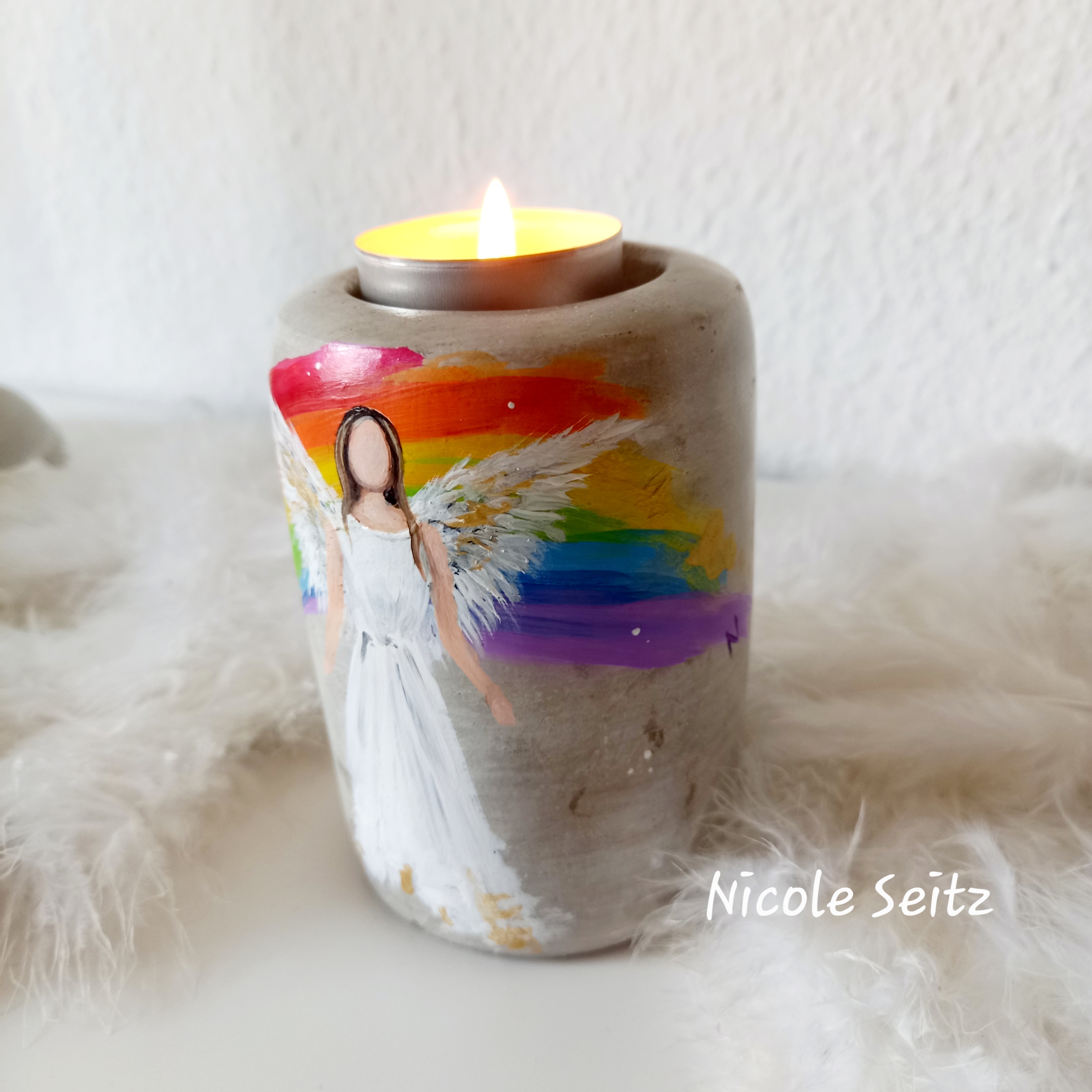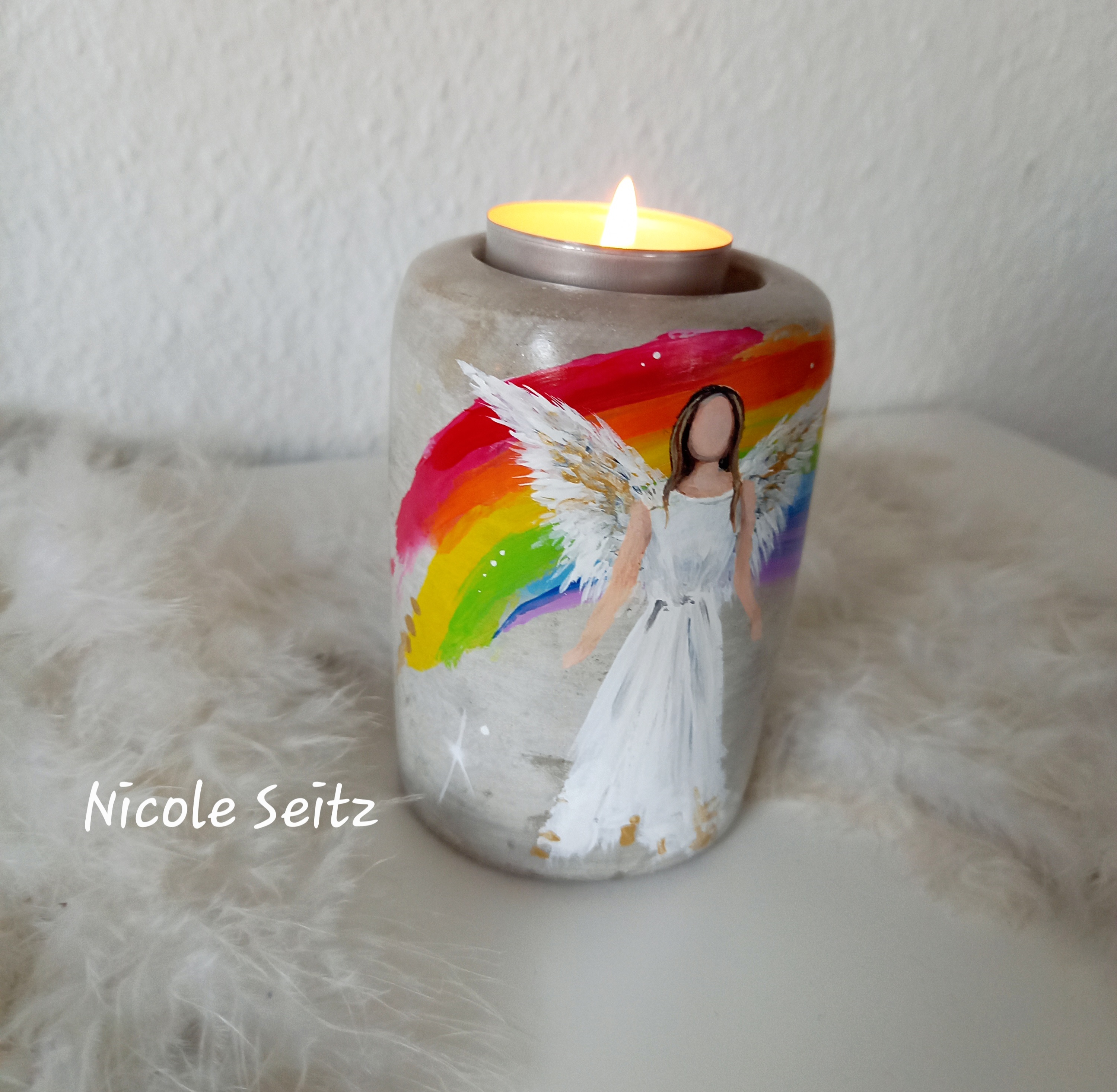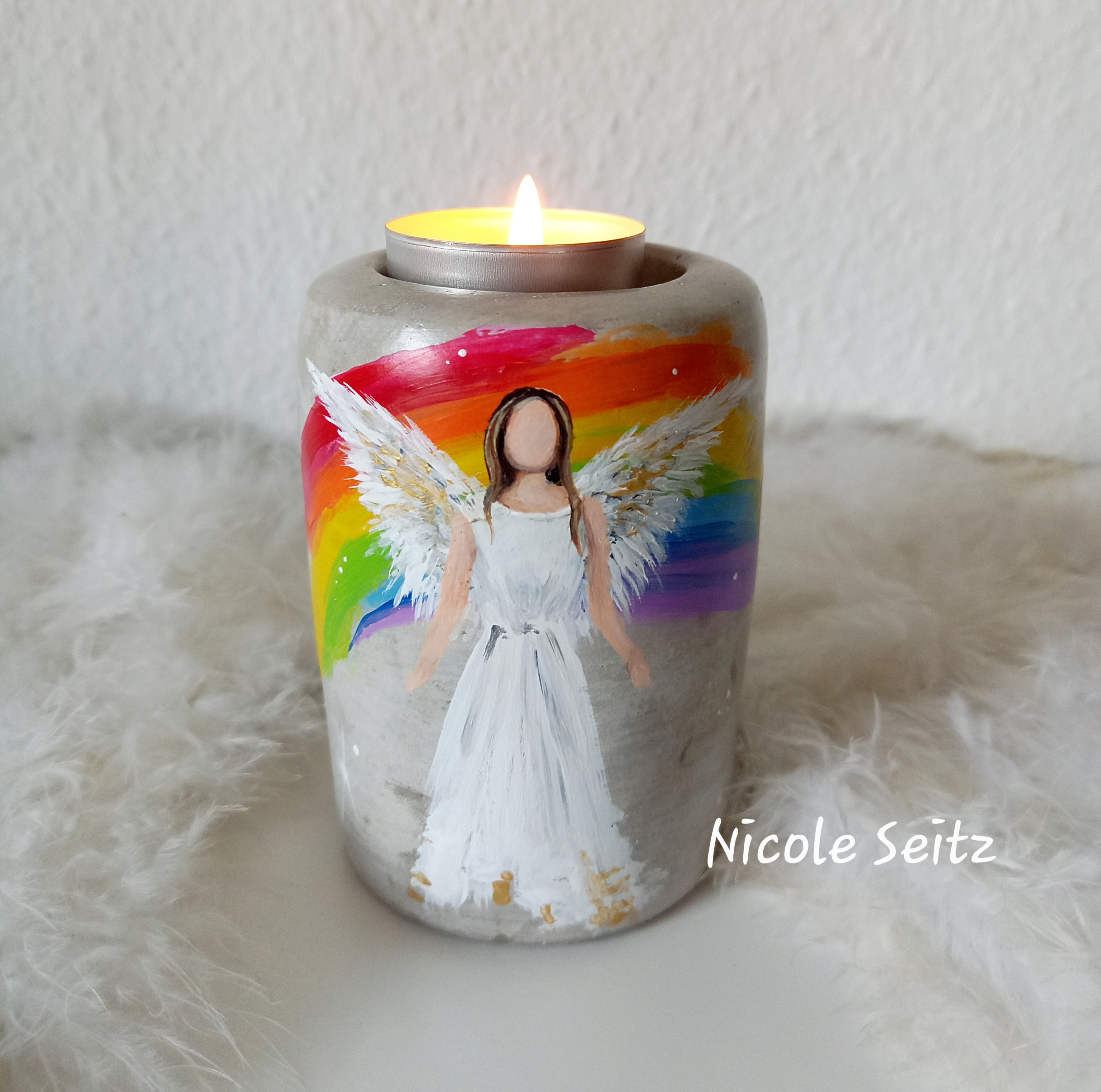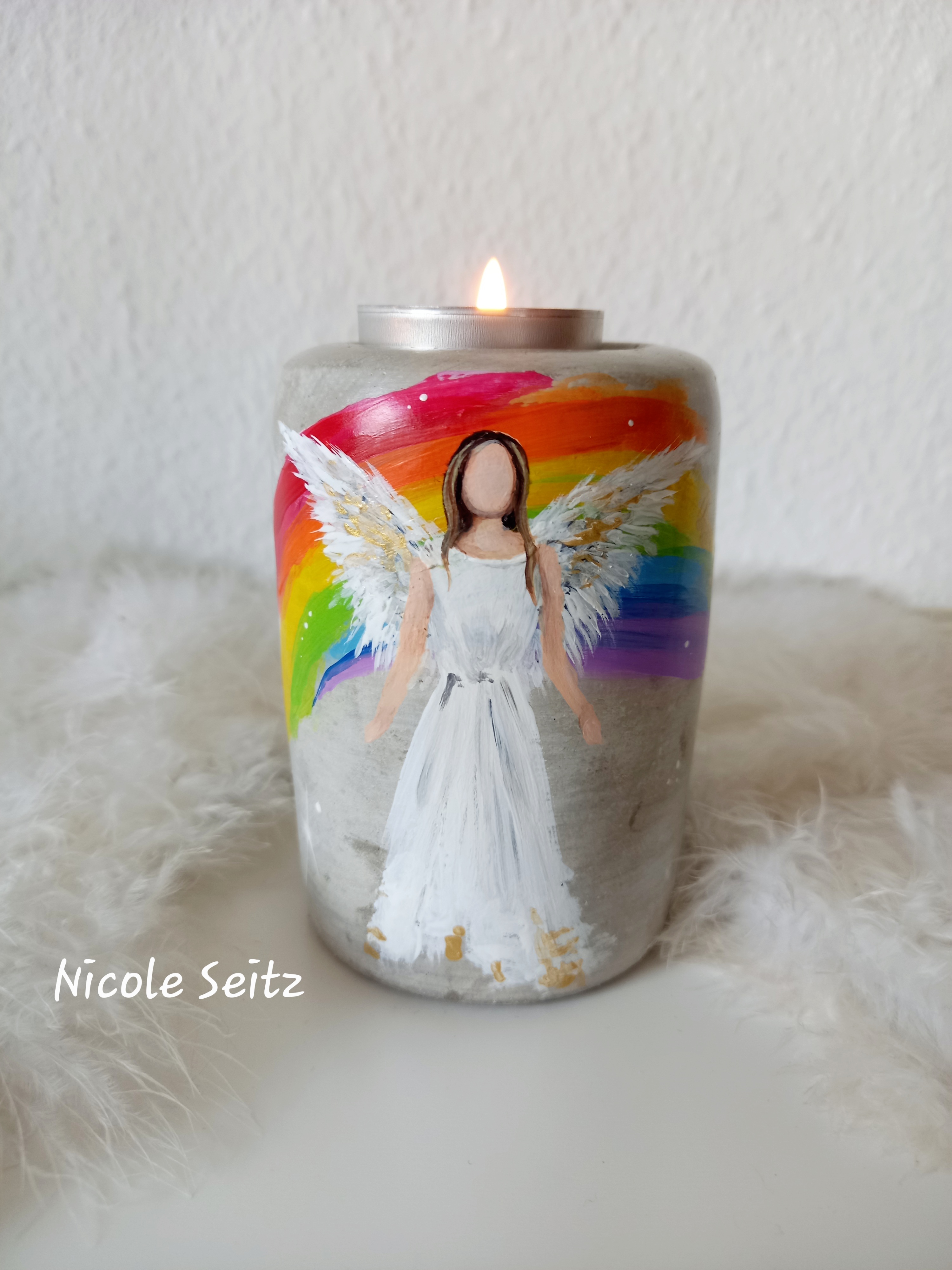Preview: Engellicht aus Beton * handbemalt - Regenbogen