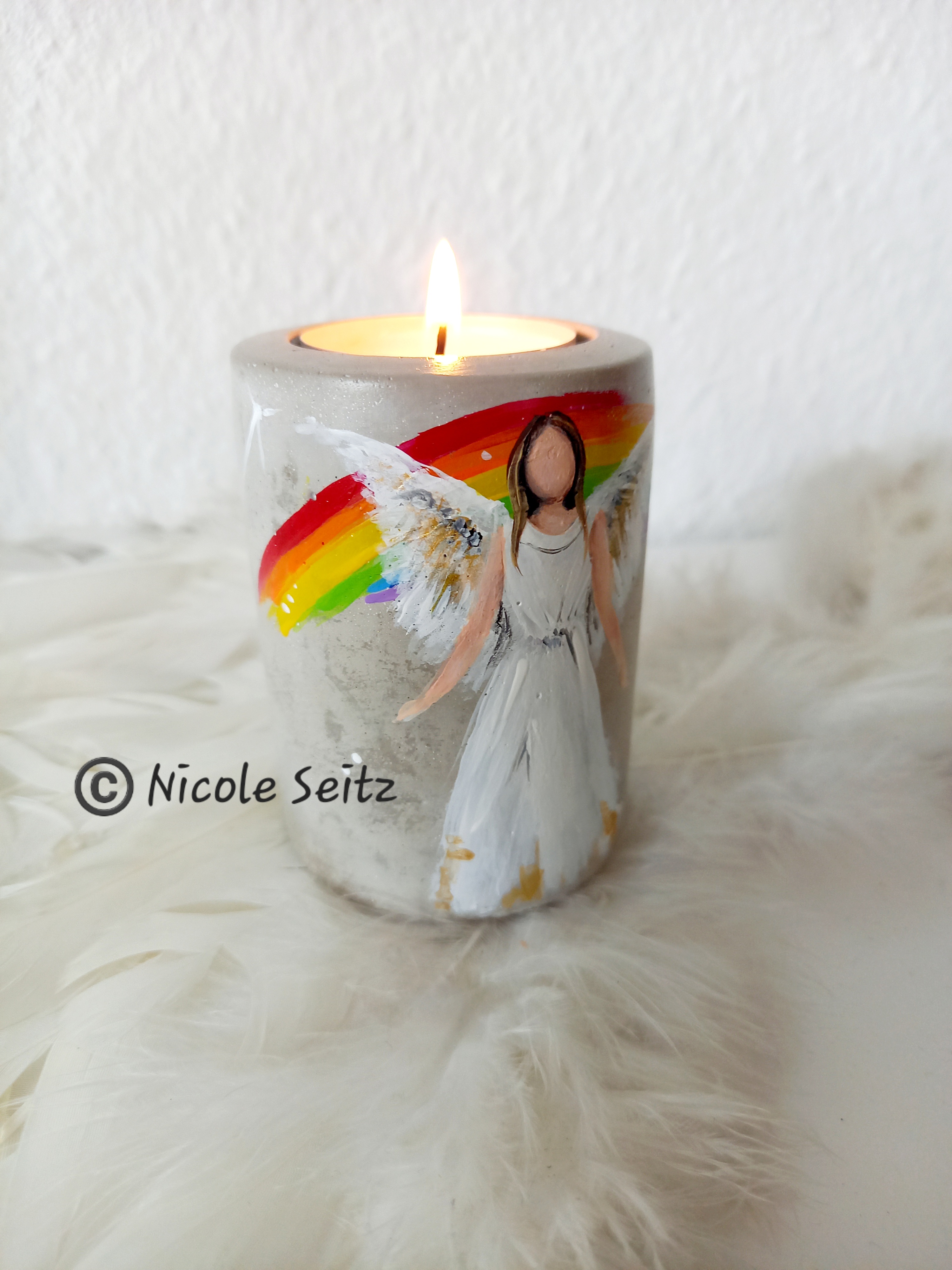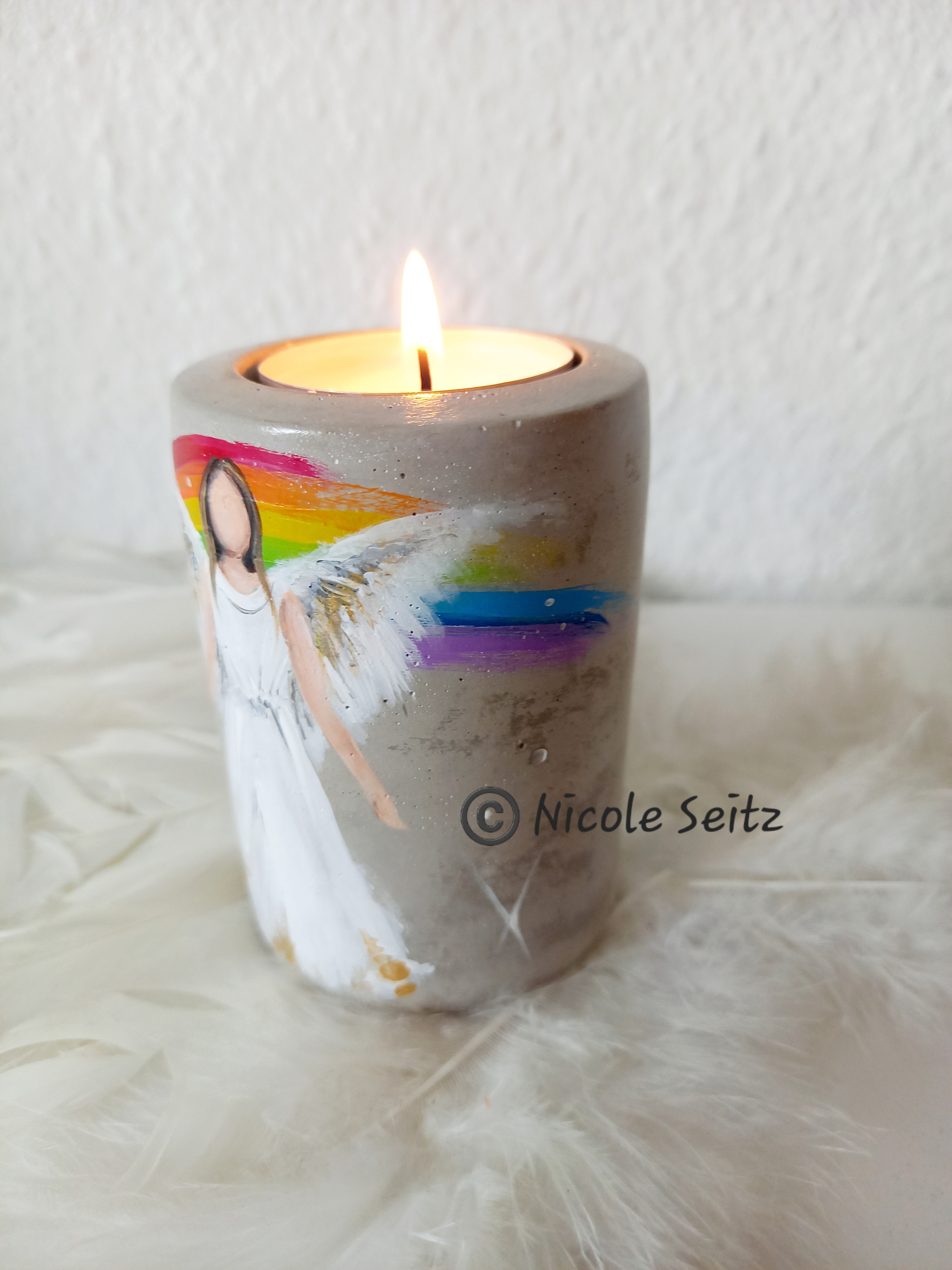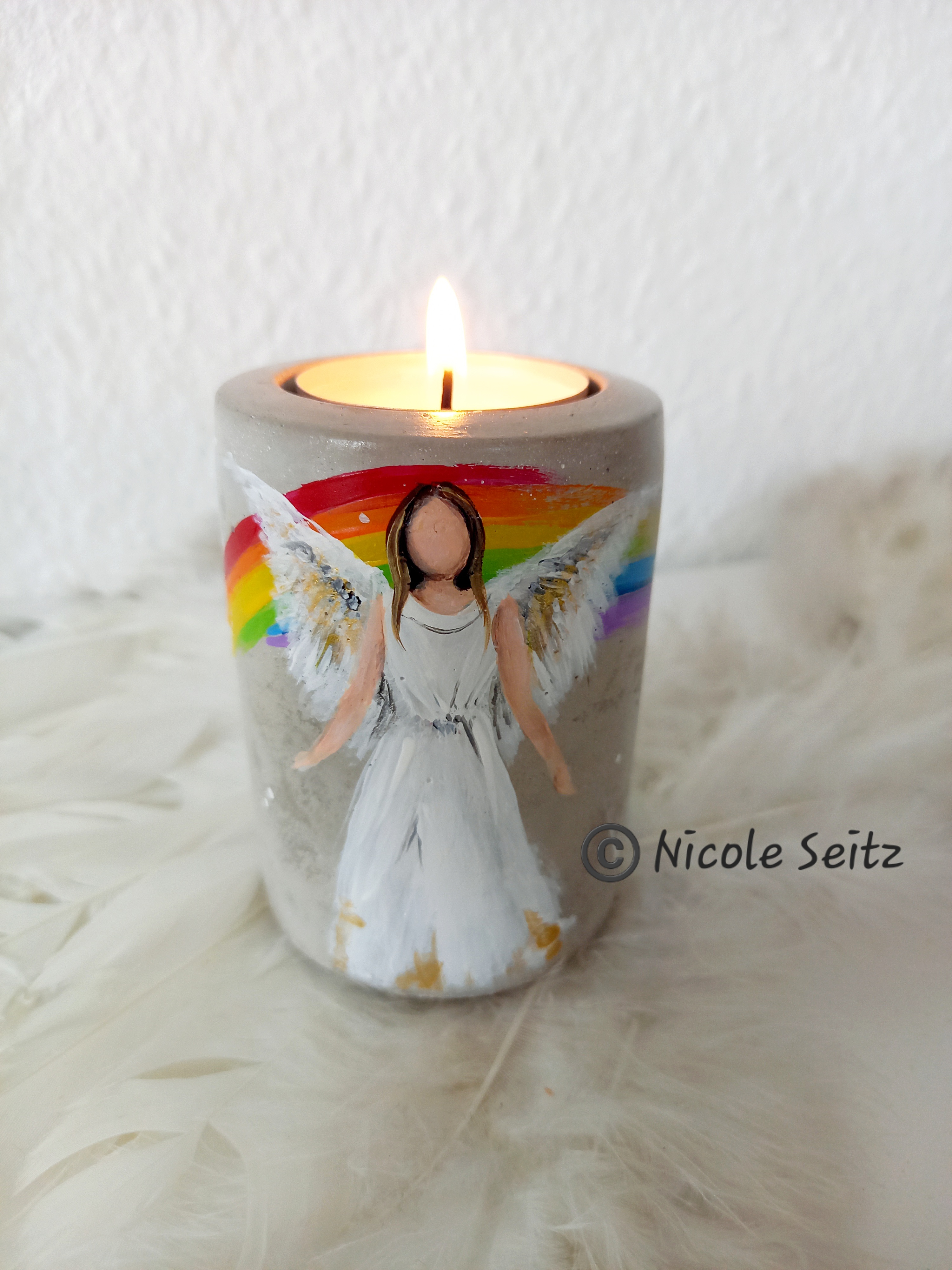 Engellicht aus Beton * handbemalt * Herz * Regenbogen