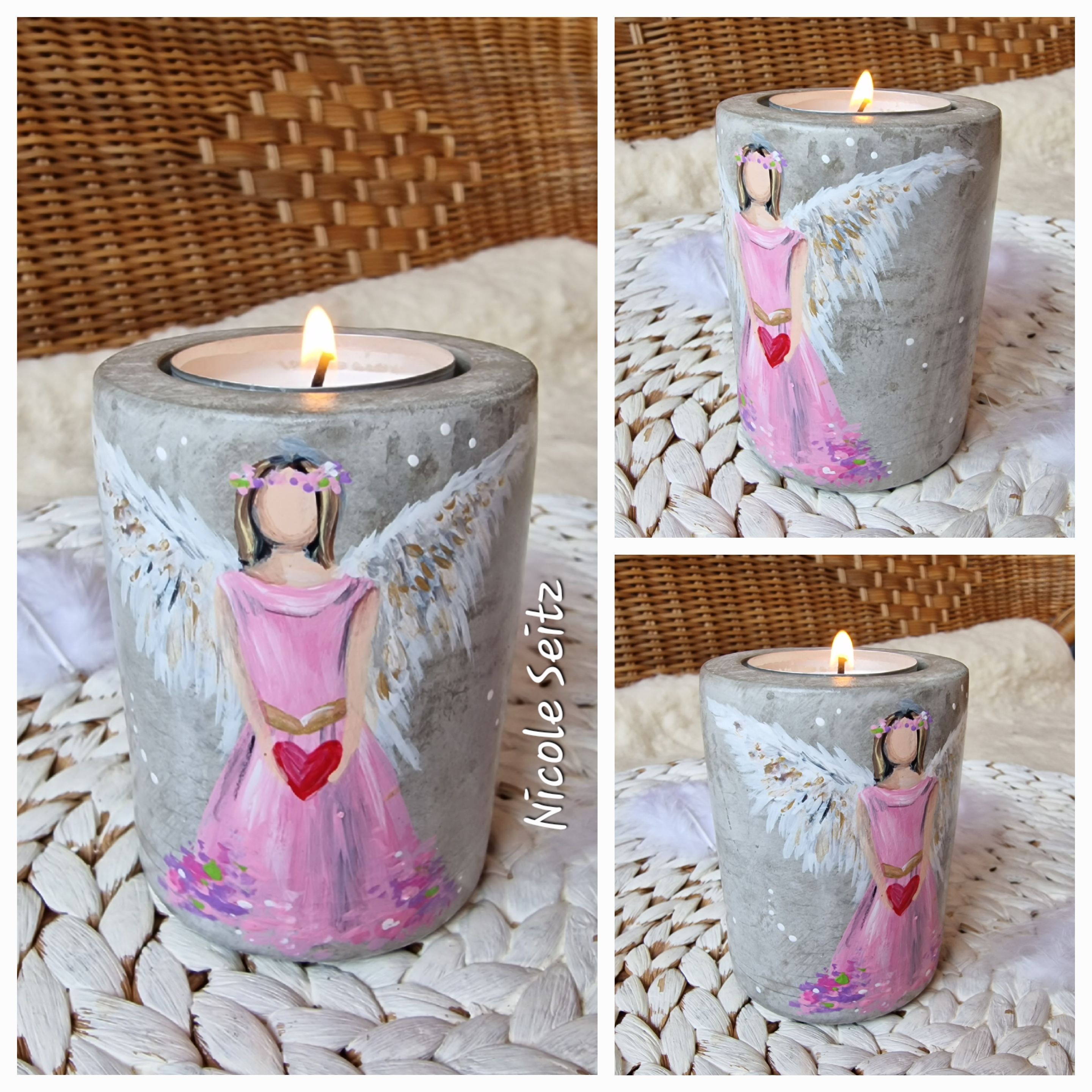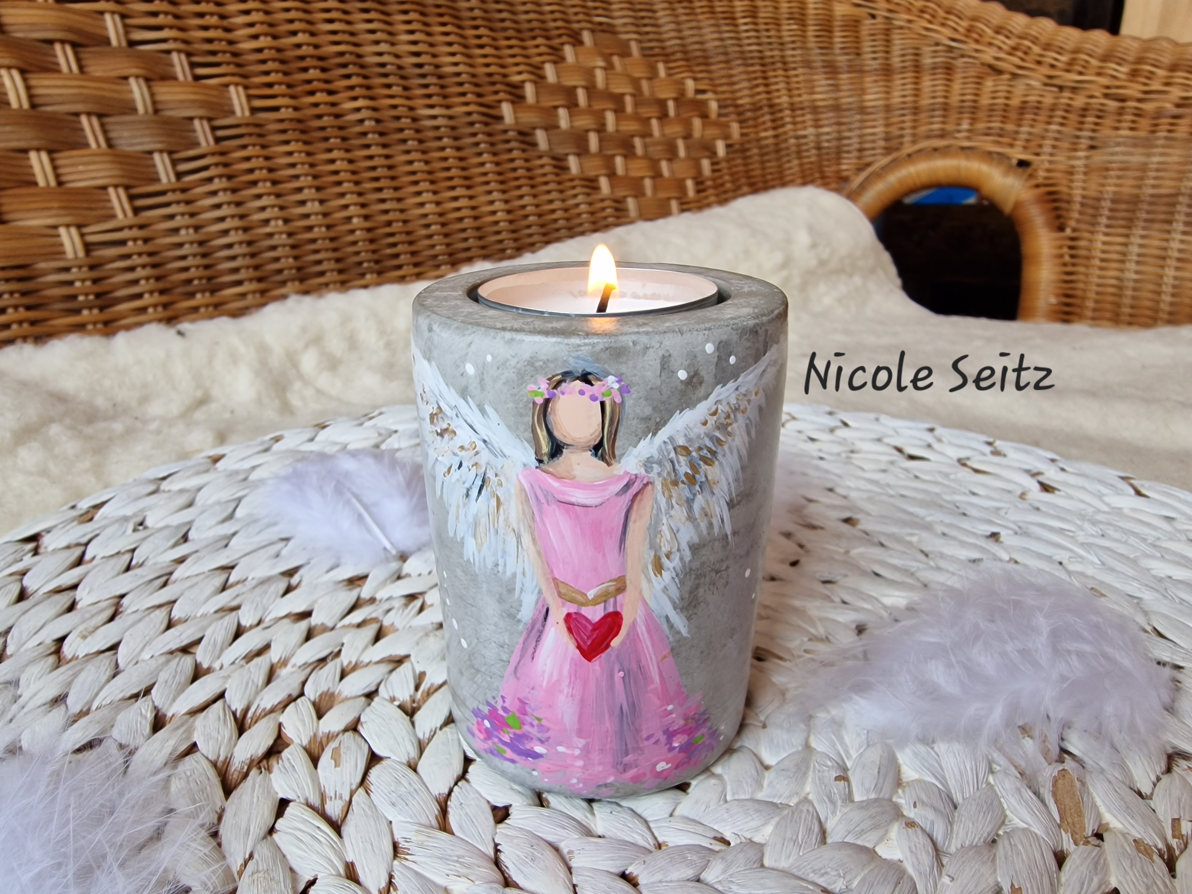 Engellicht aus Beton * handbemalt * Herz * Rosa