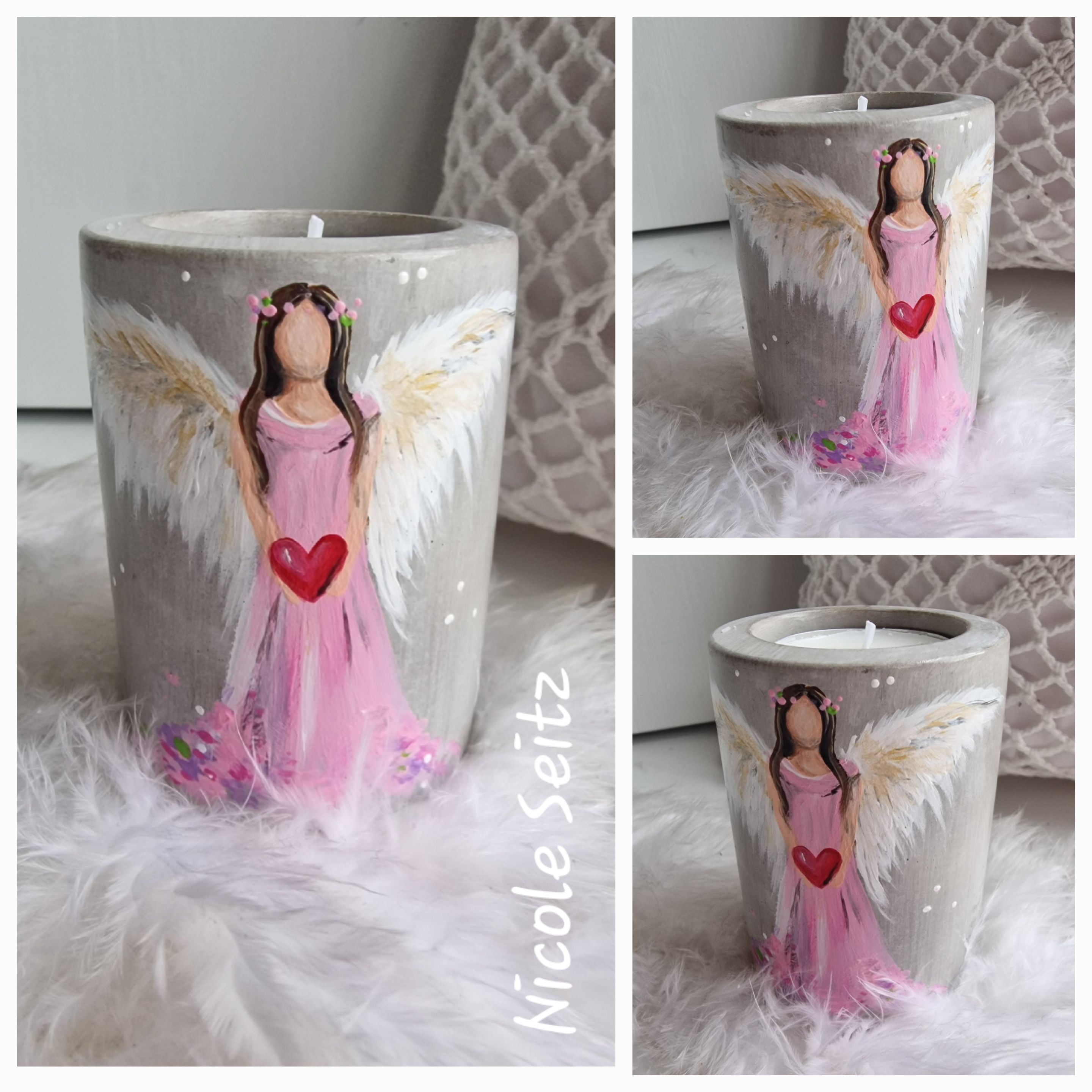 Engellicht aus Beton * handbemalt * Herz * Rosa