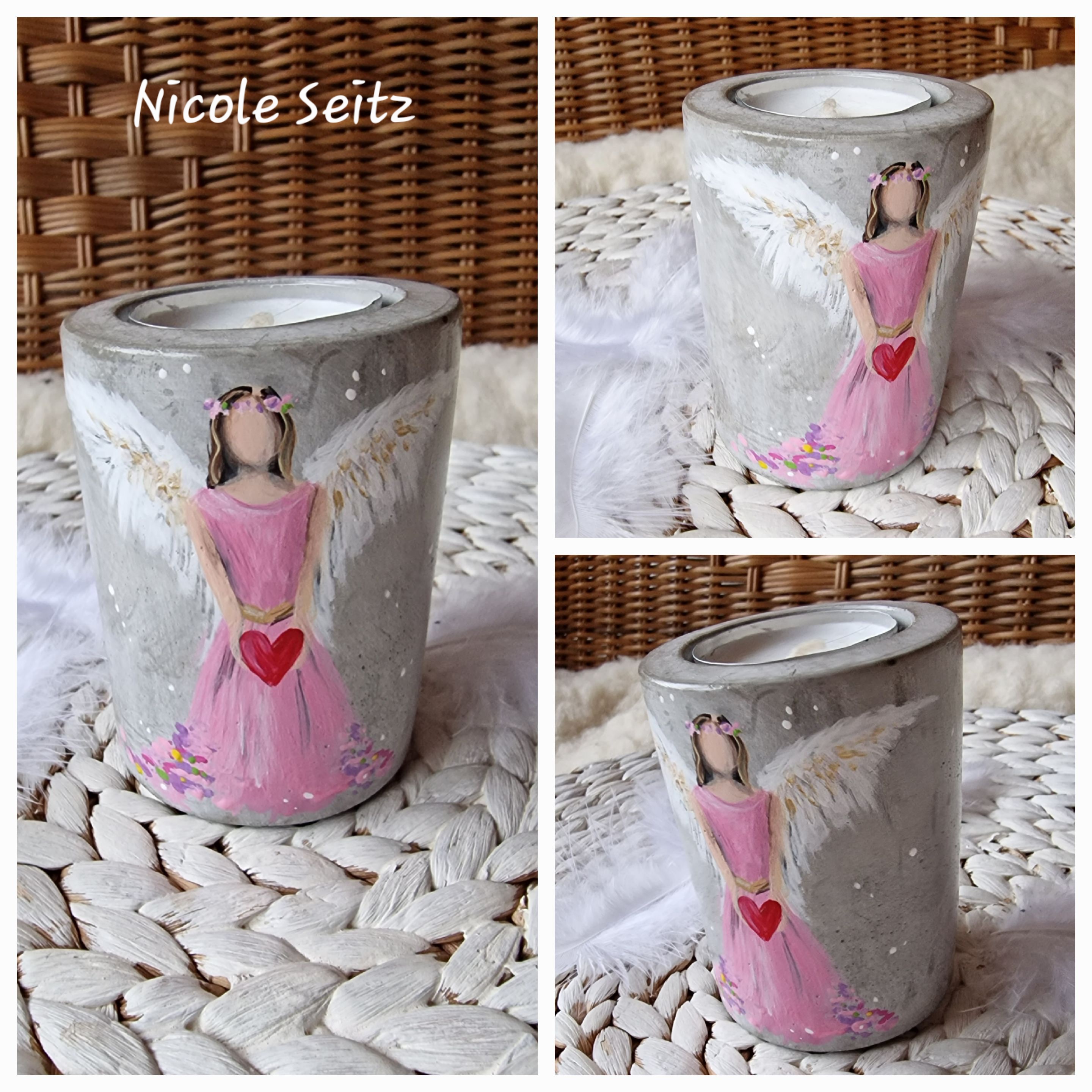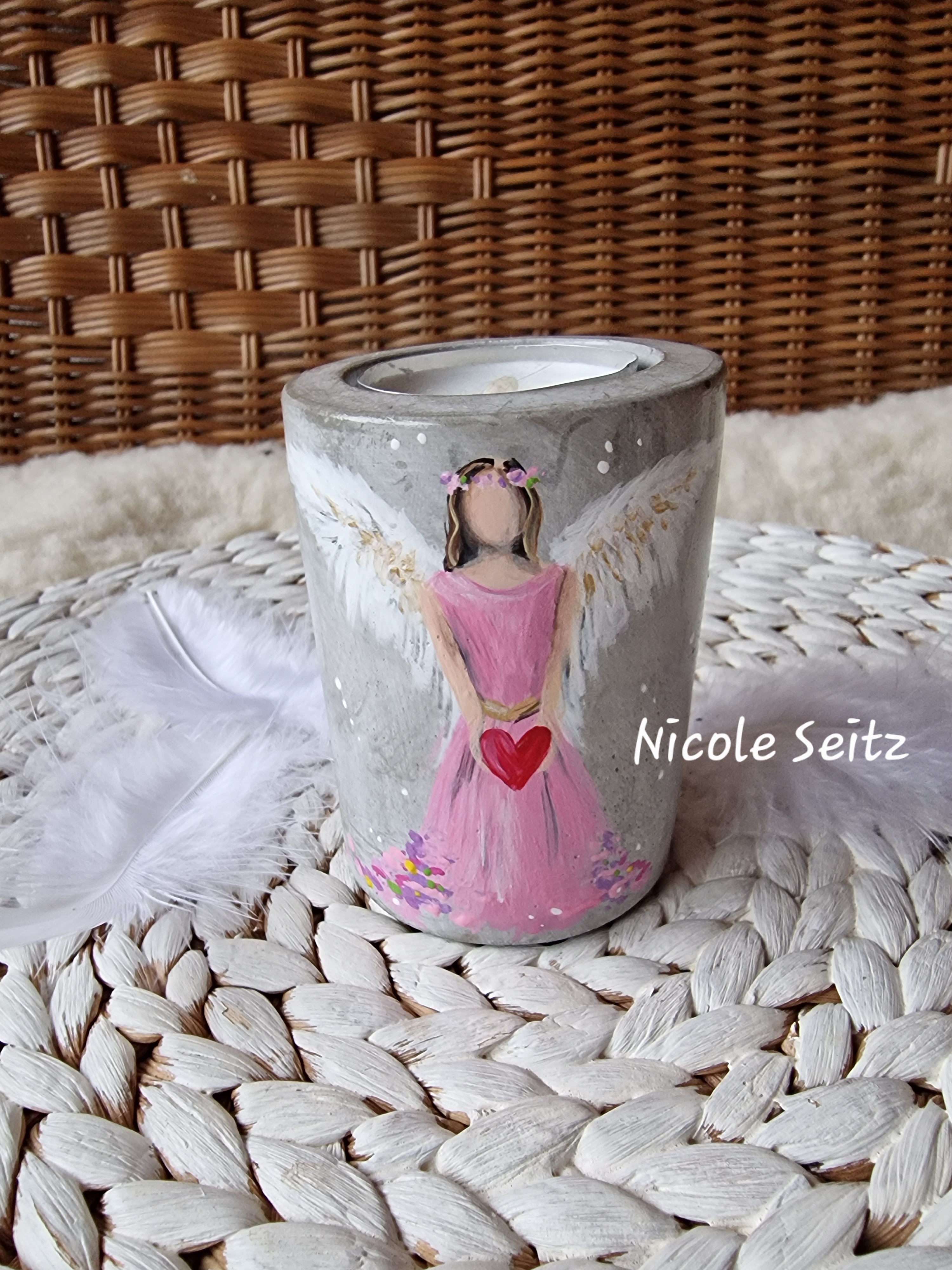 Engellicht aus Beton * handbemalt * Herz * Rosa