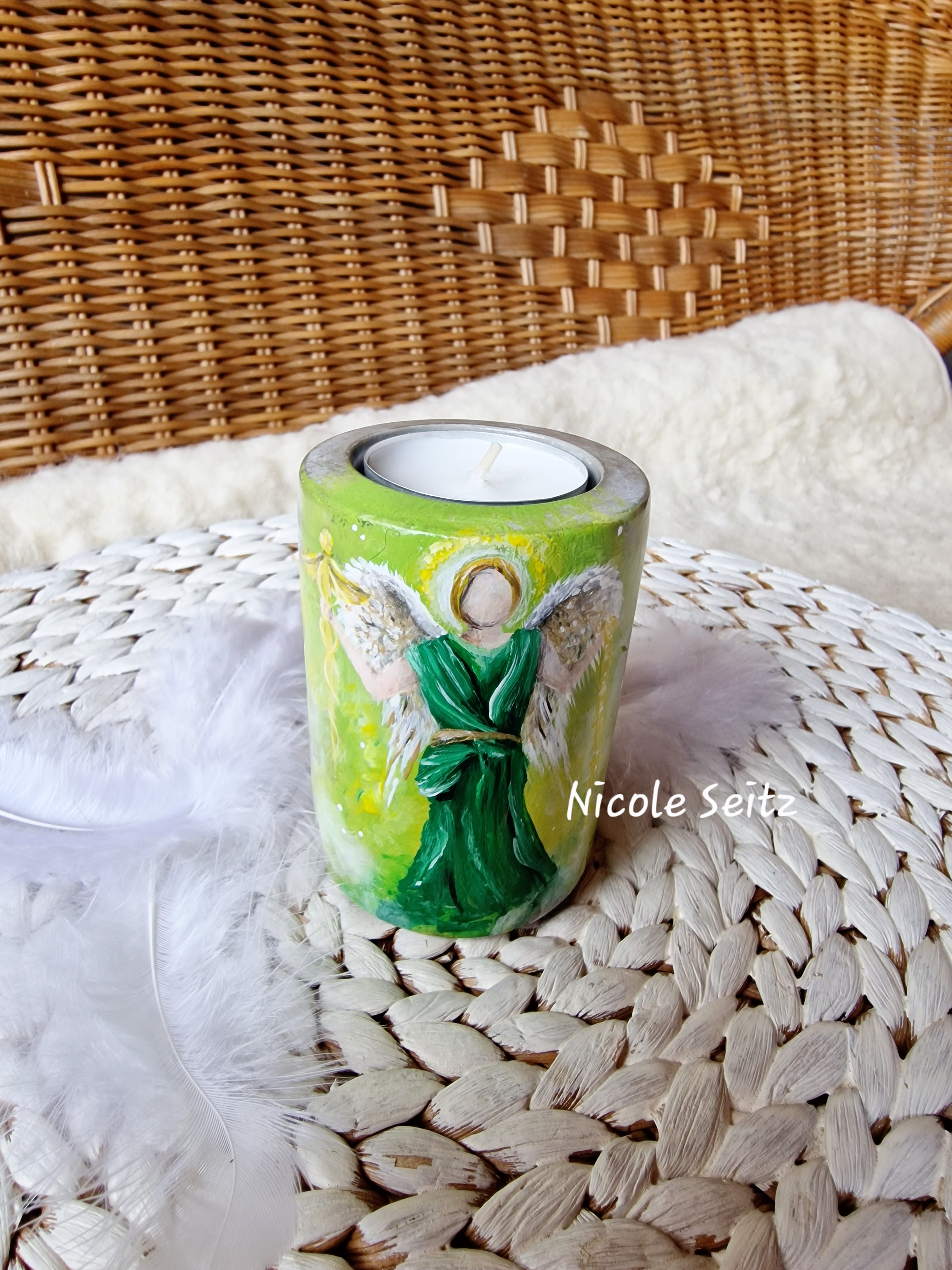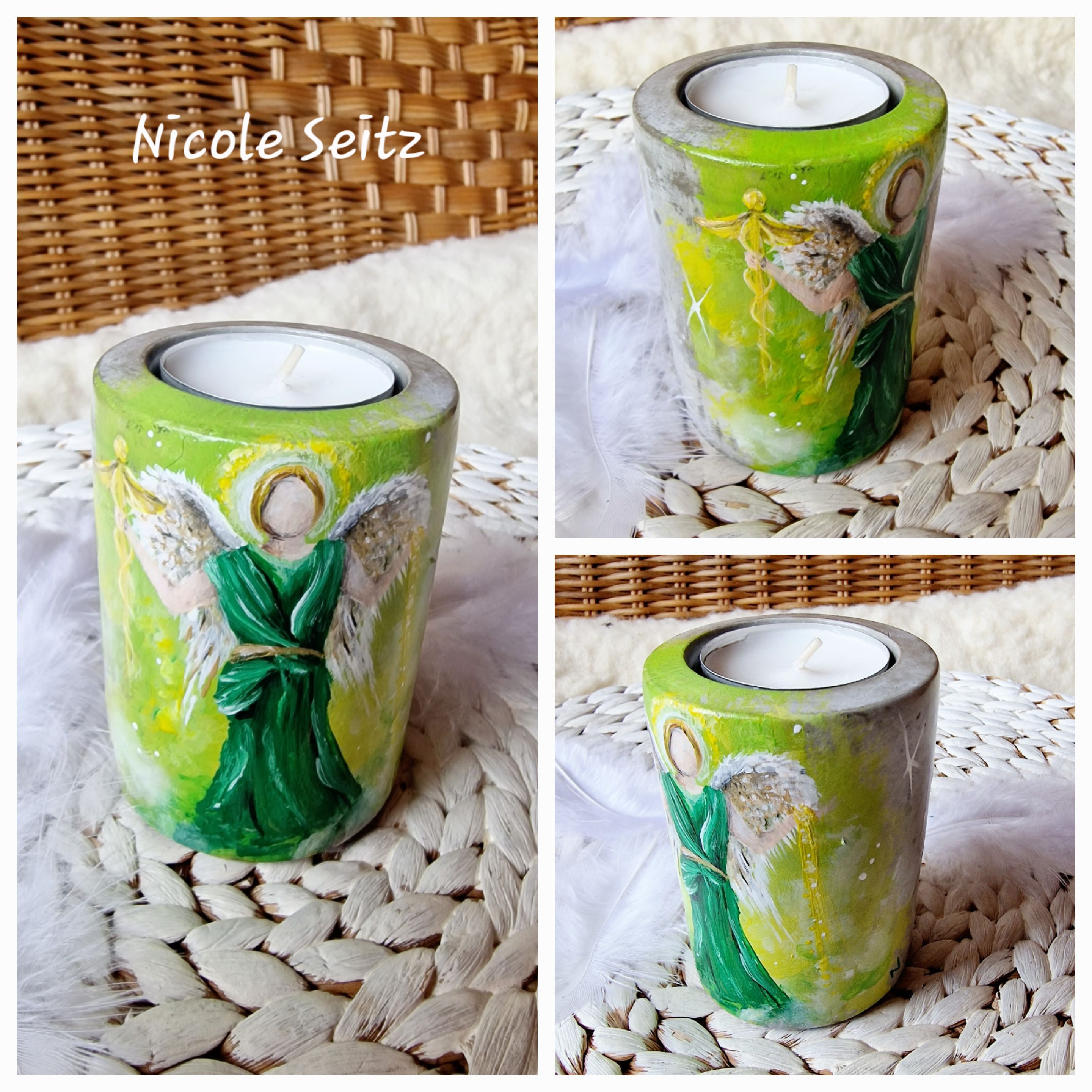 Engellicht aus Beton * handbemalt * Erzengel Raphael