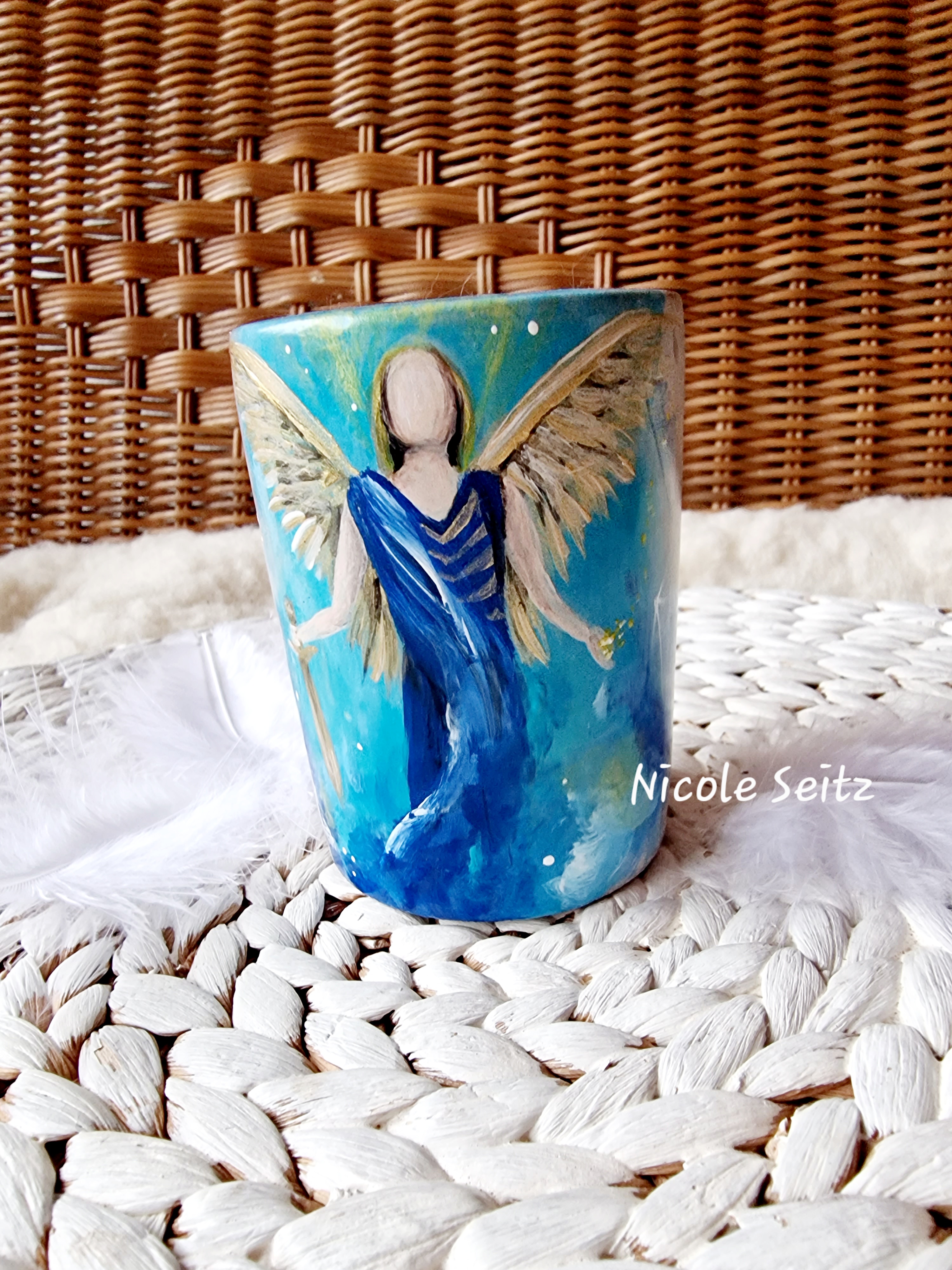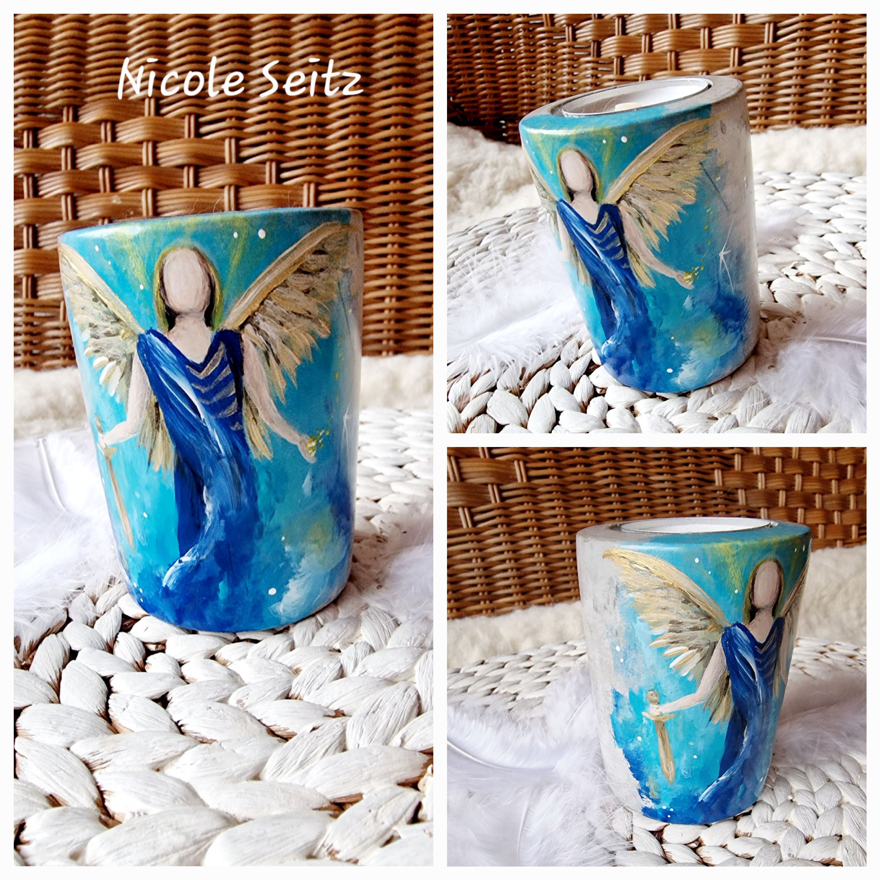 Engellicht aus Beton * handbemalt * Erzengel Michael