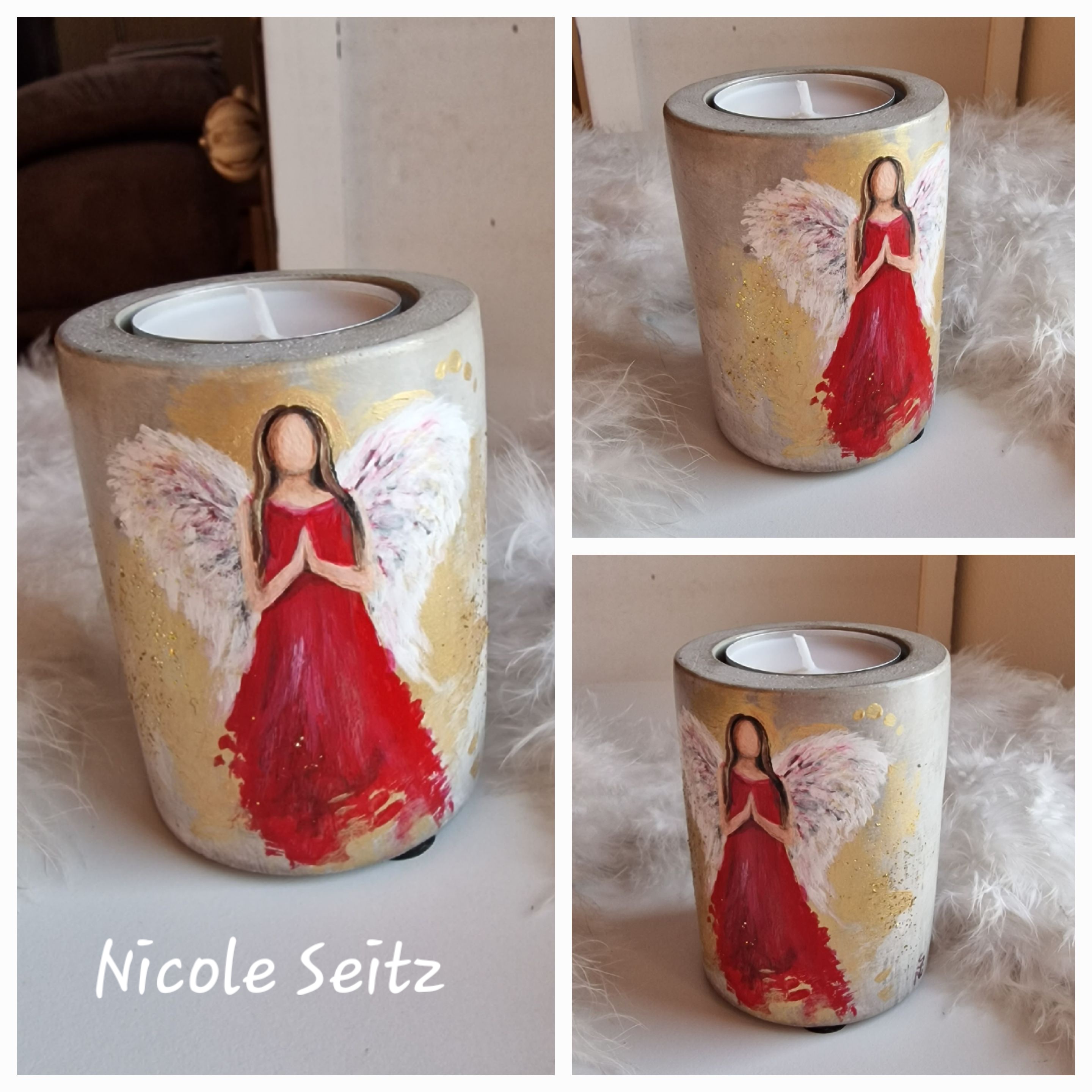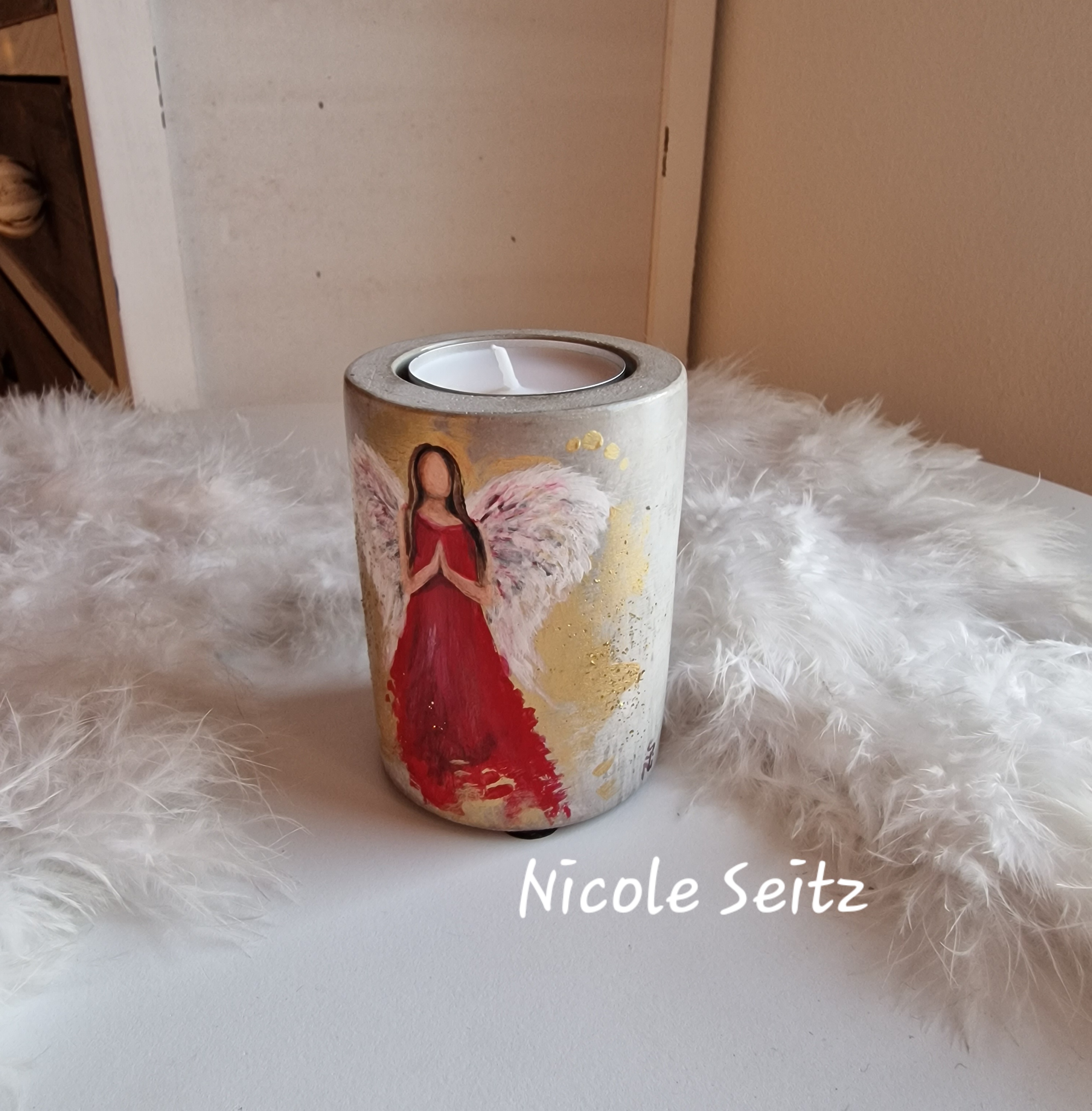 Engellicht aus Beton * handbemalt * Herz * Rot-Gold
