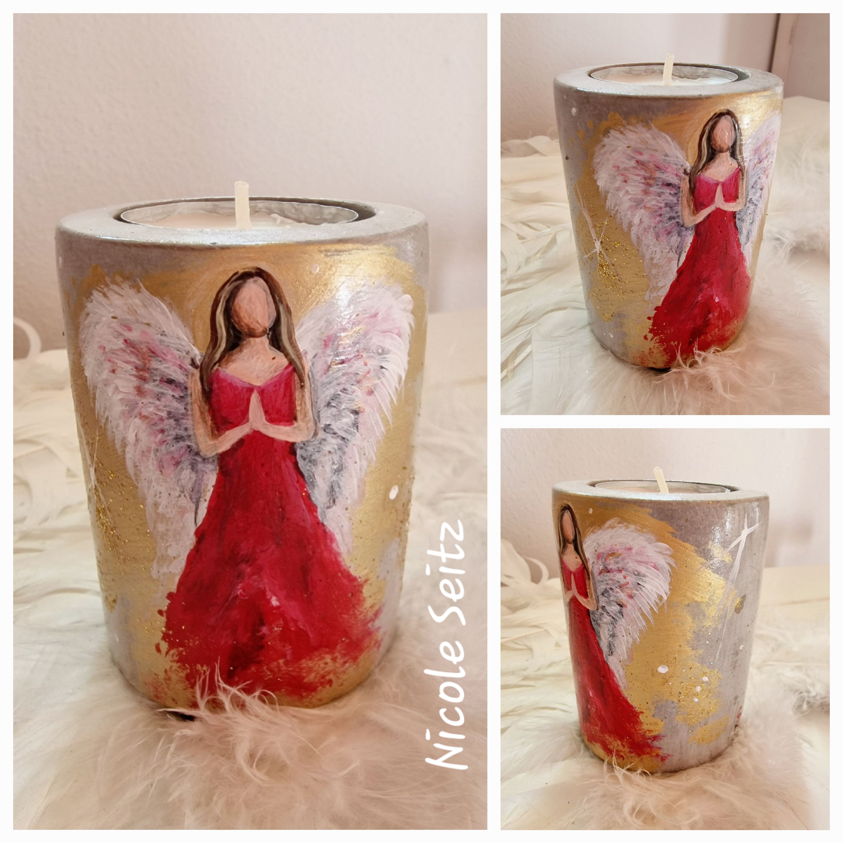 Engellicht aus Beton * handbemalt * Herz * Rot-Gold