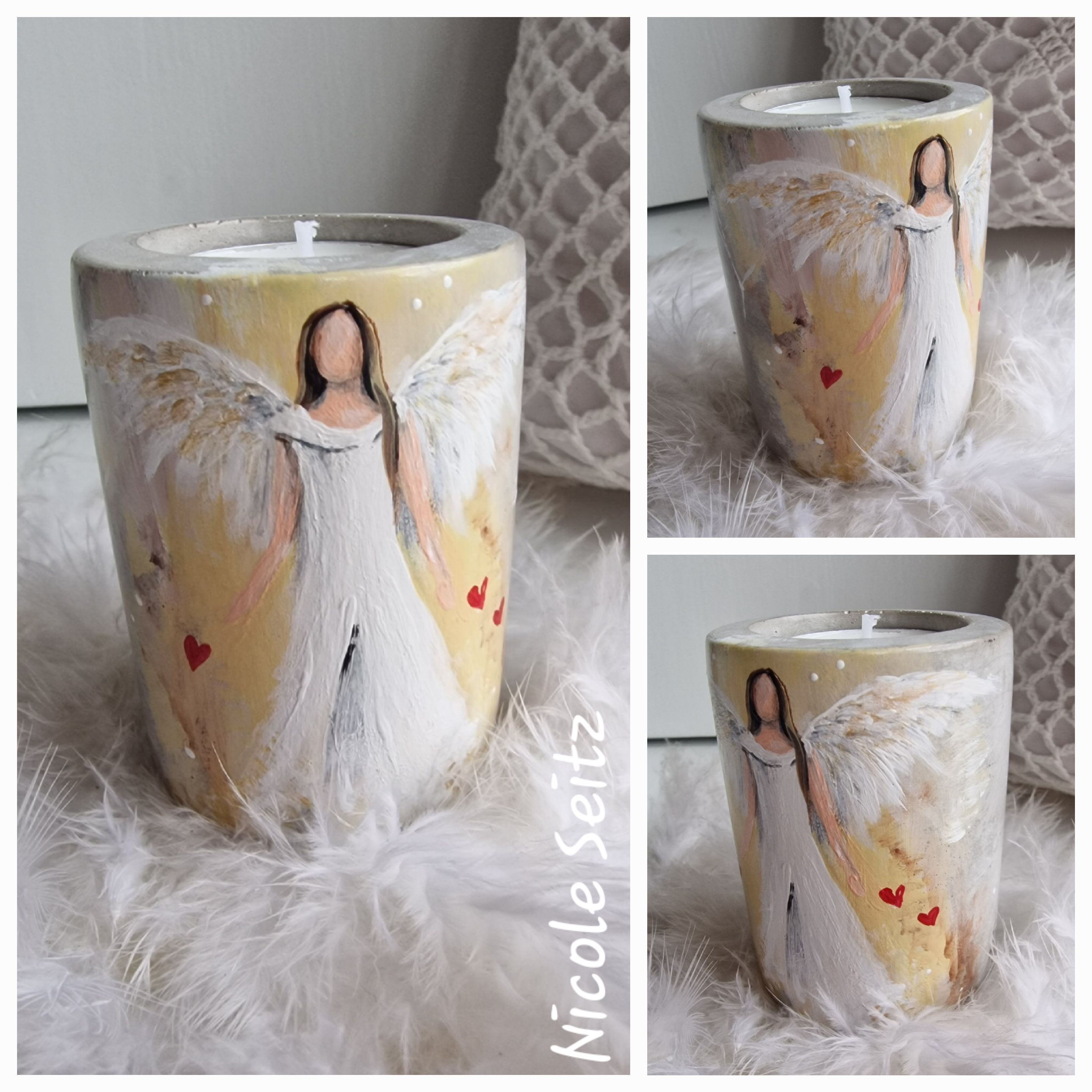 Engellicht aus Beton * handbemalt * Herz * Beige