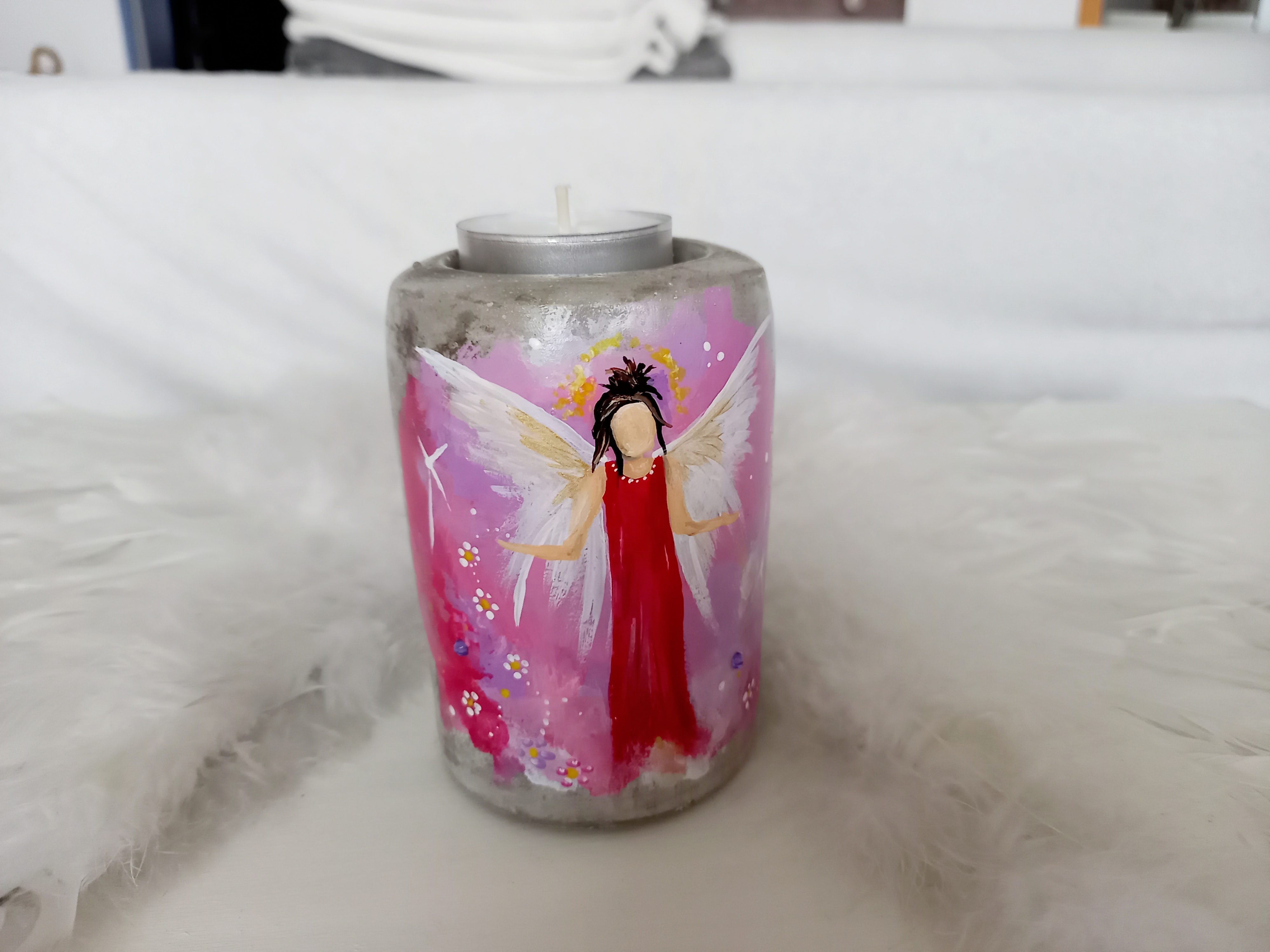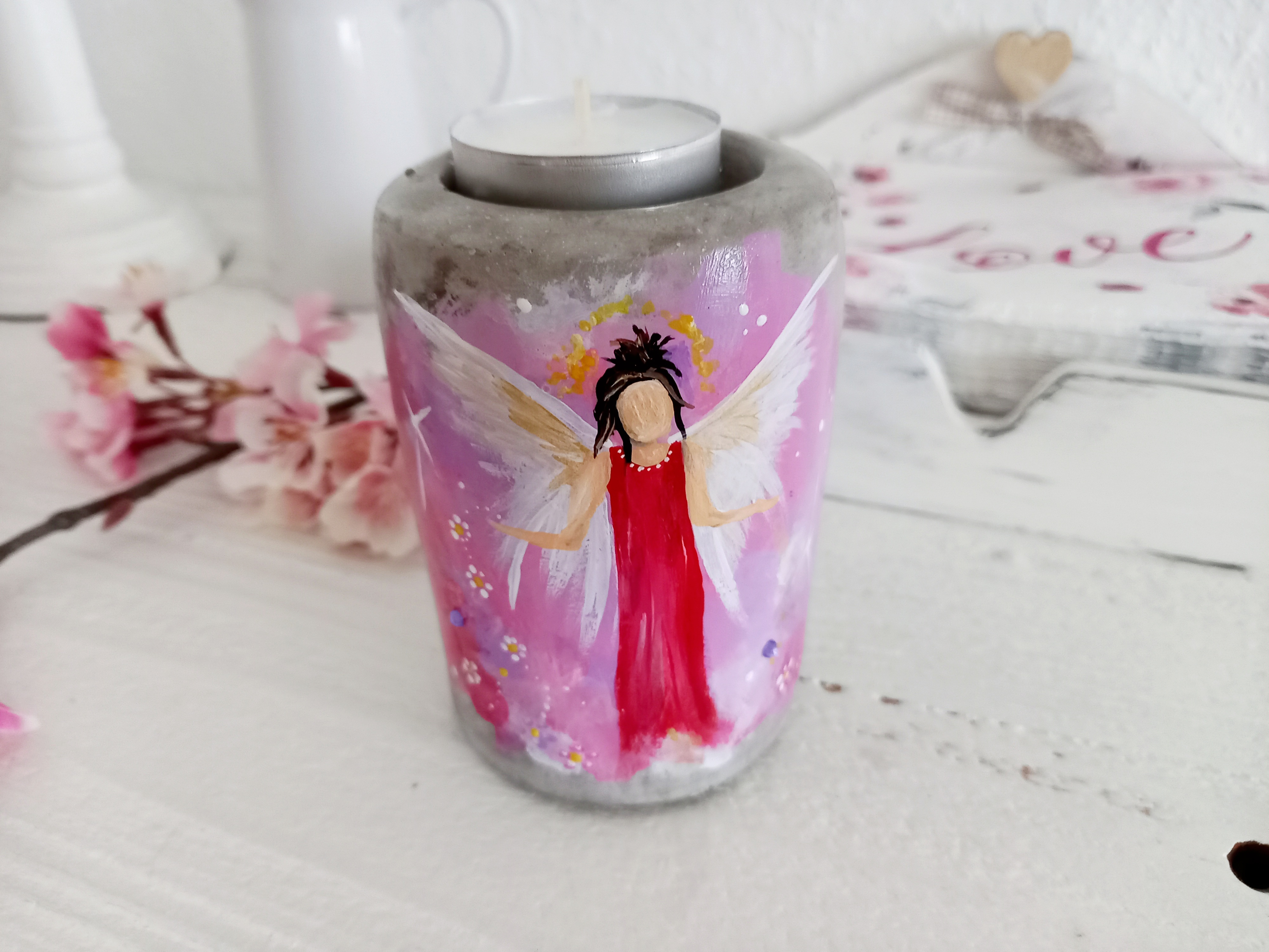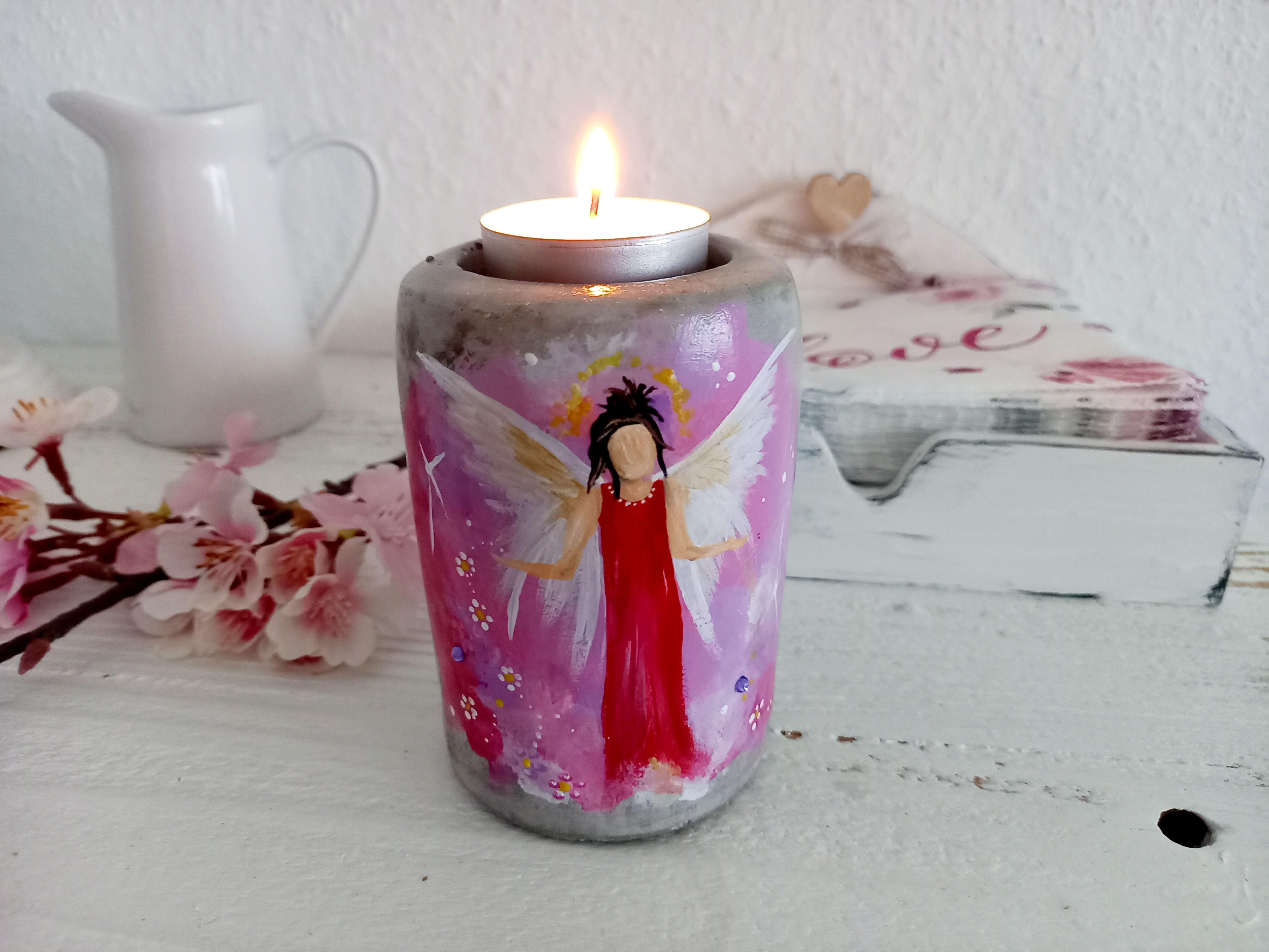 Preview: Engellicht aus Beton * handbemalt - Blumen