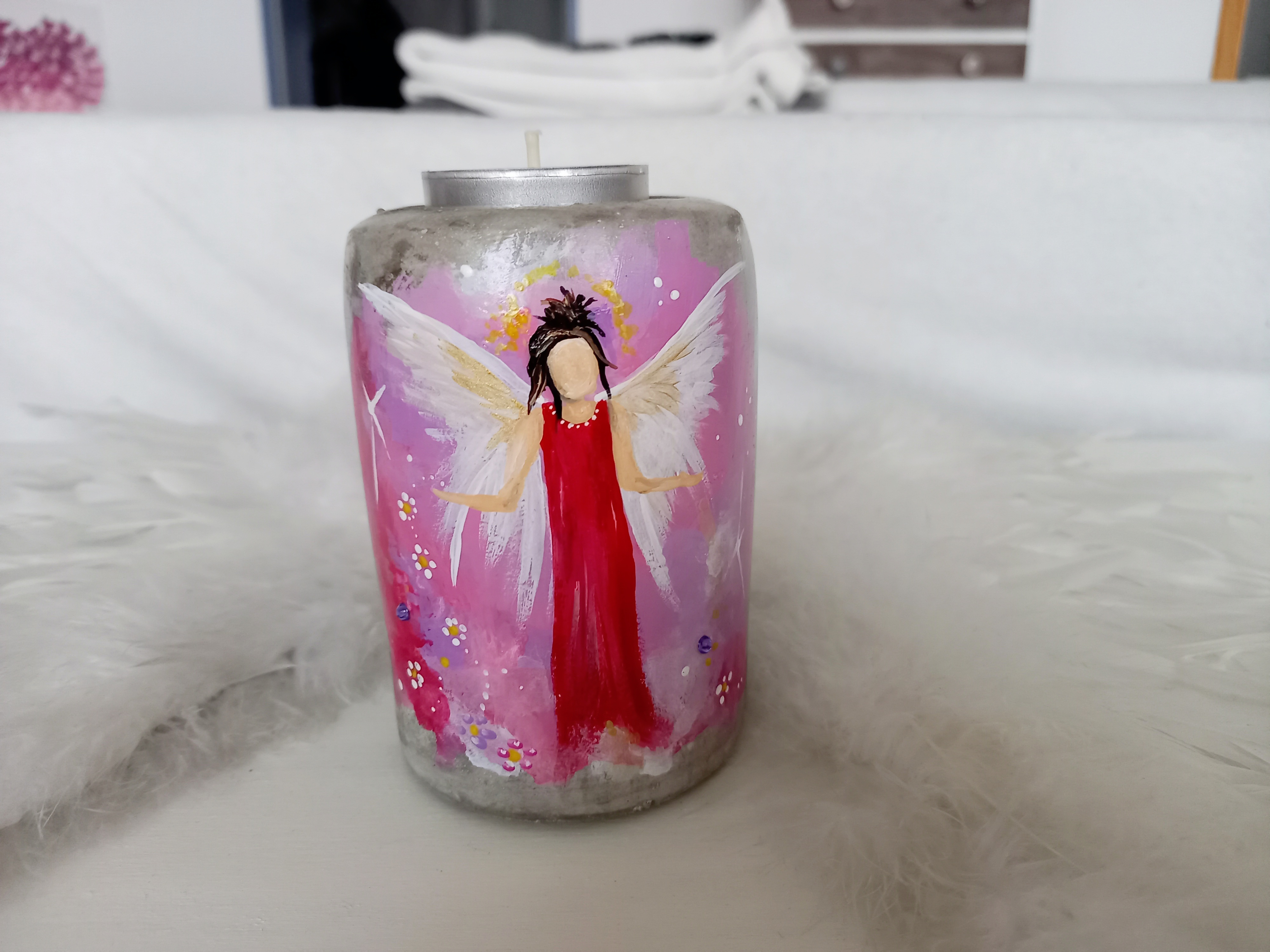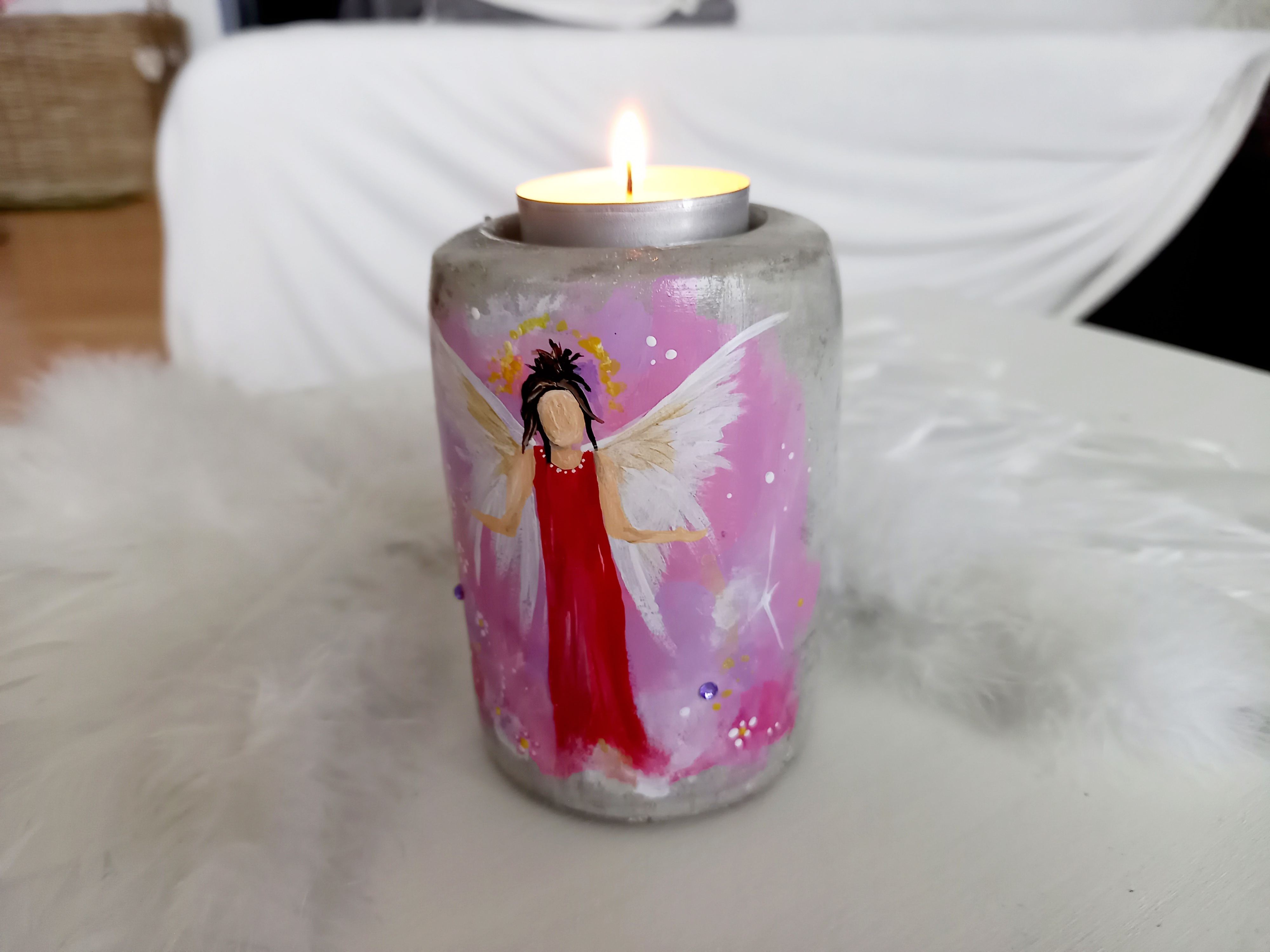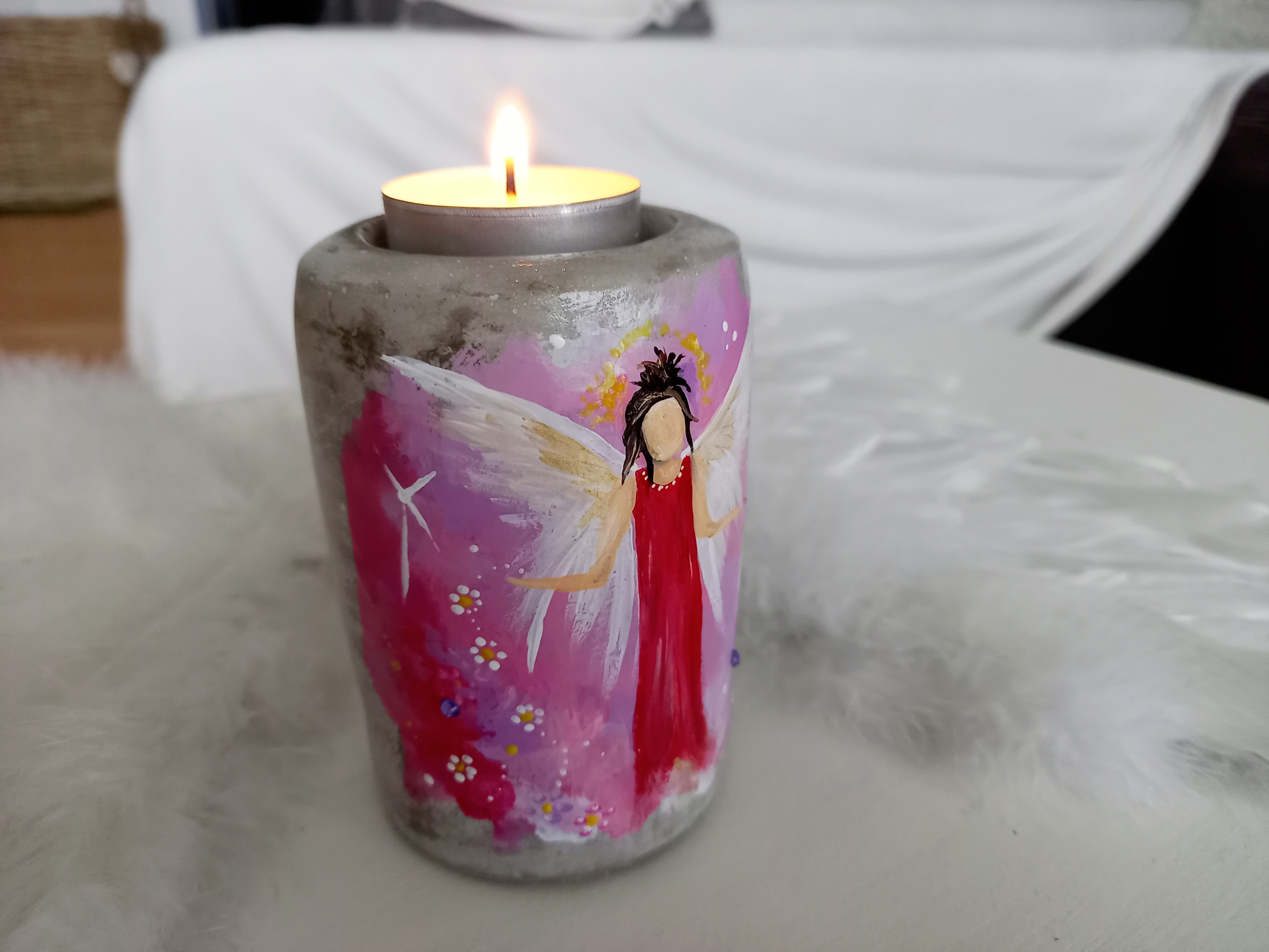 Preview: Engellicht aus Beton * handbemalt - Blumen