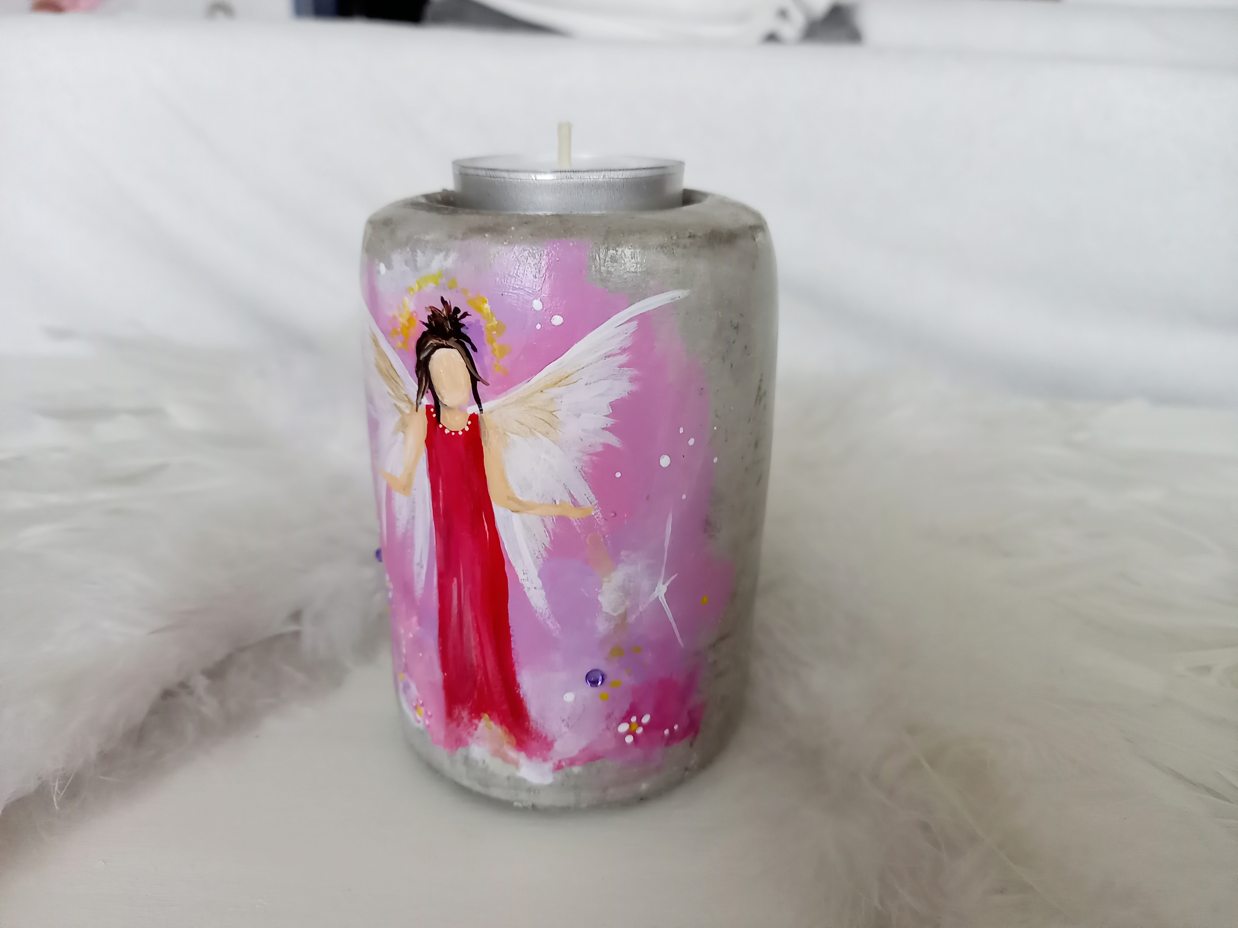 Mobile Preview: Engellicht aus Beton * handbemalt - Blumen