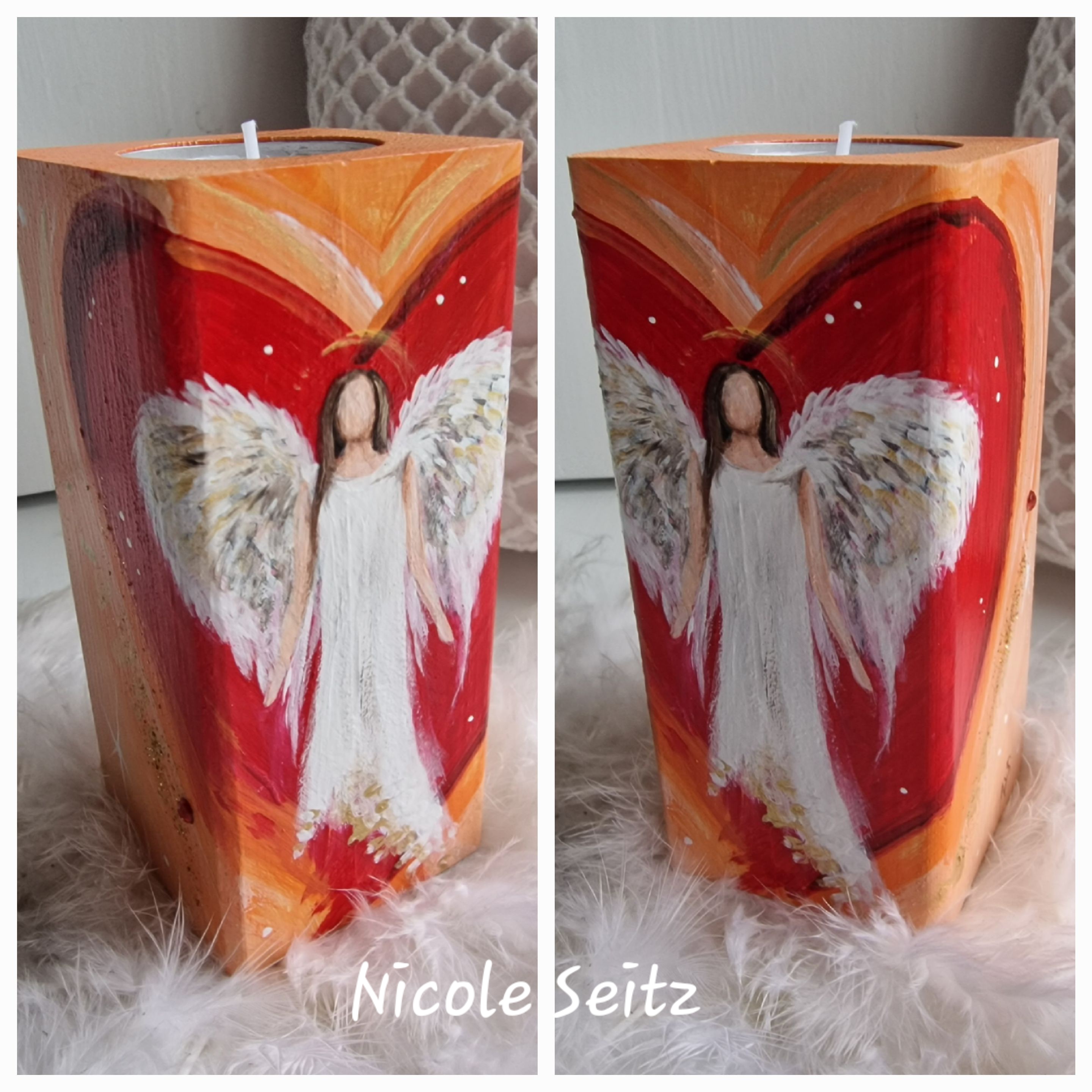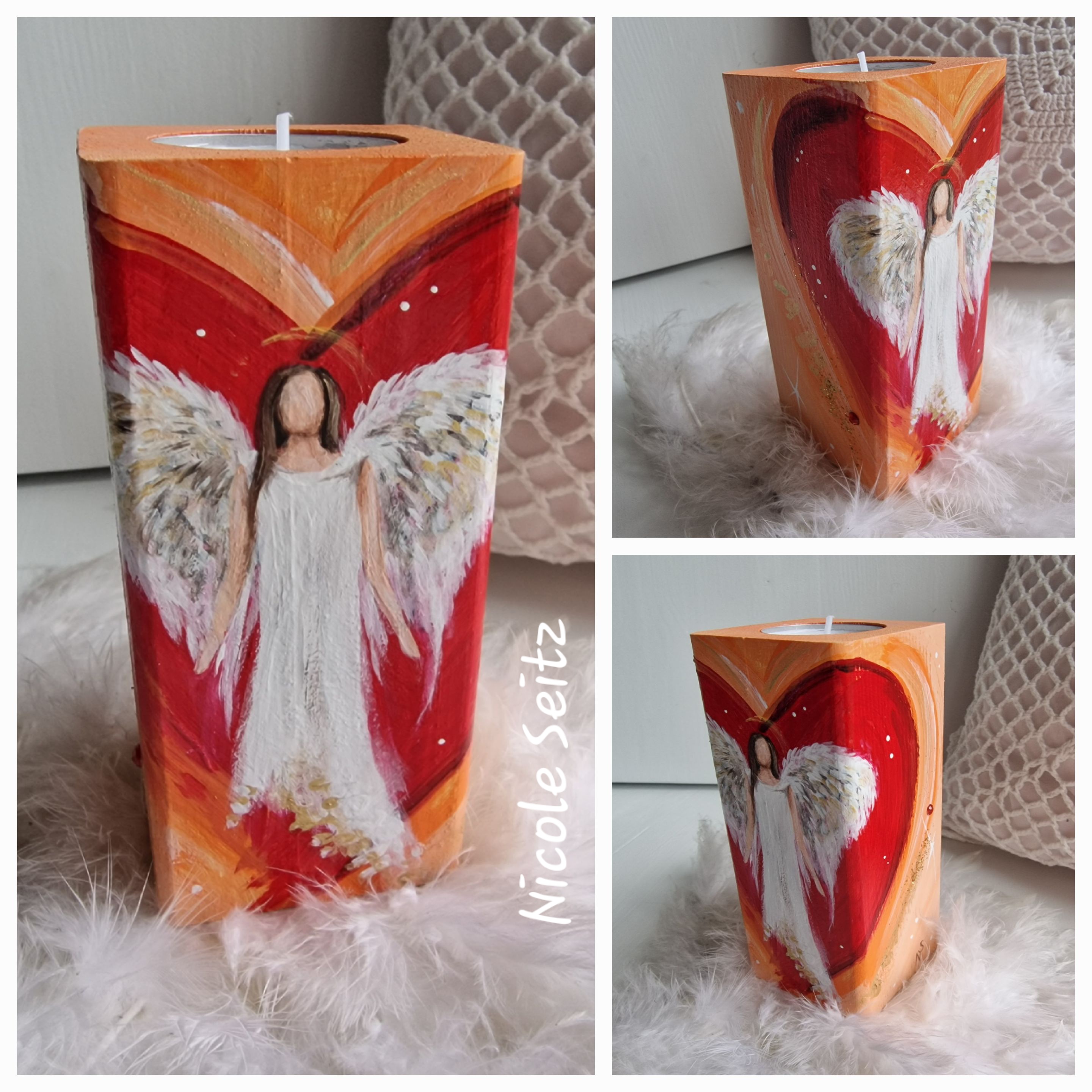 Engellicht aus Holz * Rot-Orange * Herz * handbemalt