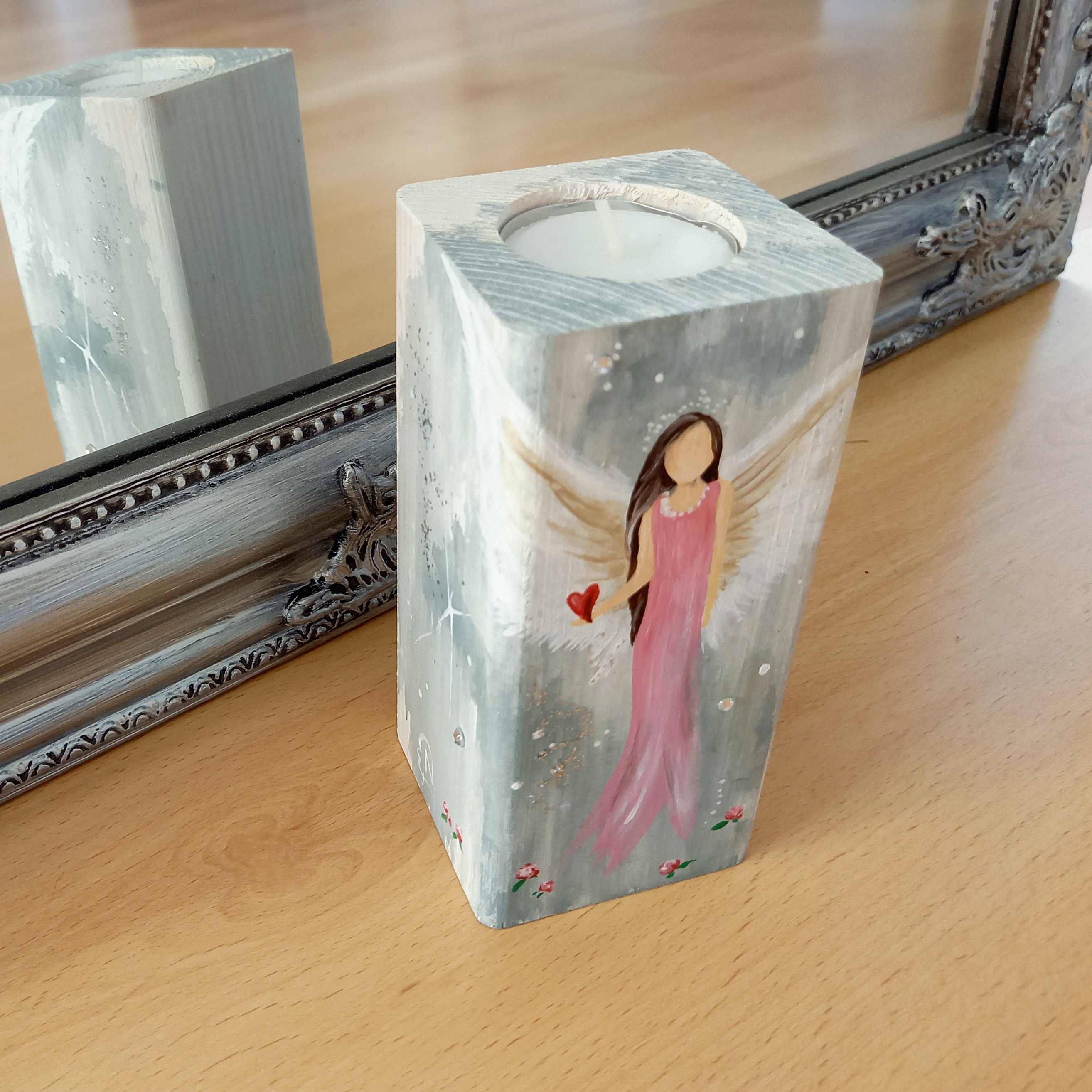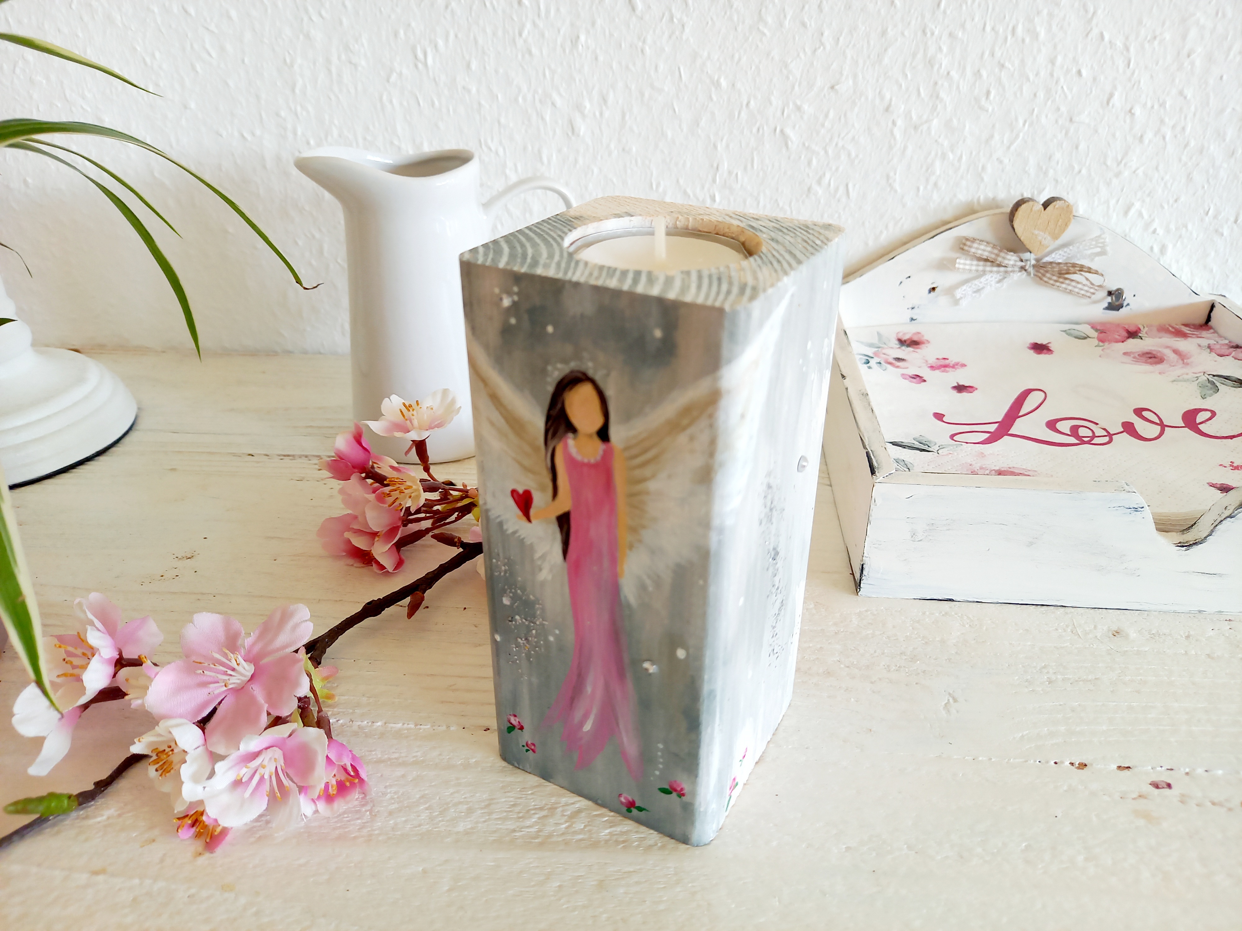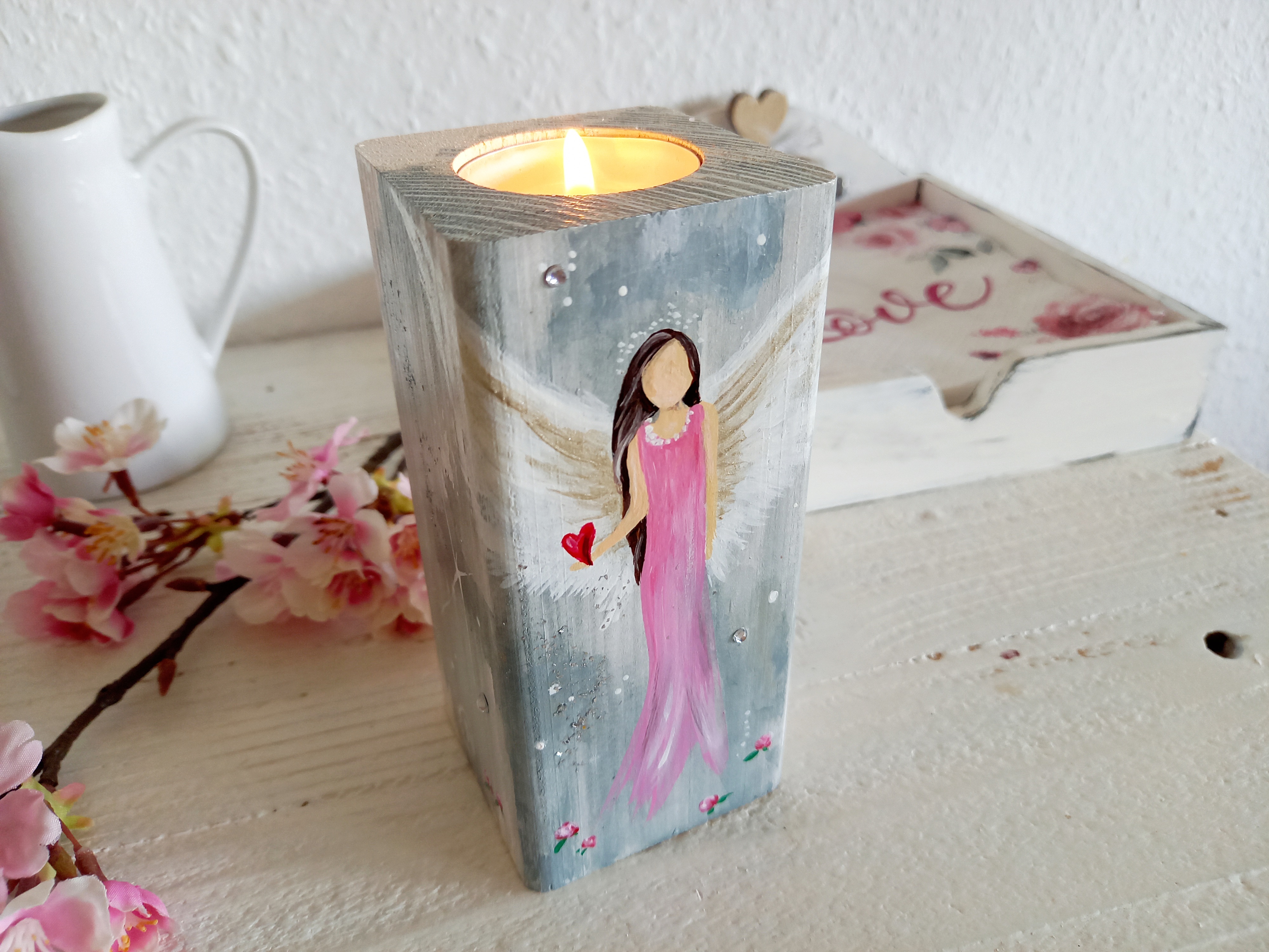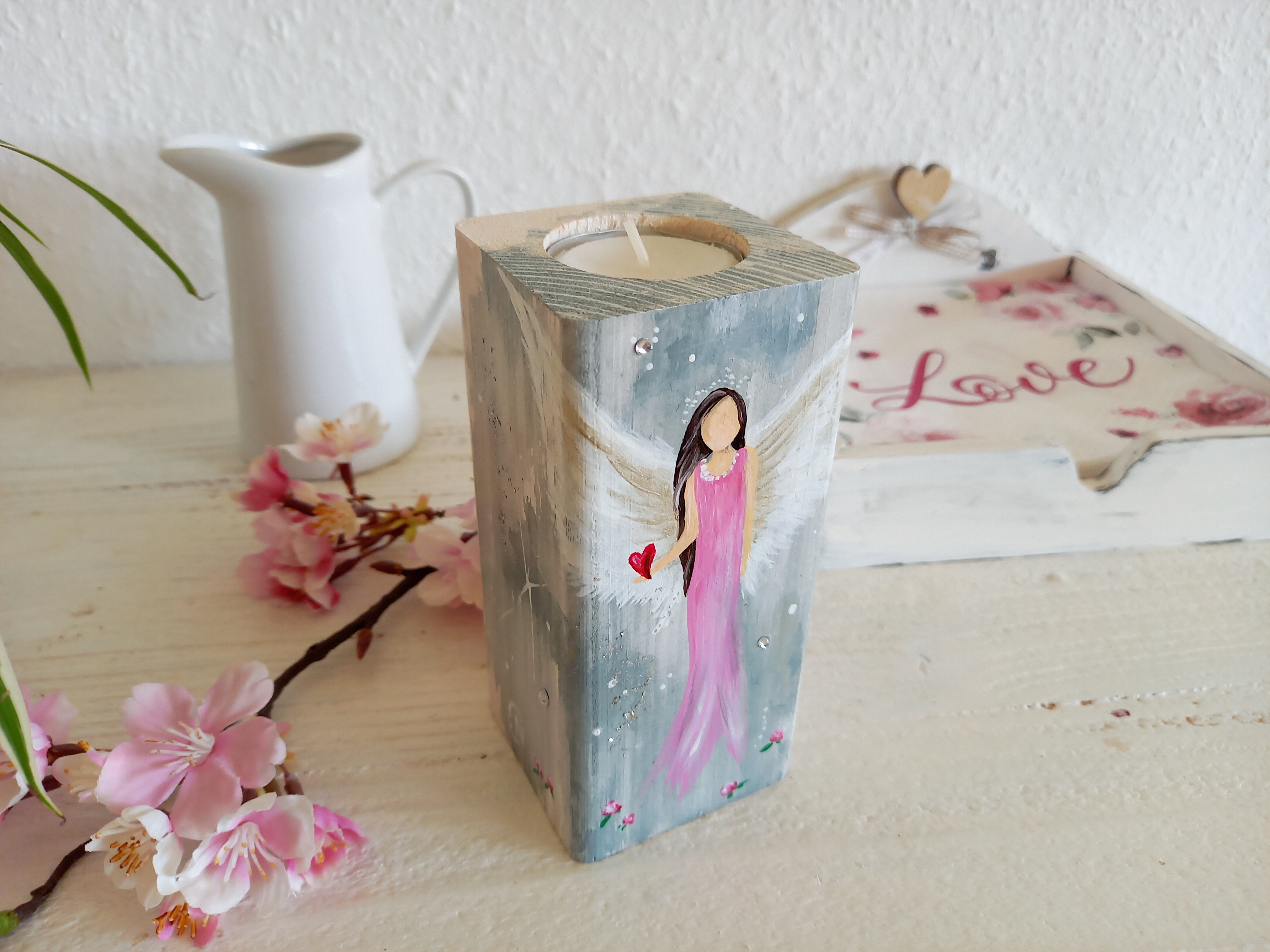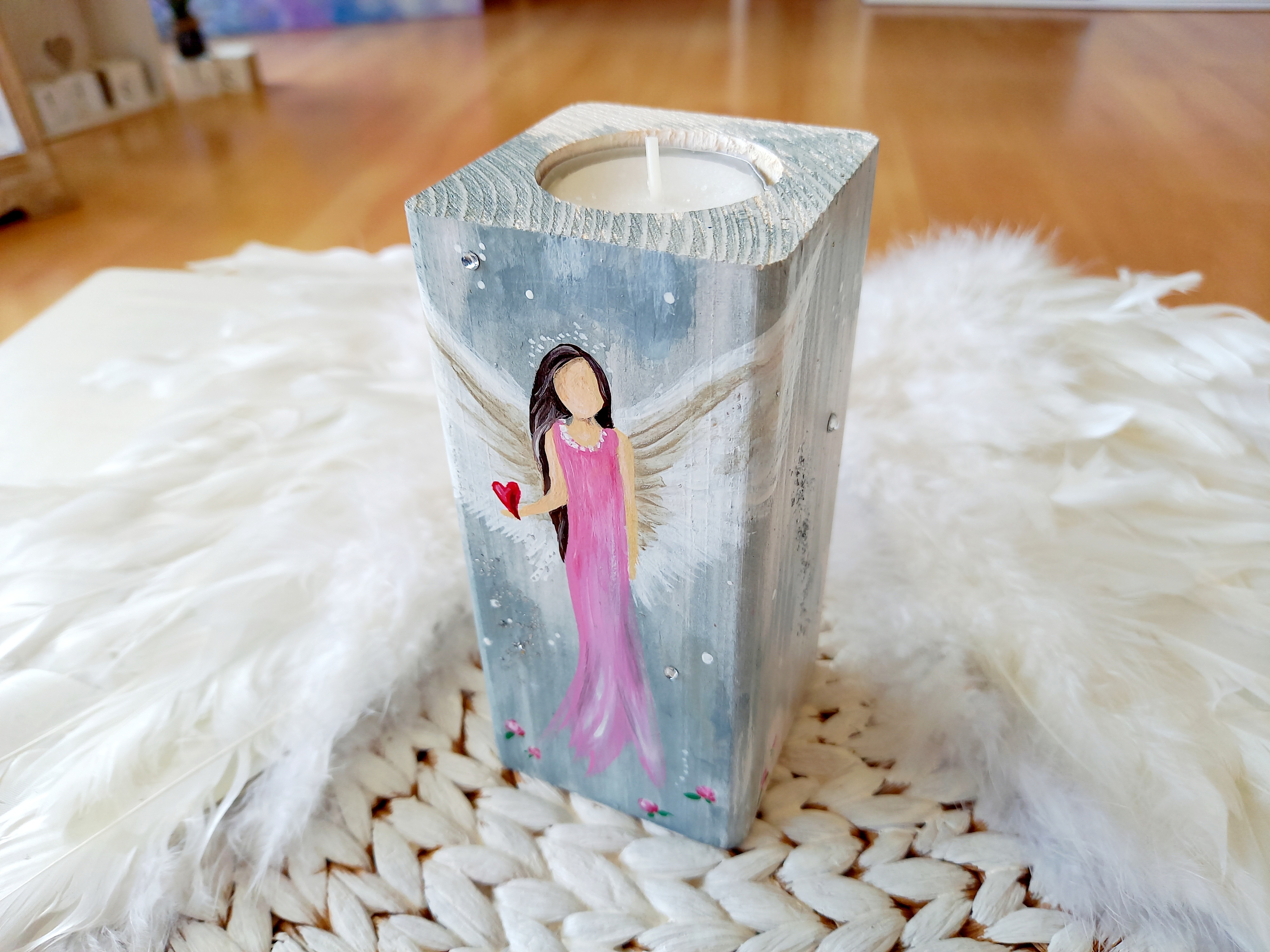 Engellicht aus Holz * Rosen, Herz * handbemalt
