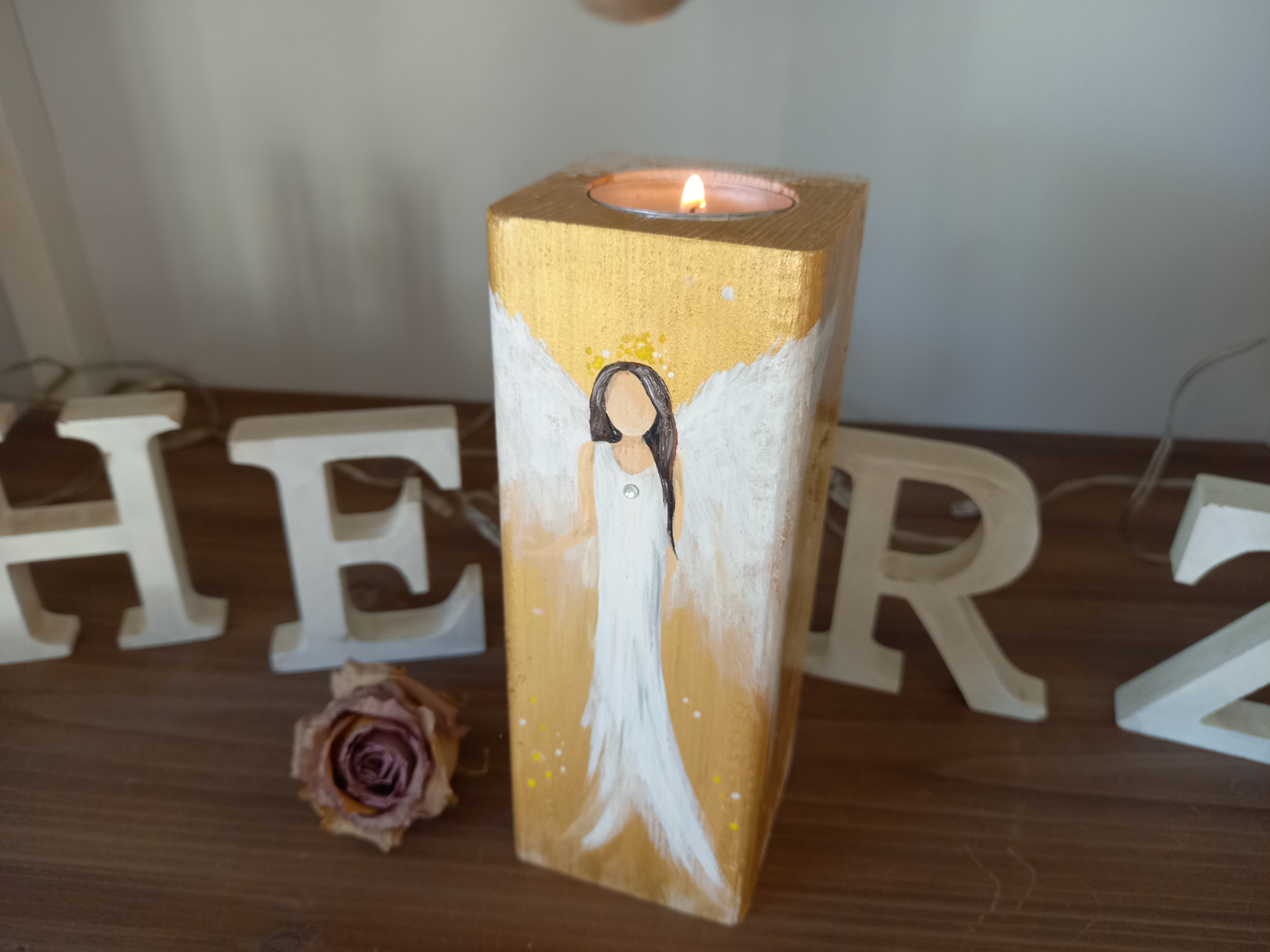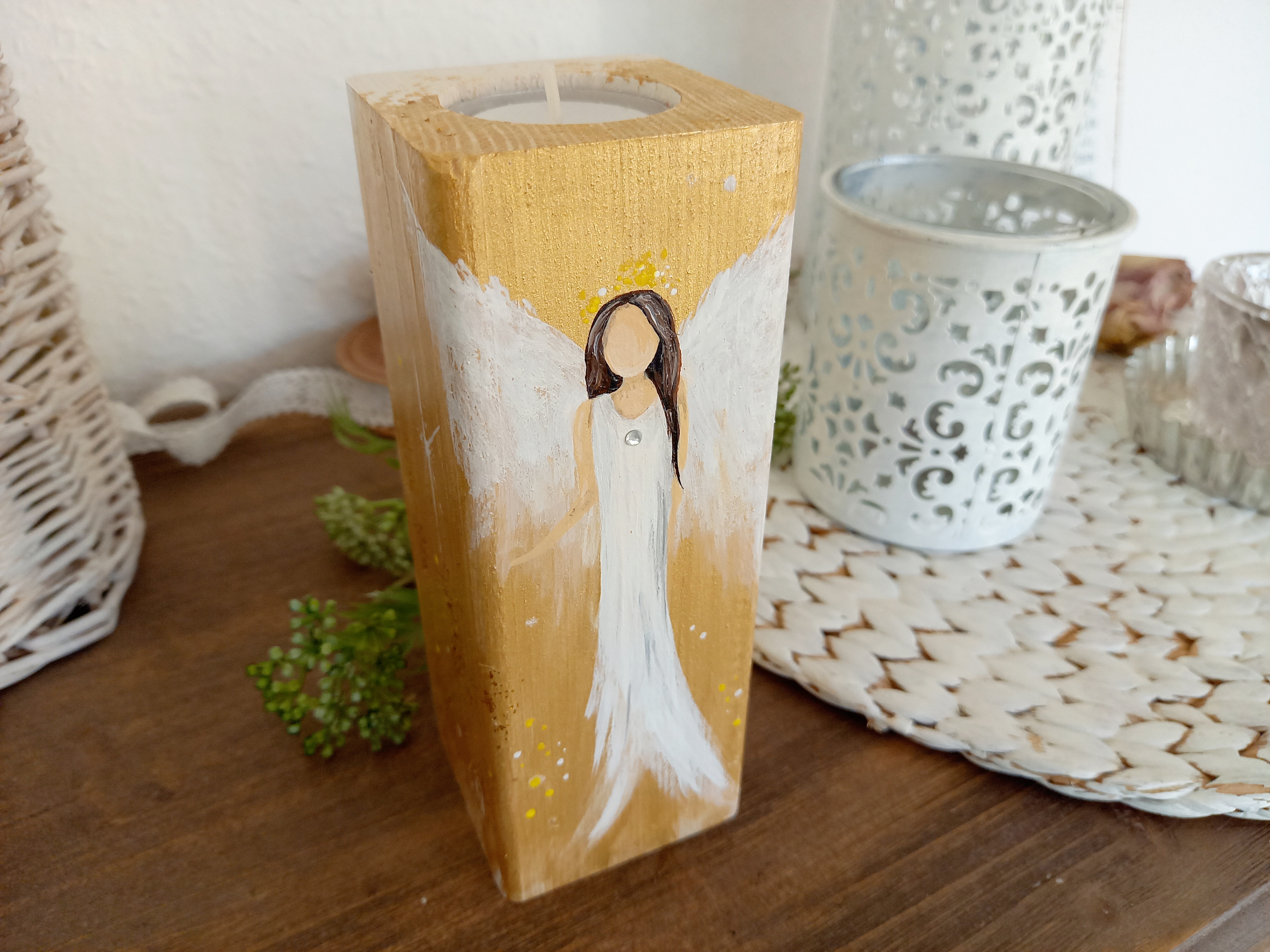 Mobile Preview: Engellicht aus Holz * Gold * handbemalt