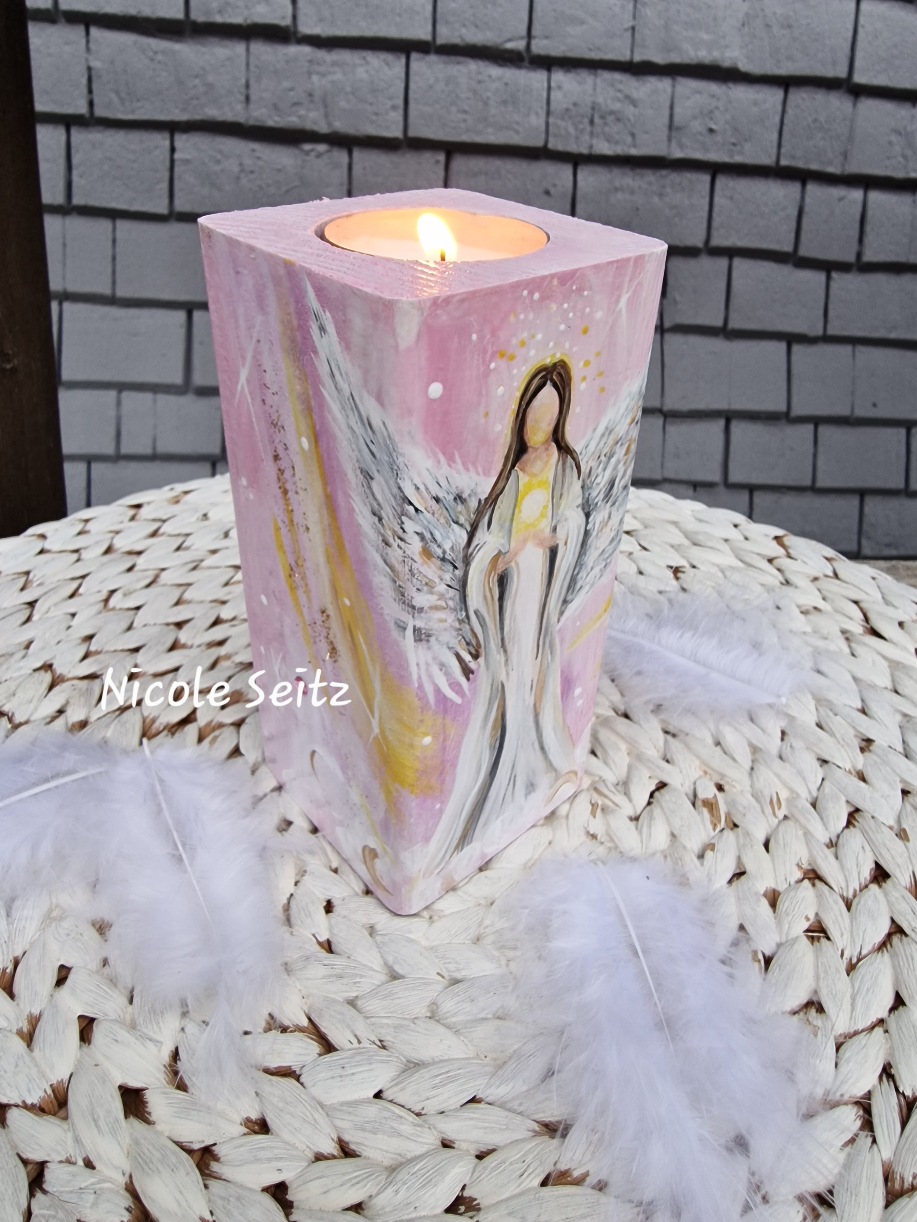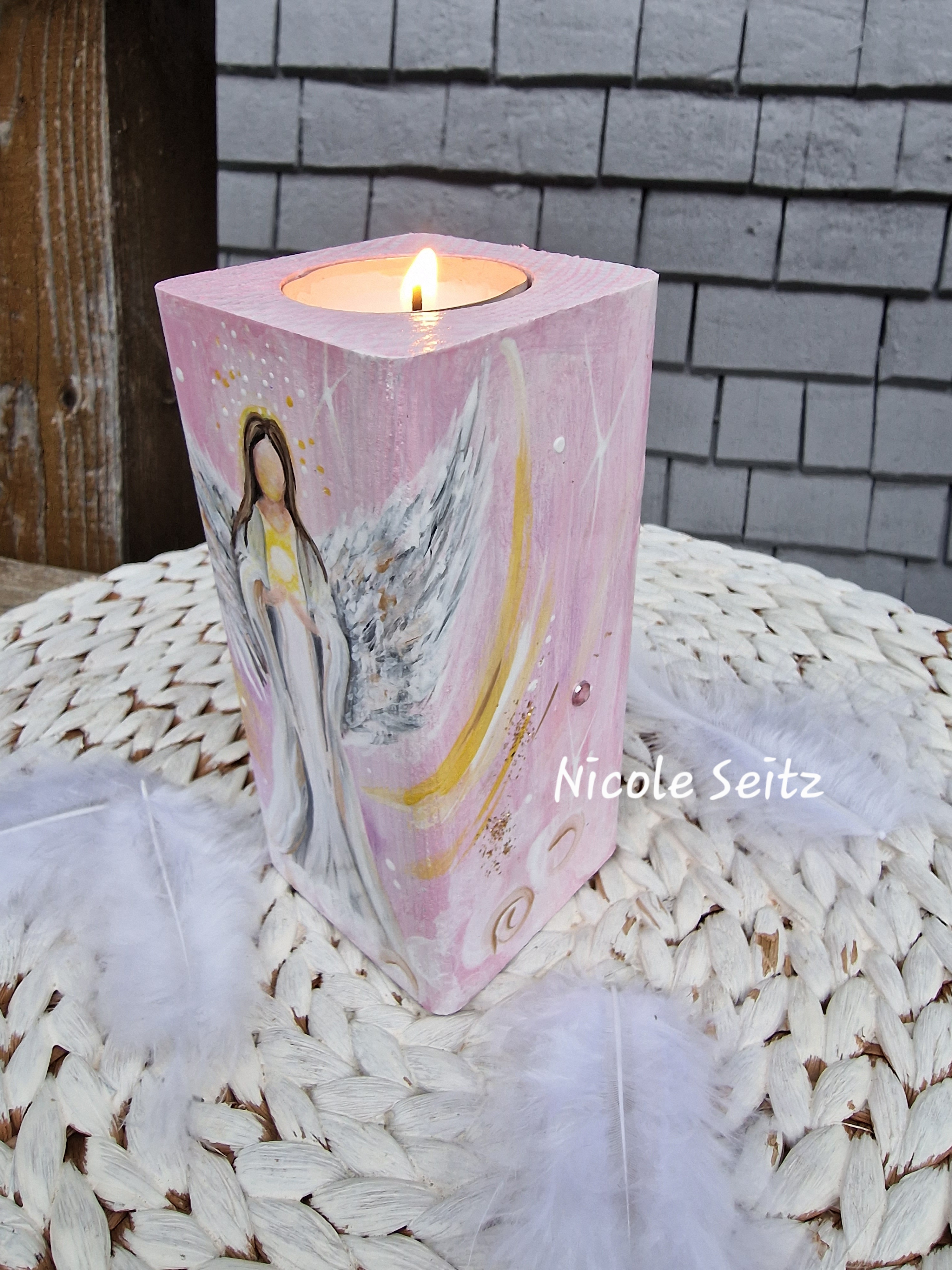 Engellicht aus Holz * Engel der Intuition * handbemalt