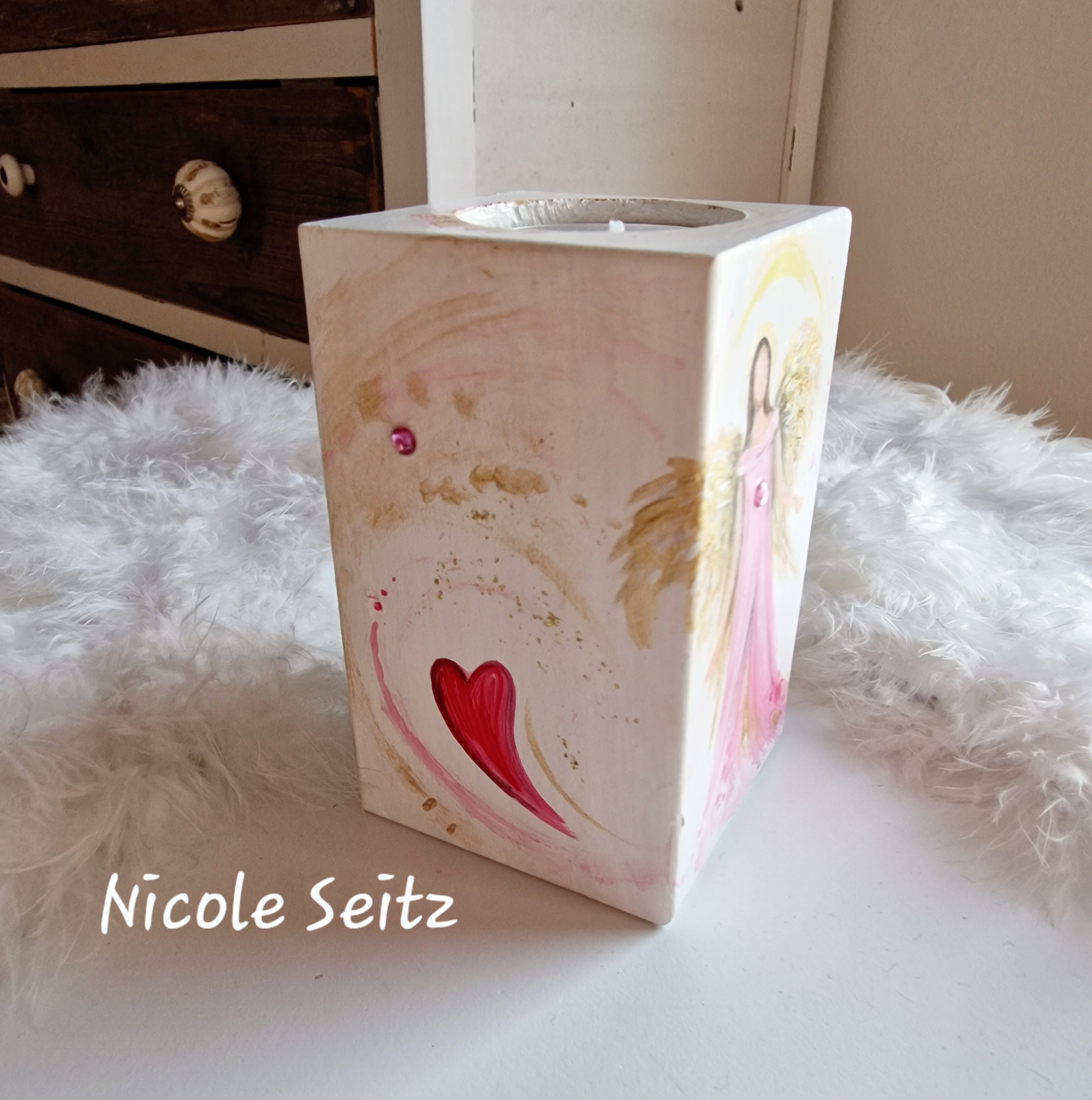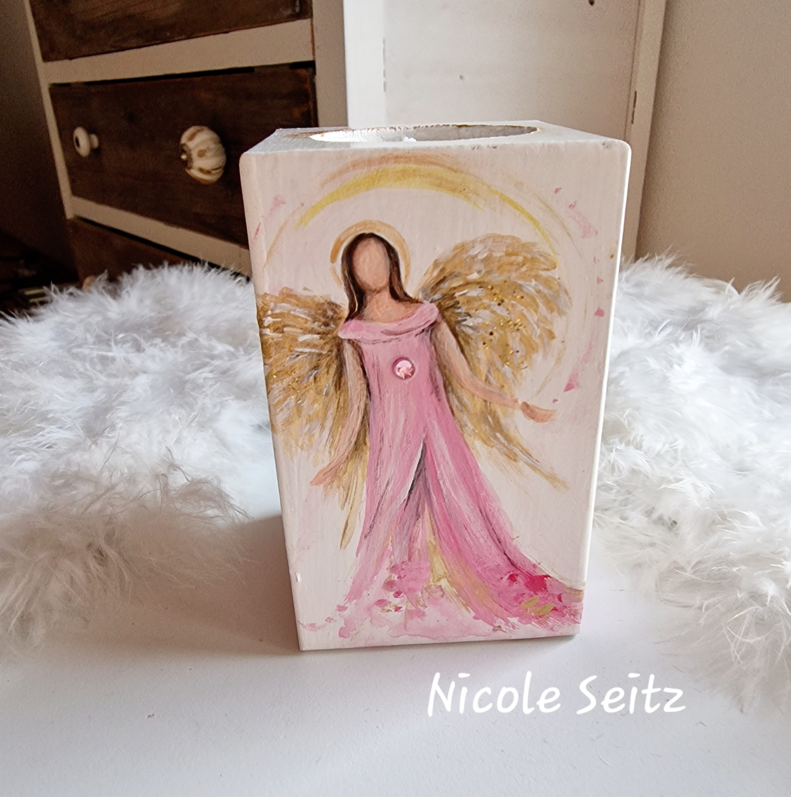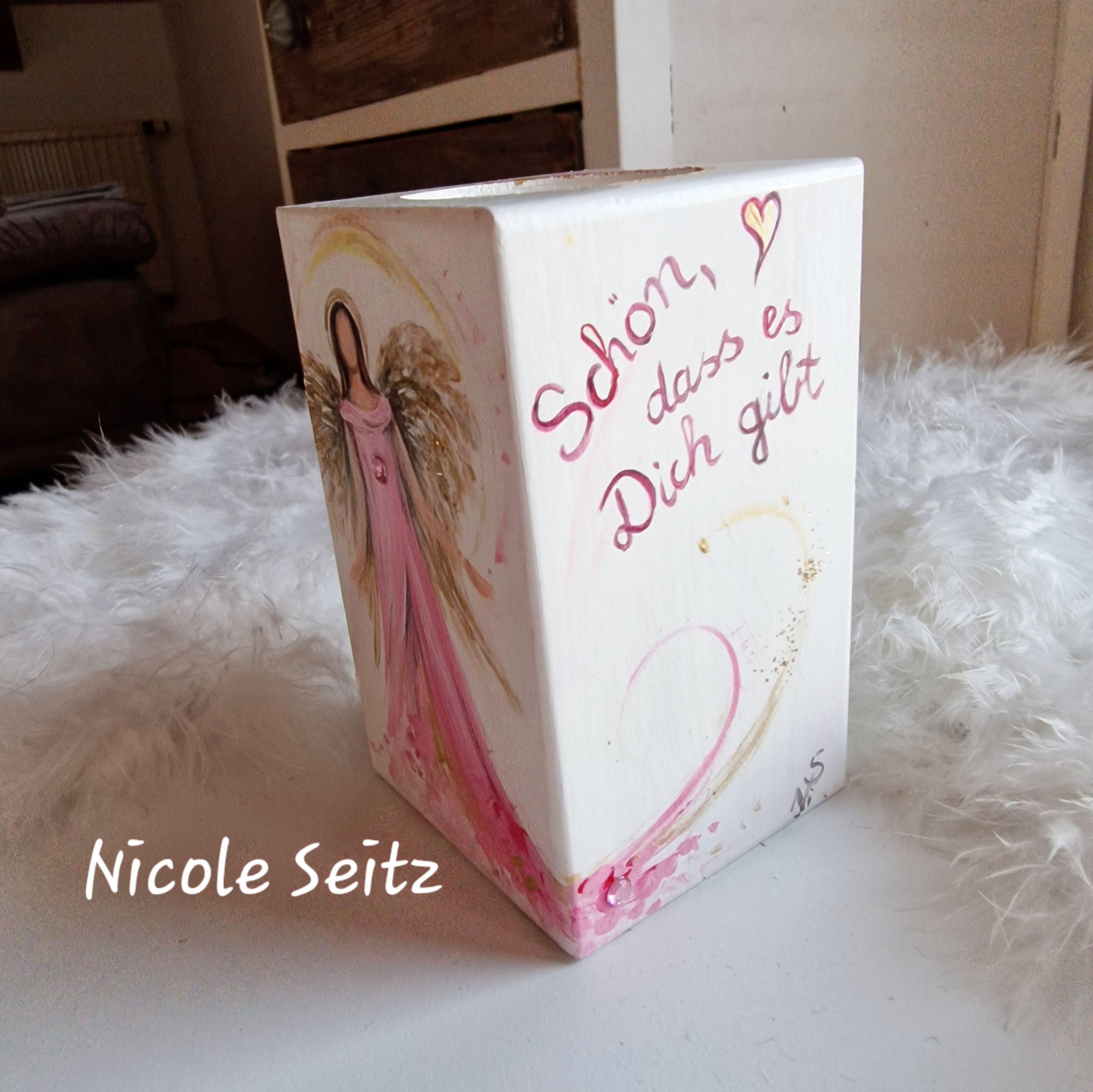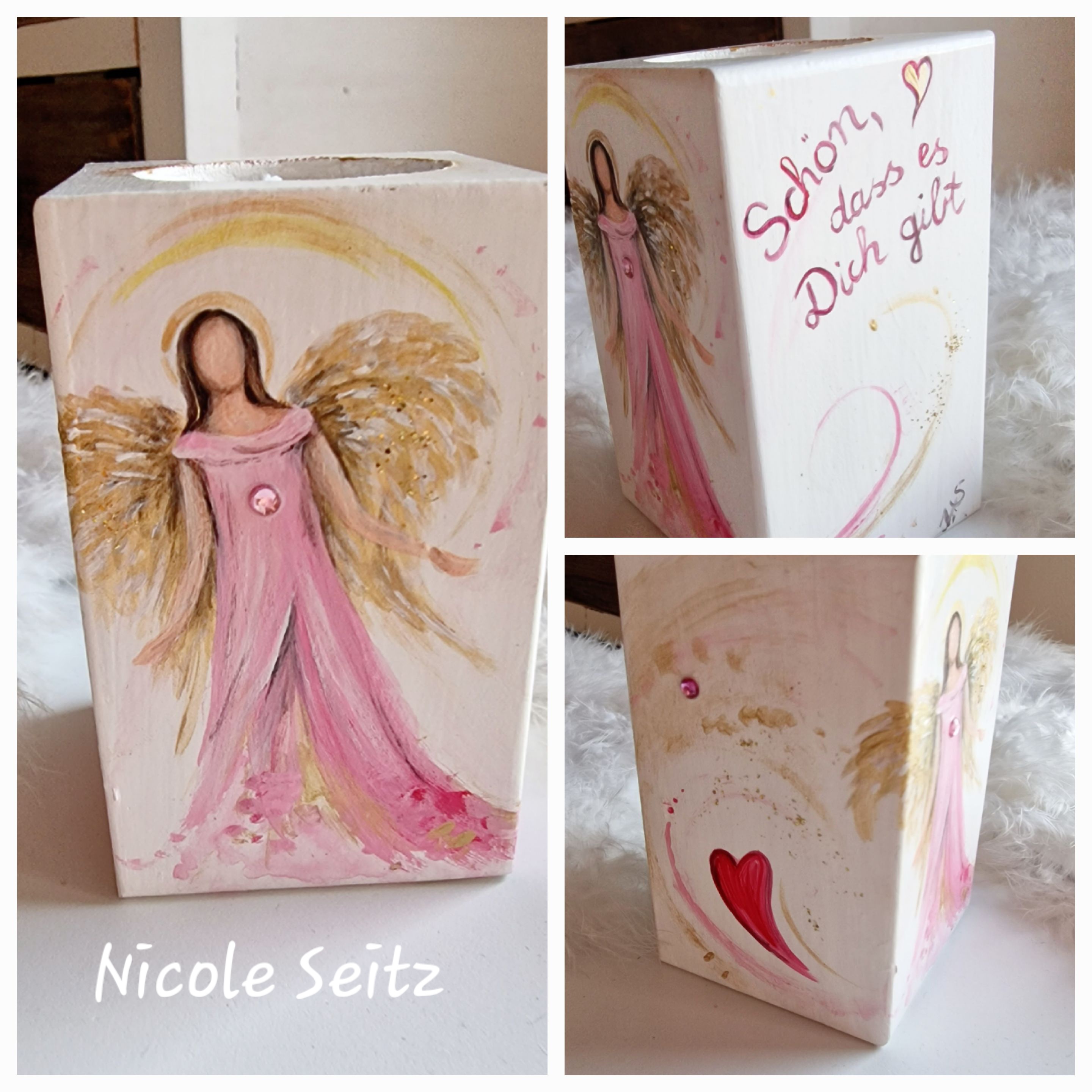 Engellicht aus Holz * Schön, dass es Dich gibt * handbemalt * 10 x 6 x 6 cm