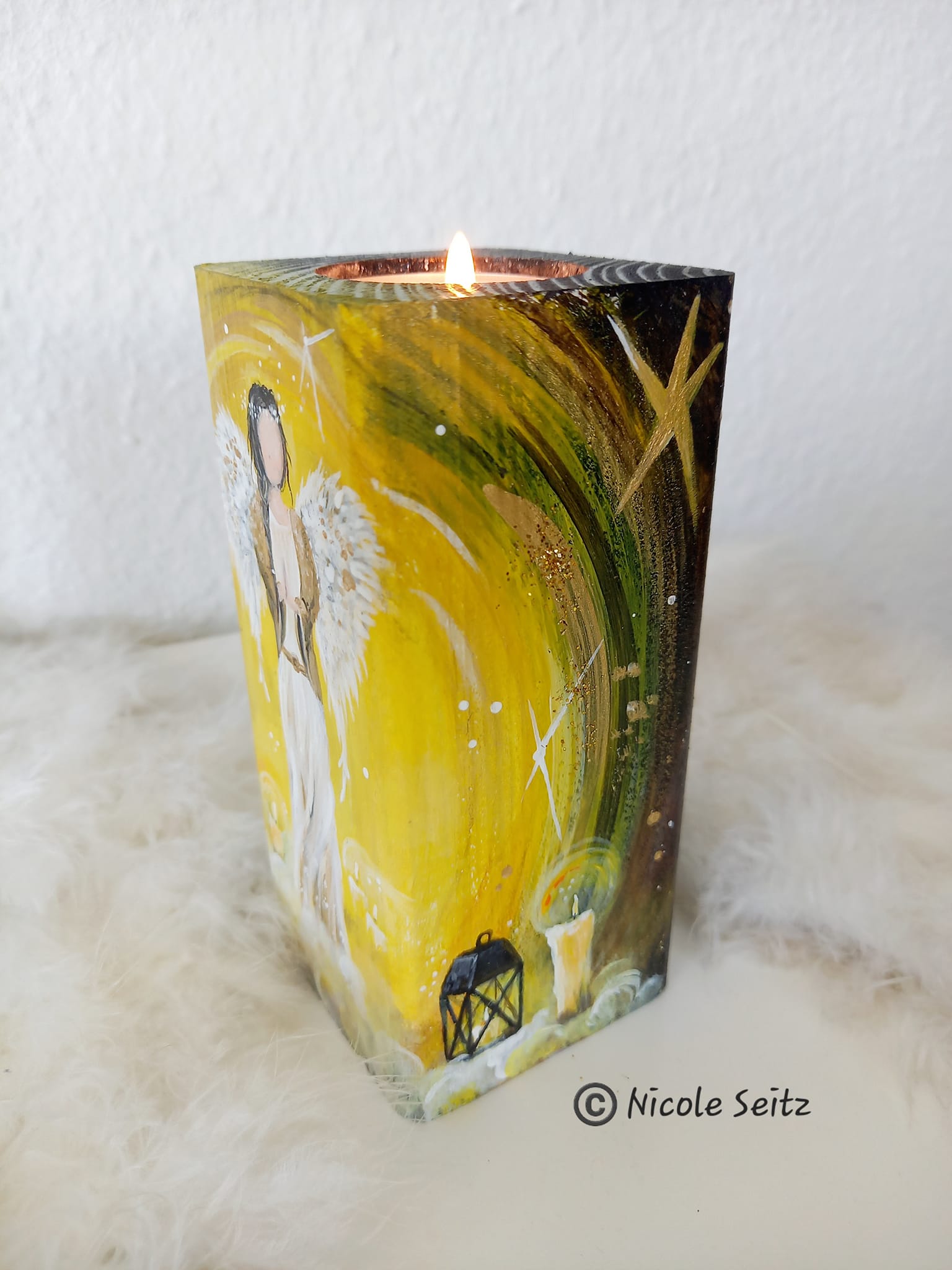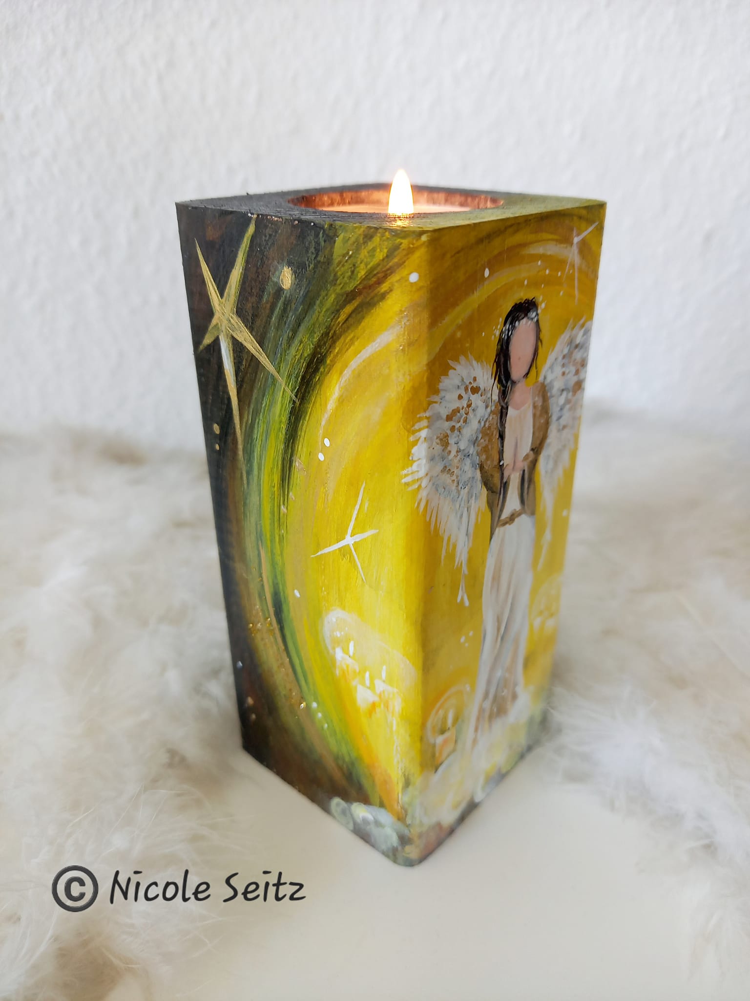 Engellicht aus Holz * Engel der Stille * handbemalt
