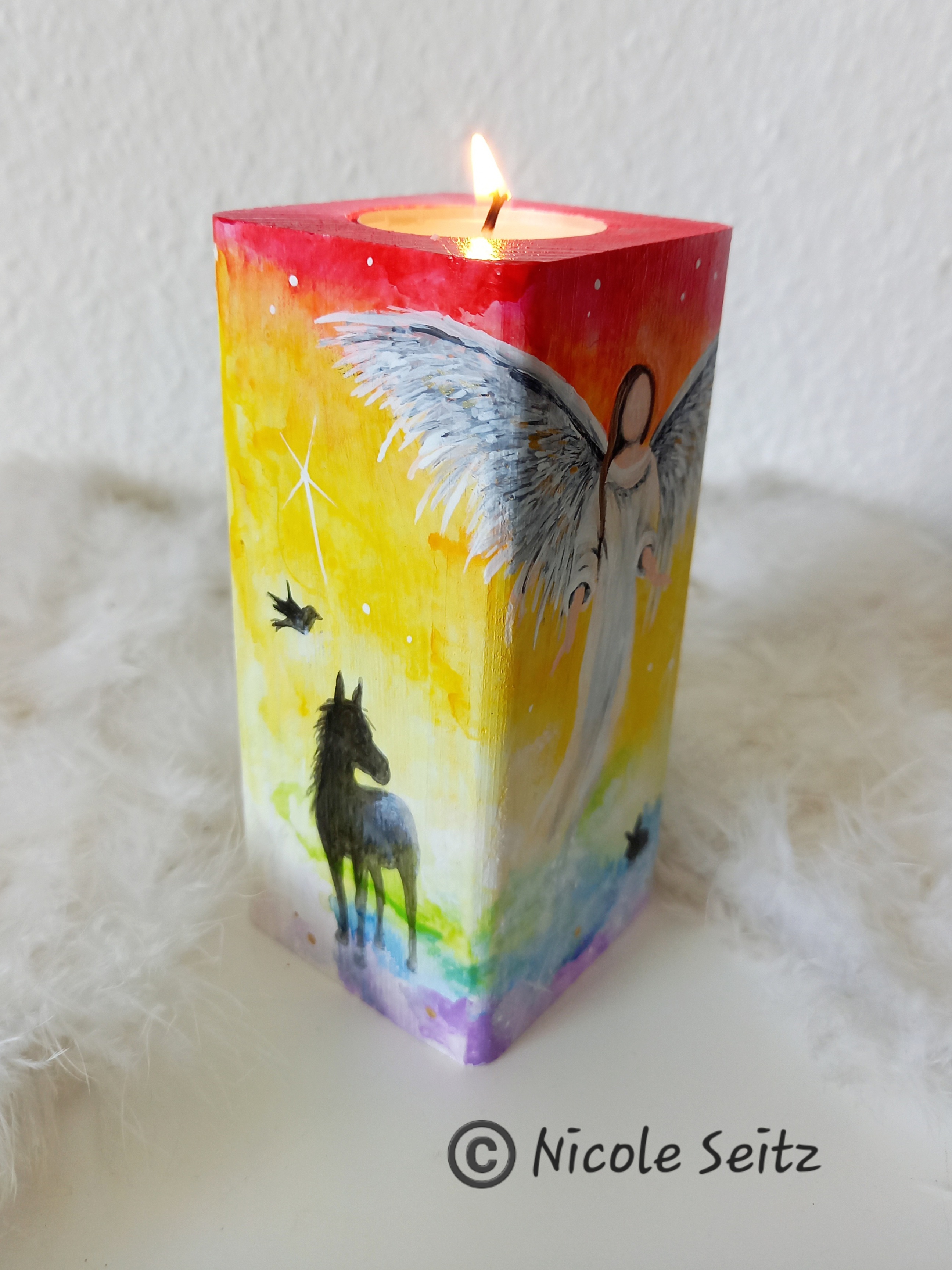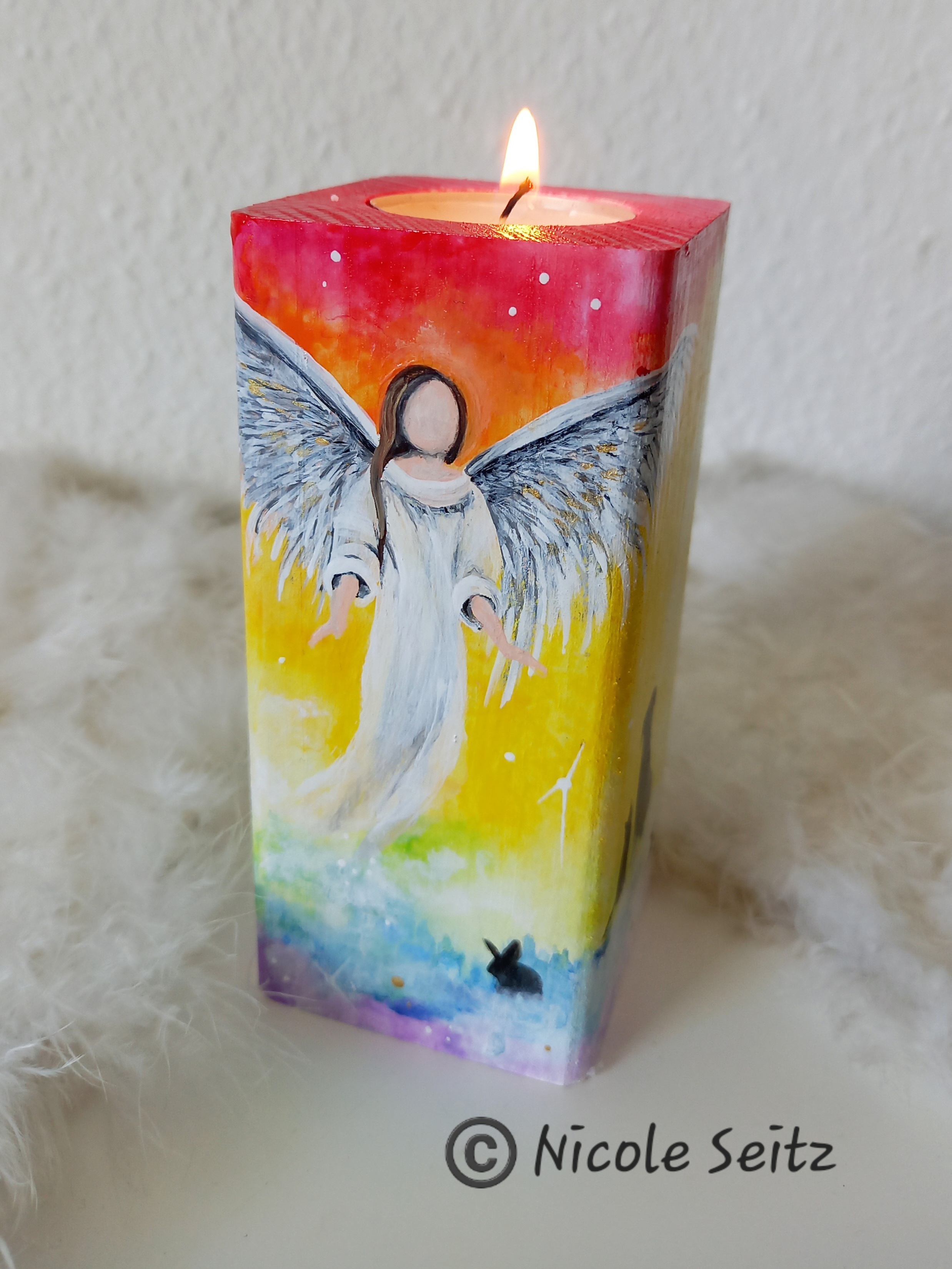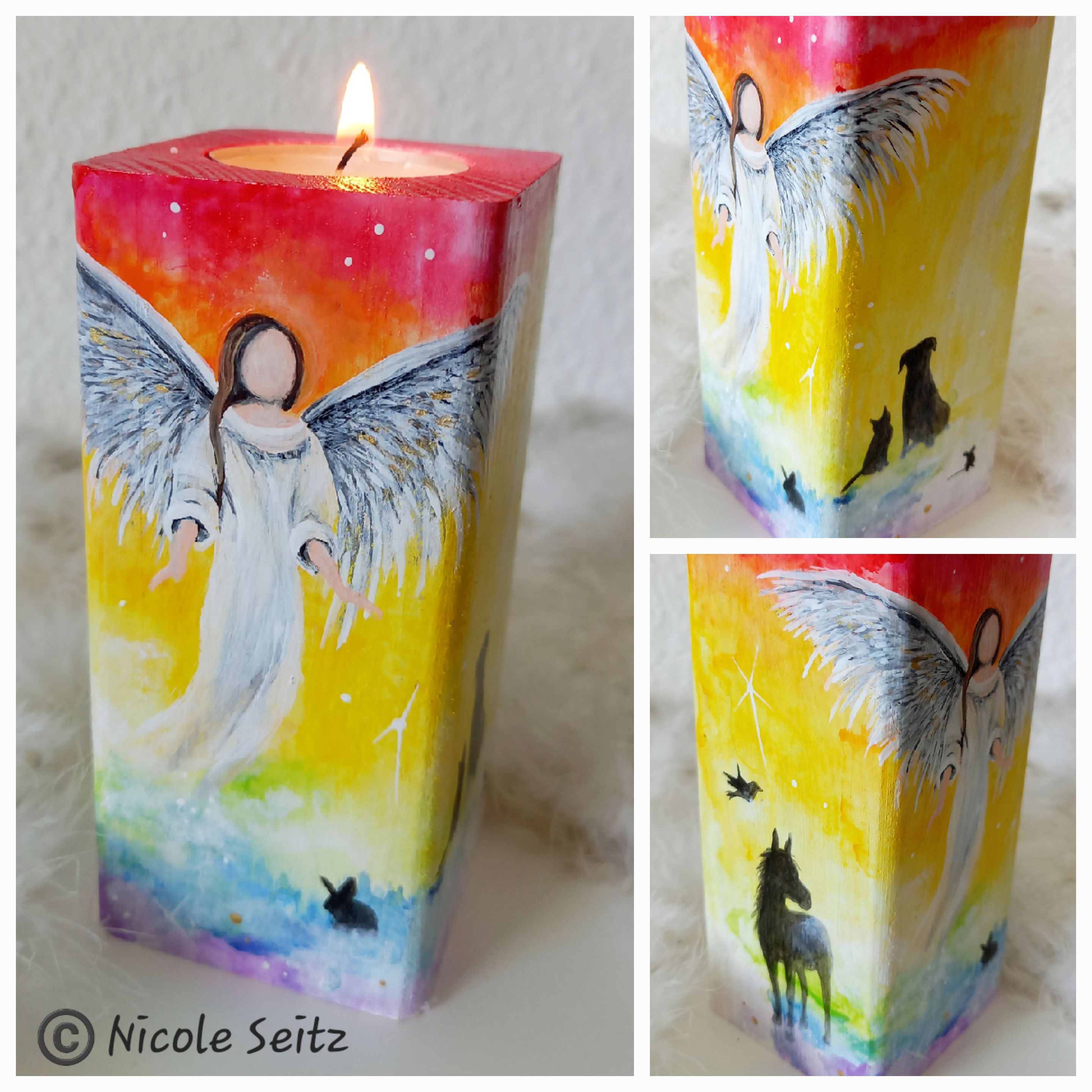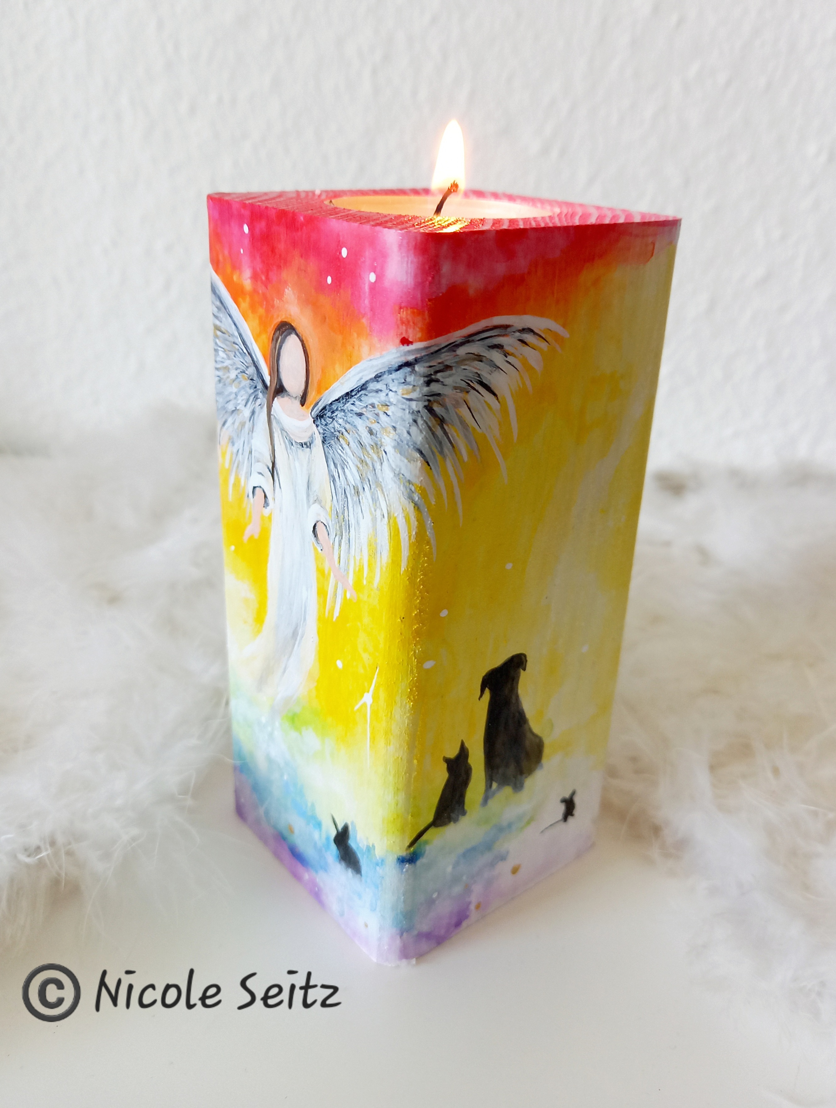 Engellicht aus Holz * Engel der Tiere * handbemalt