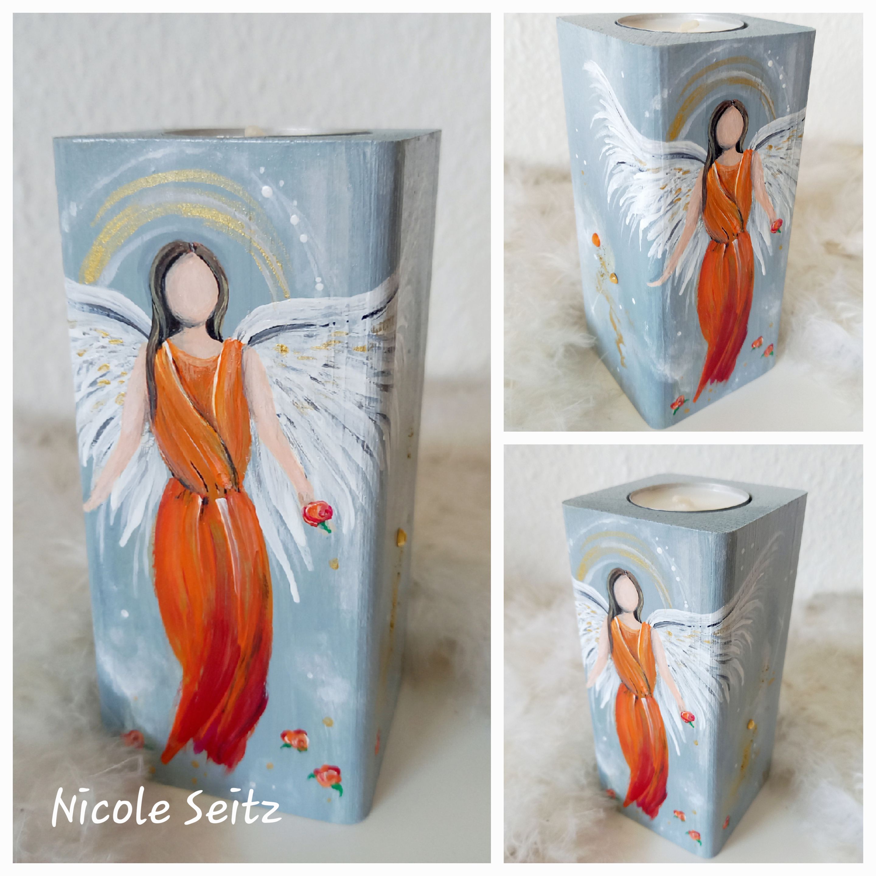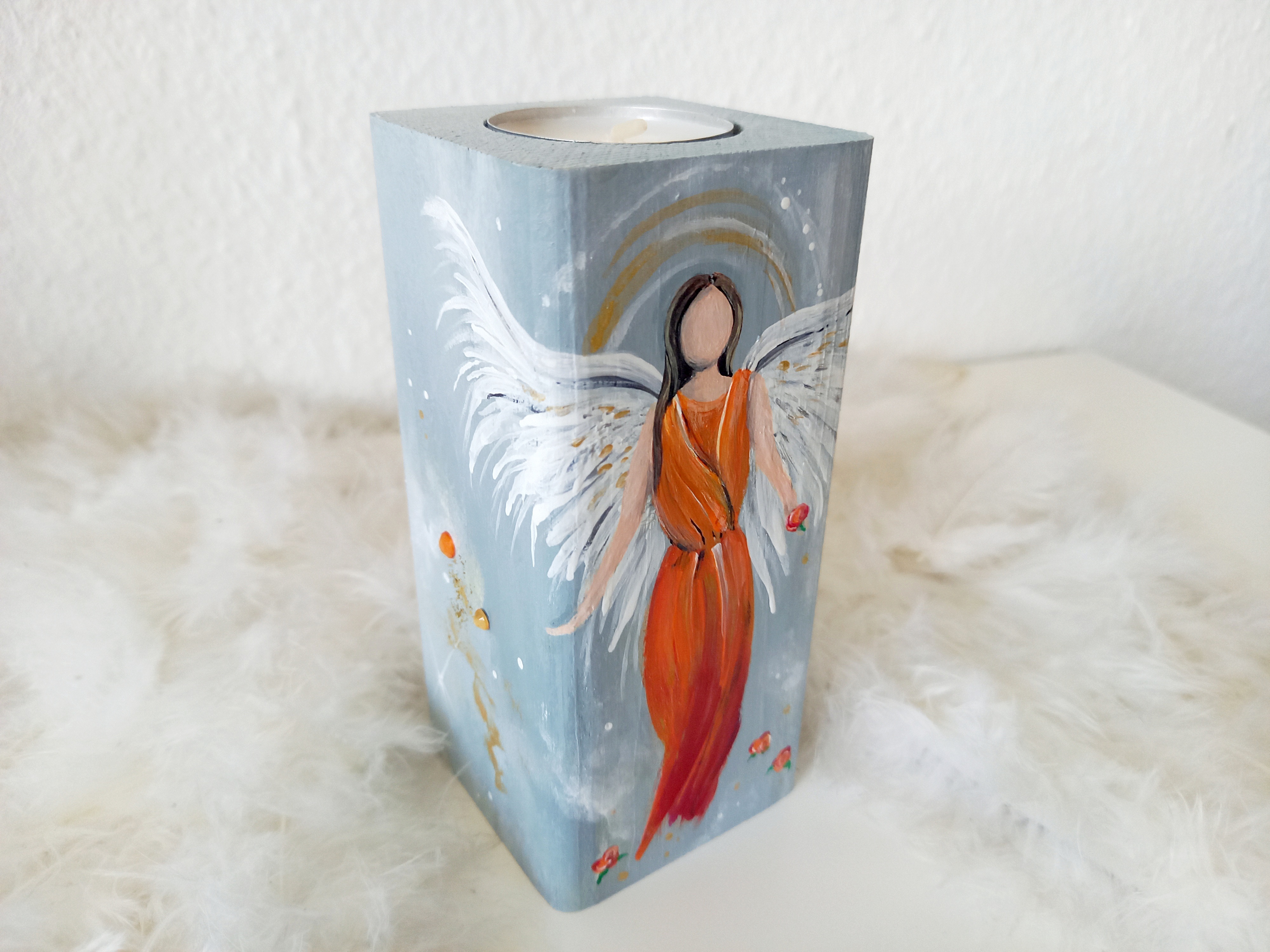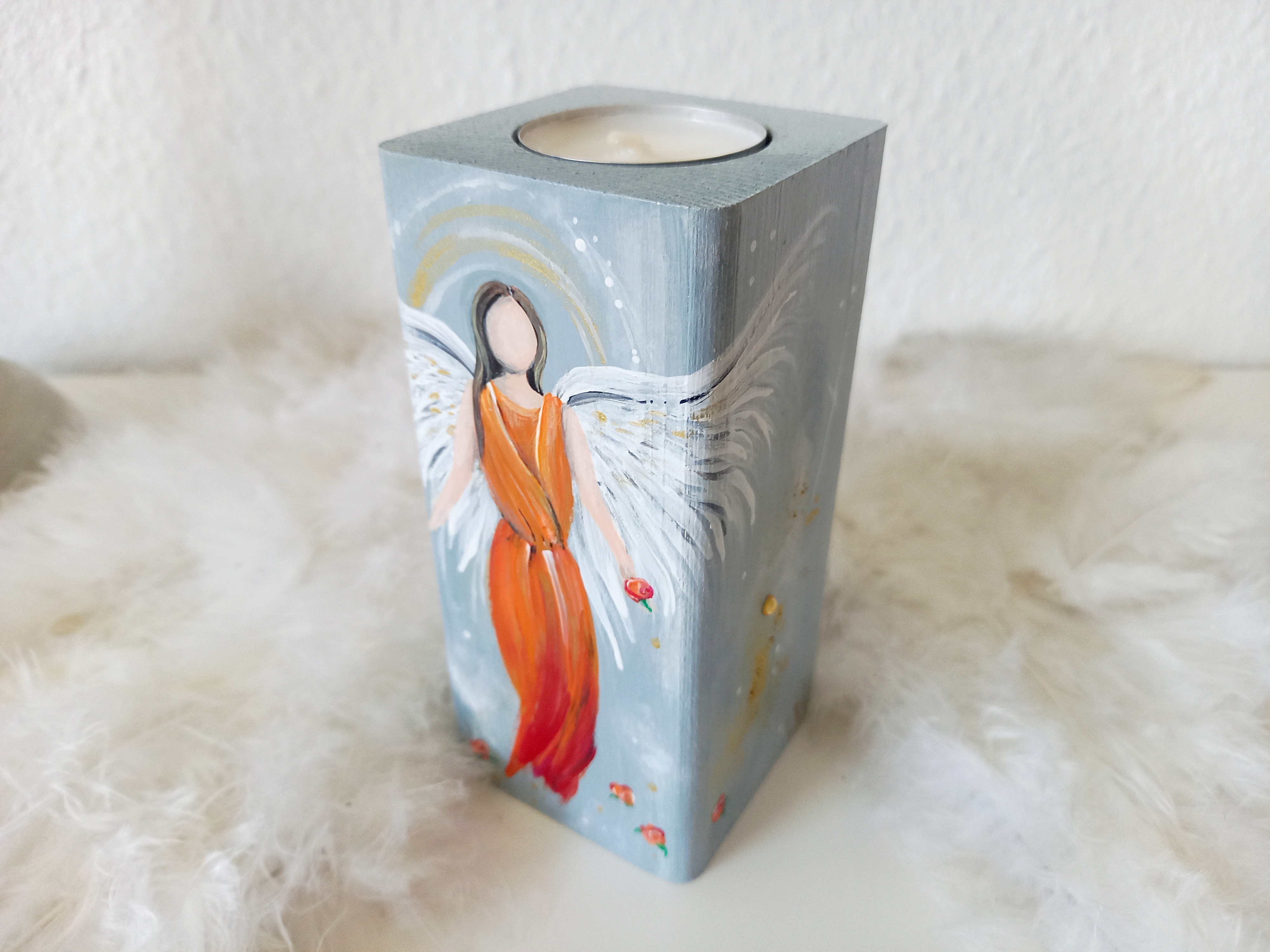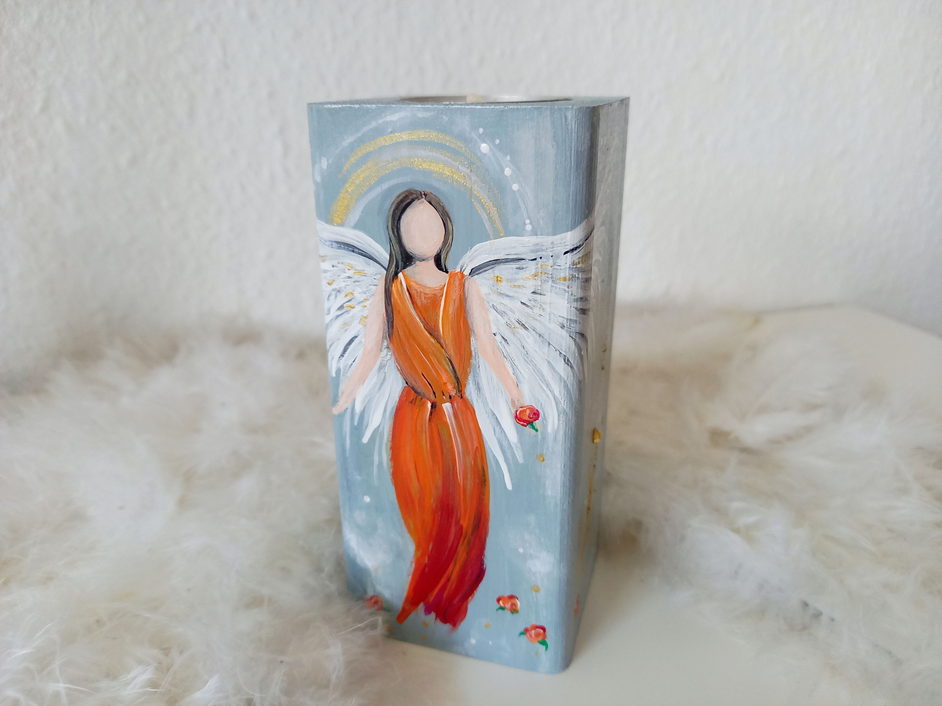 Engellicht aus Holz * Rosenengel * Orange * handbemalt