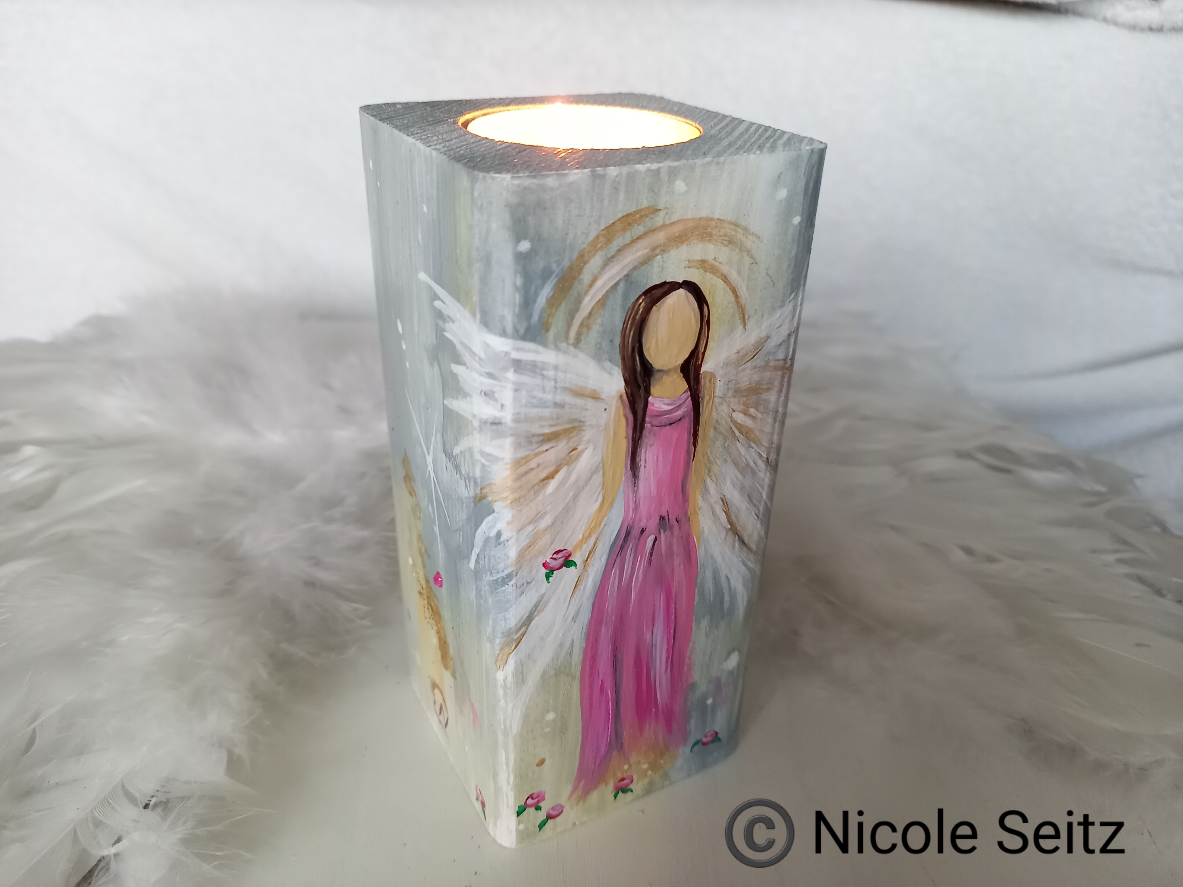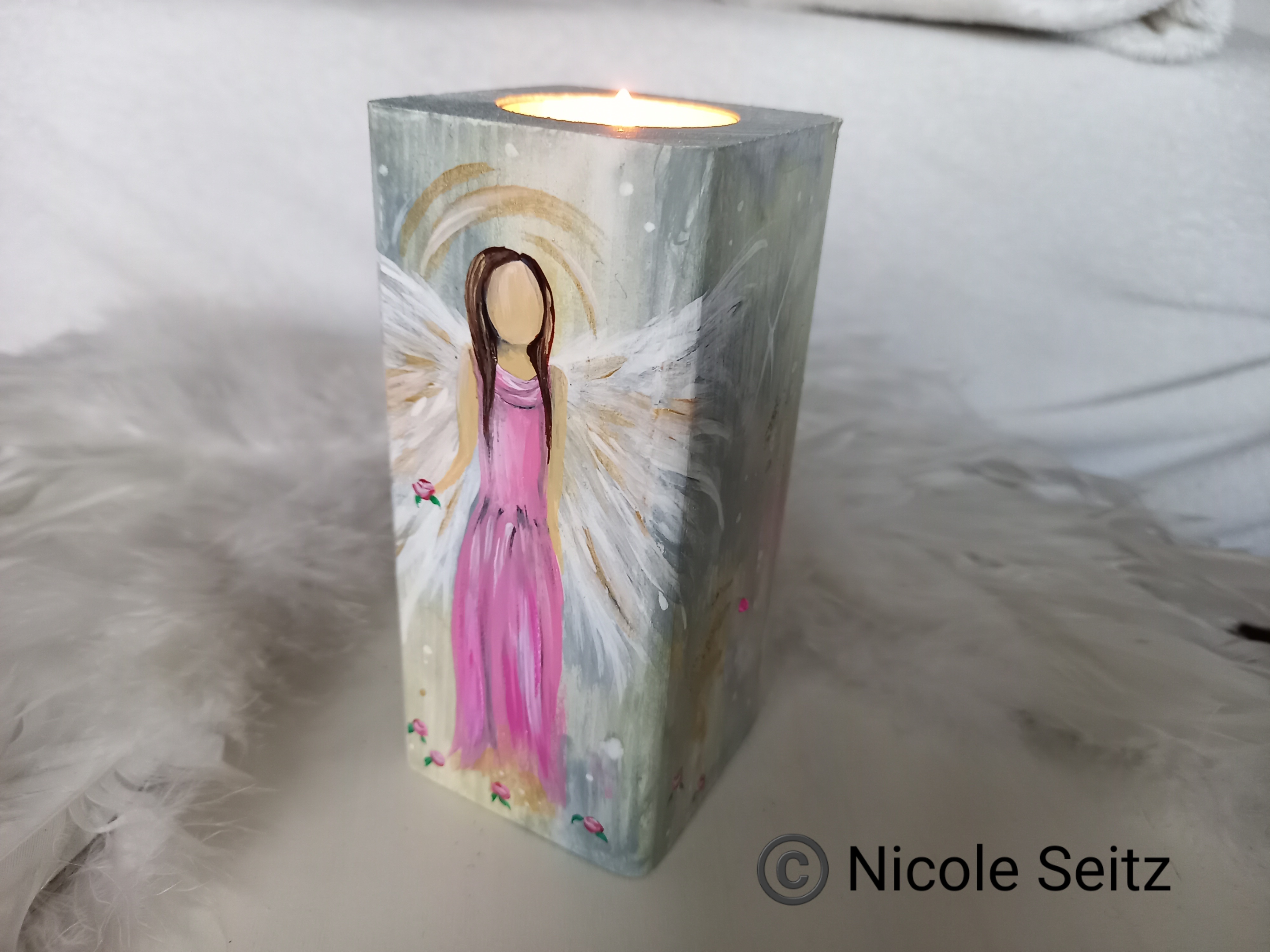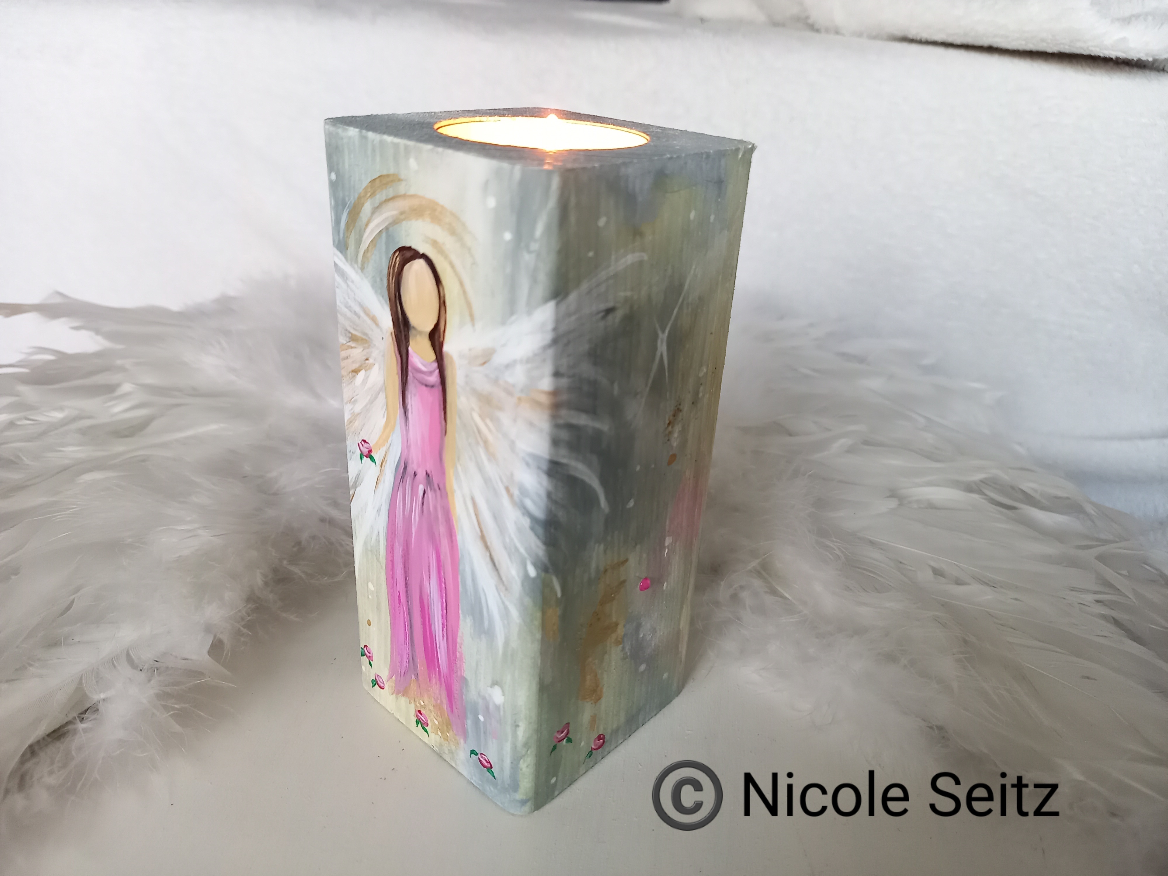 Engellicht aus Holz * Rosenengel * Rosa * handbemalt