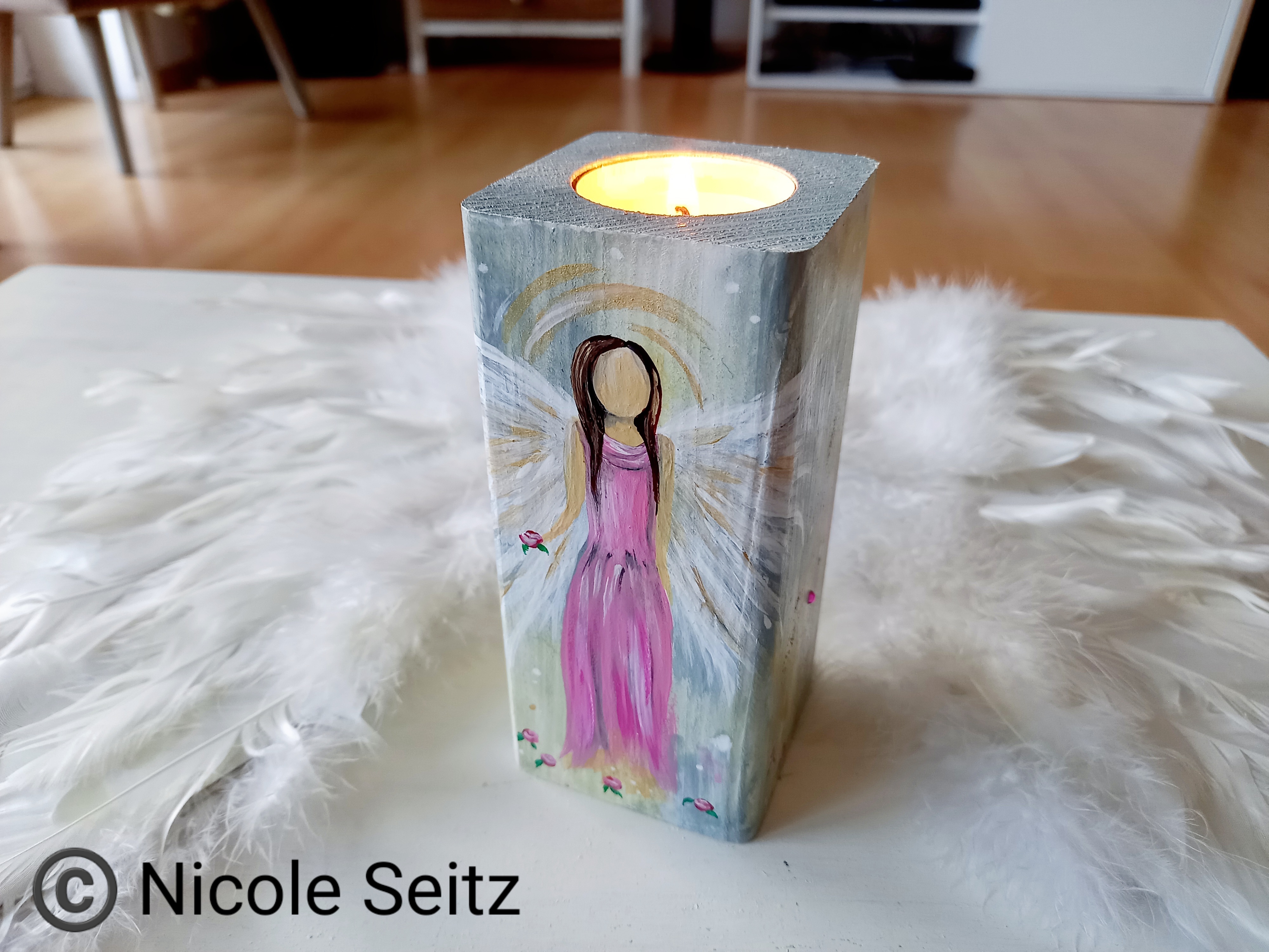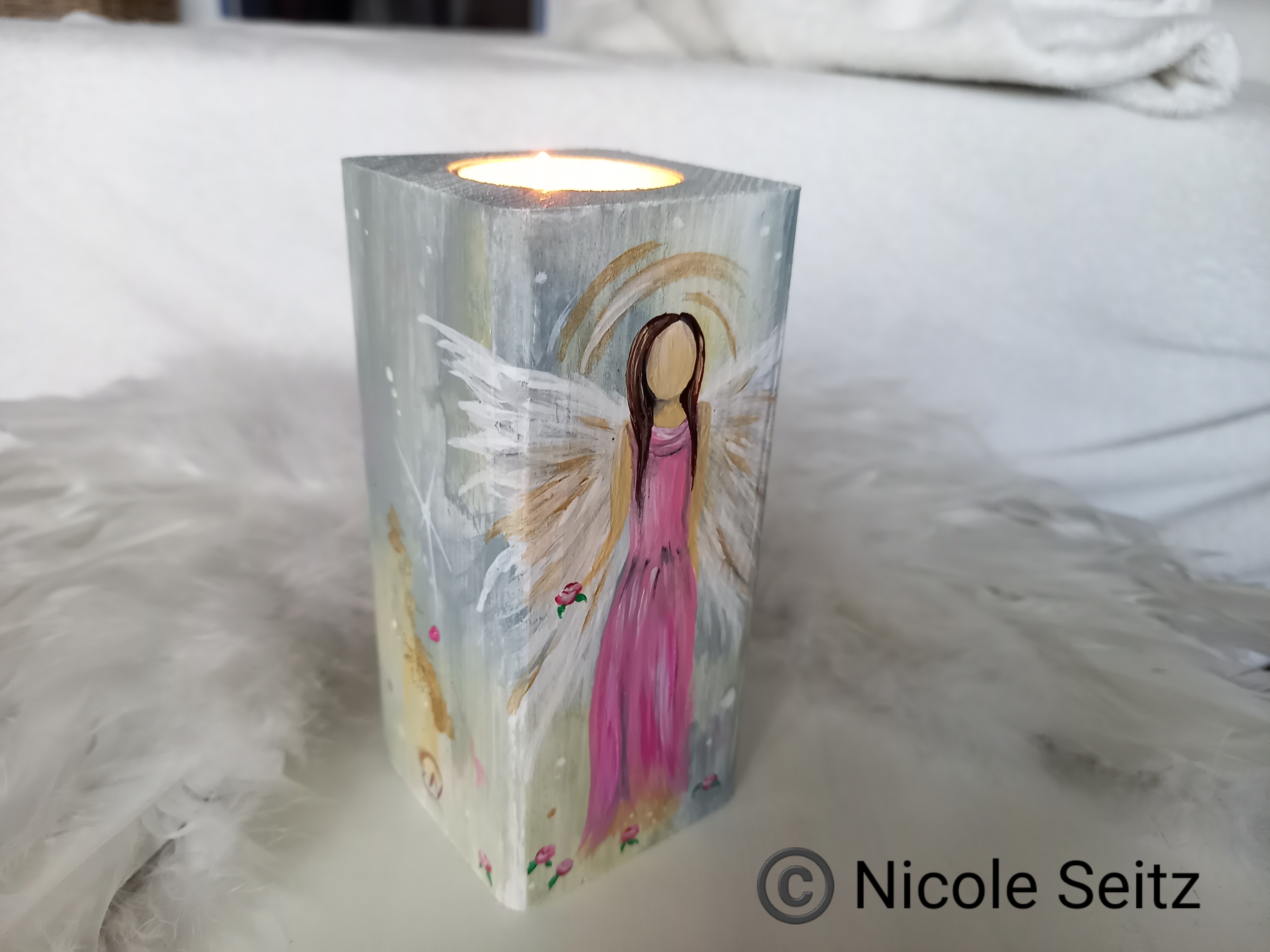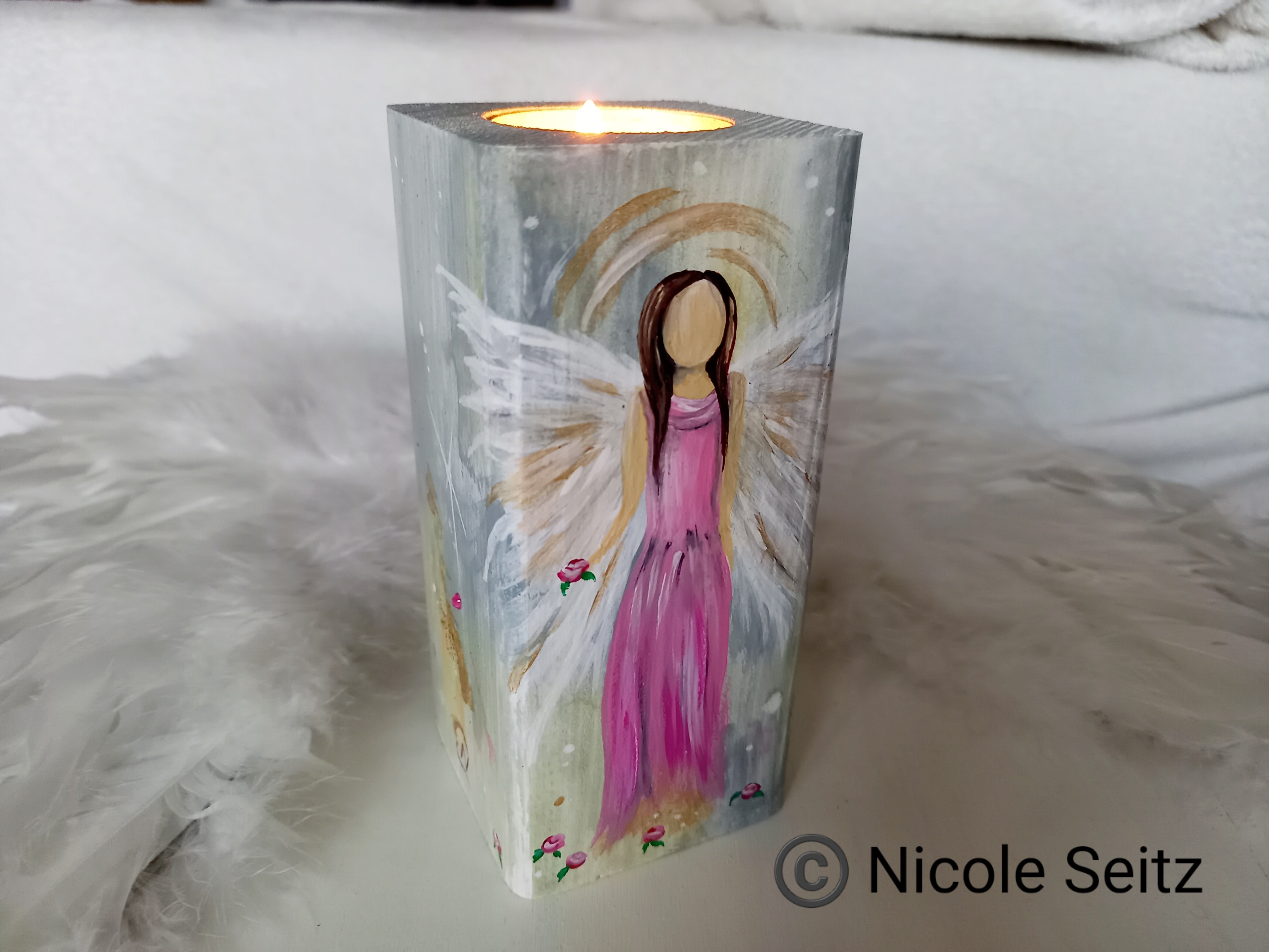 Engellicht aus Holz * Rosenengel * Rosa * handbemalt