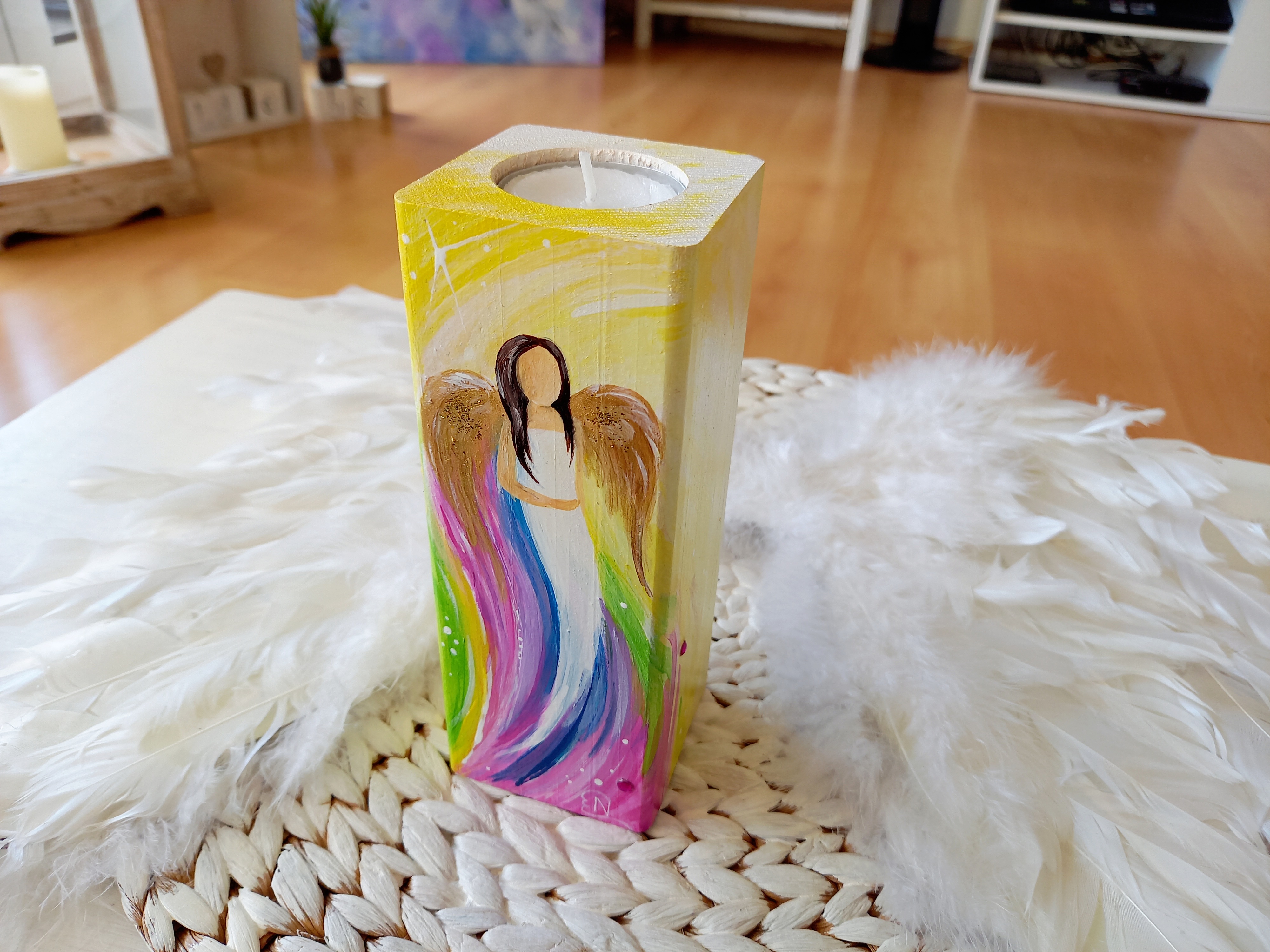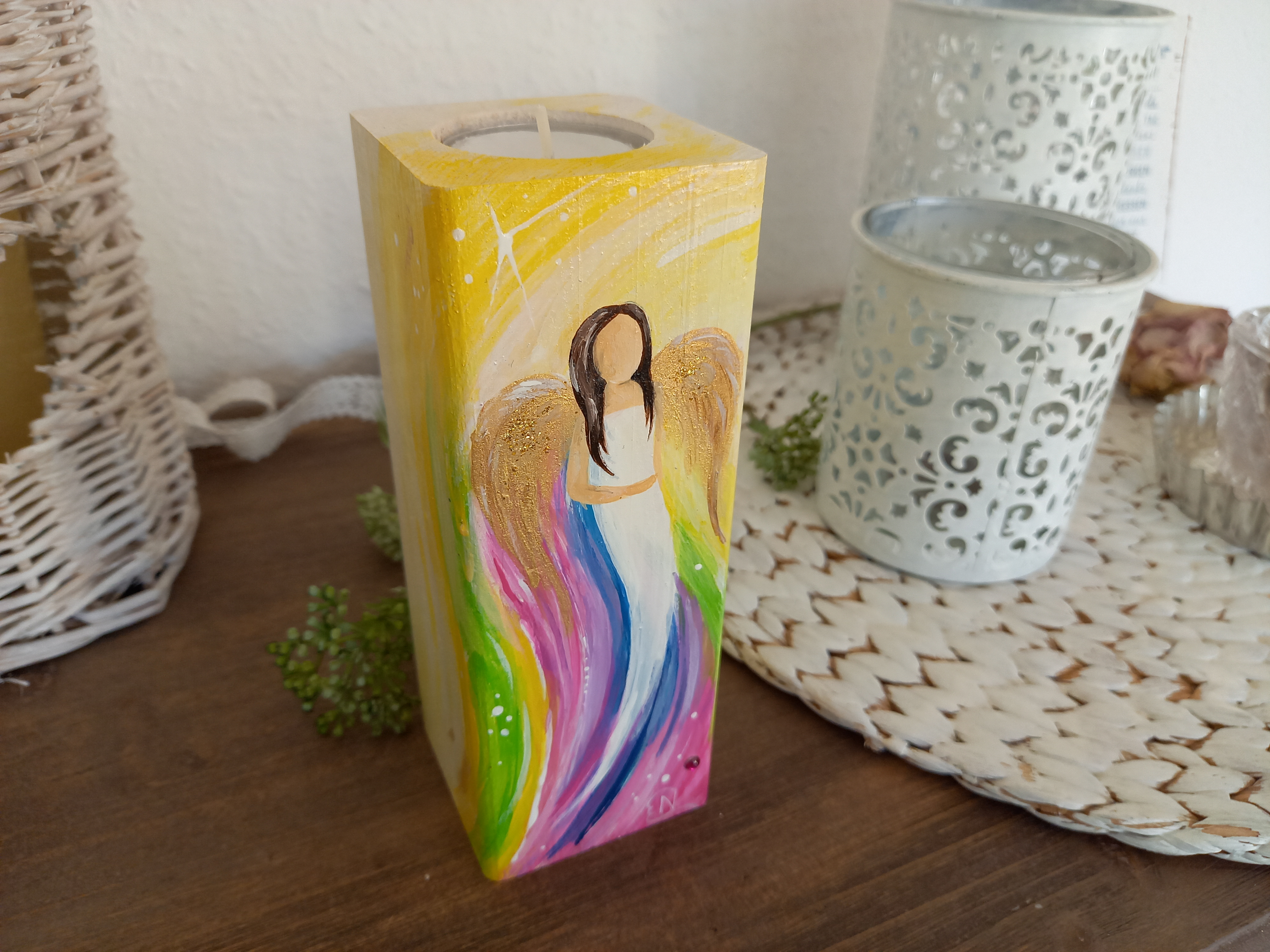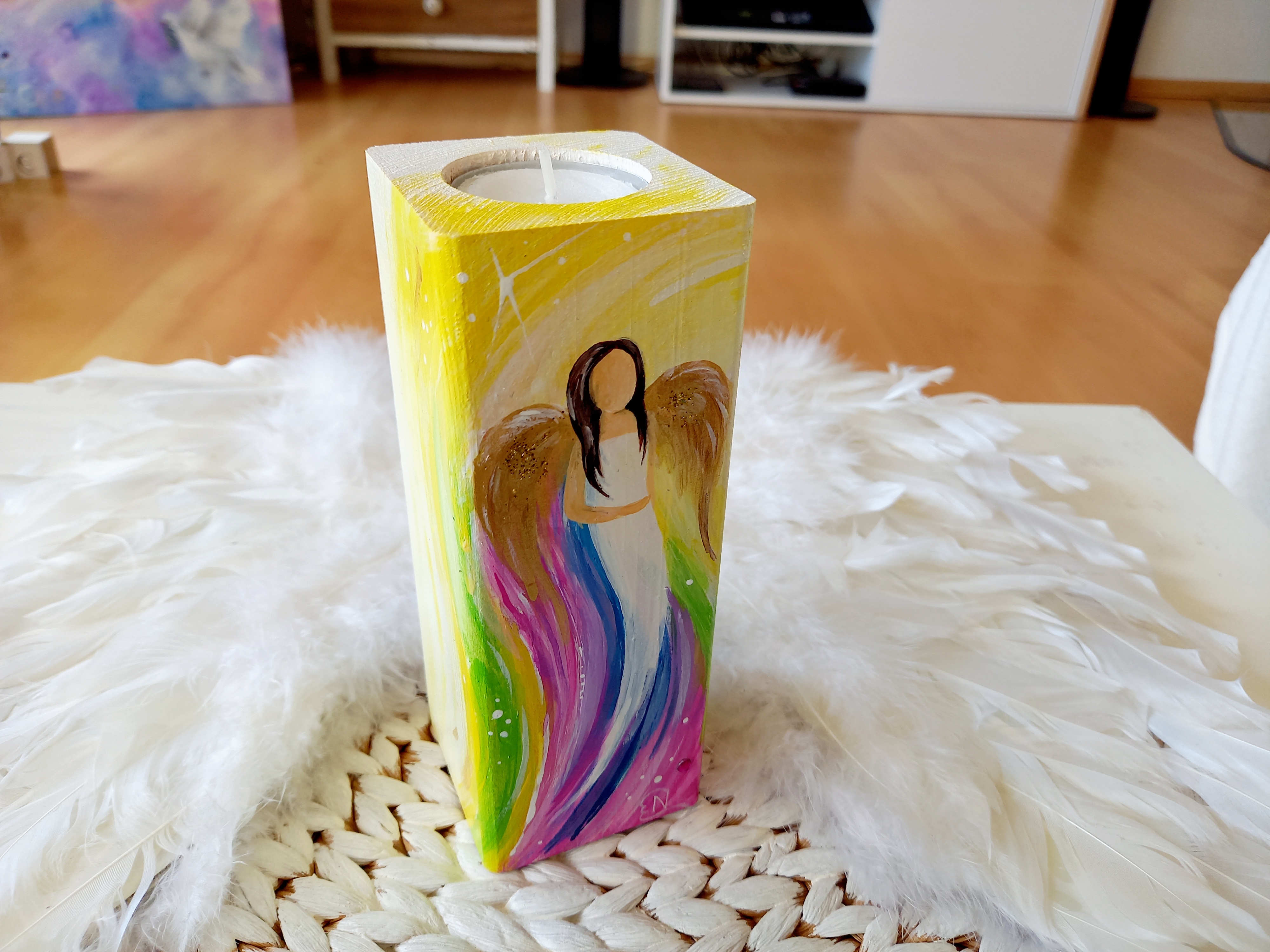 Preview: Engellicht aus Holz * Farbrausch * handbemalt