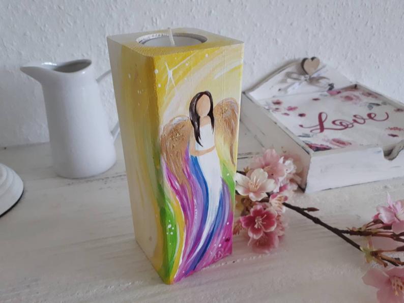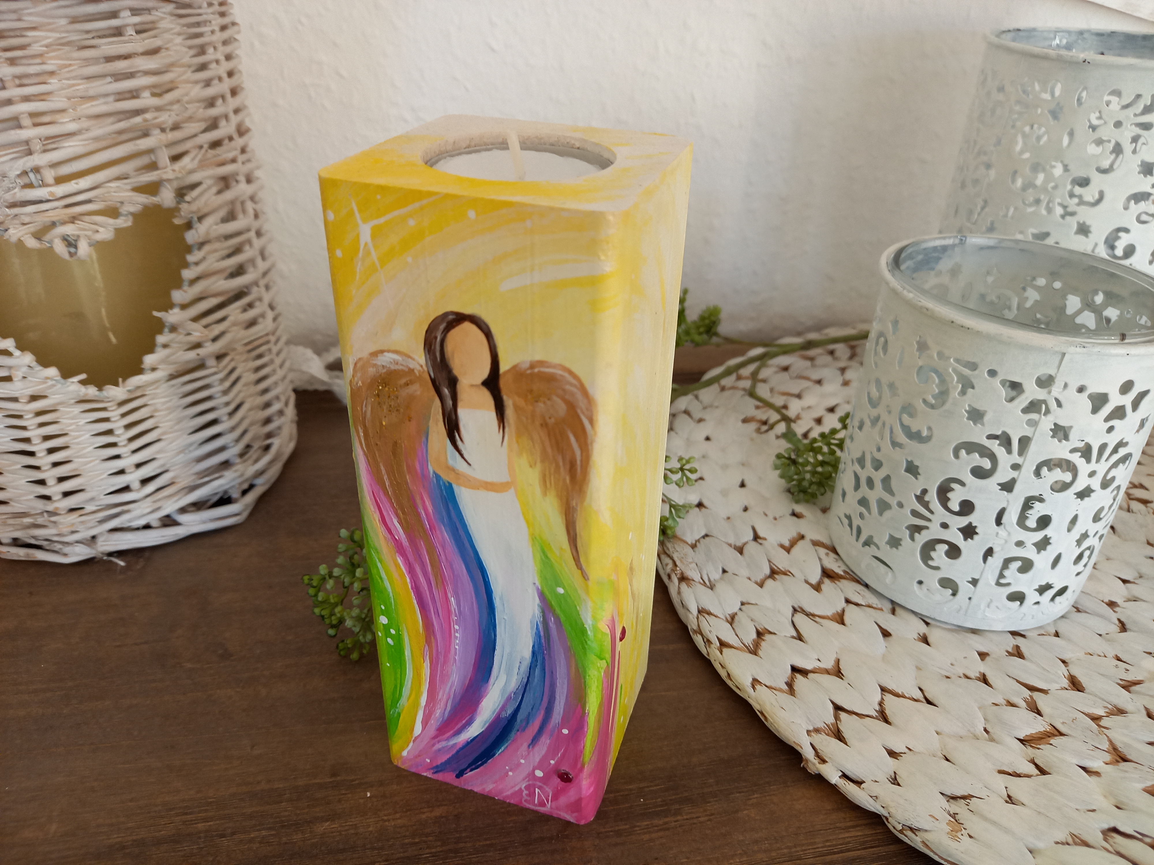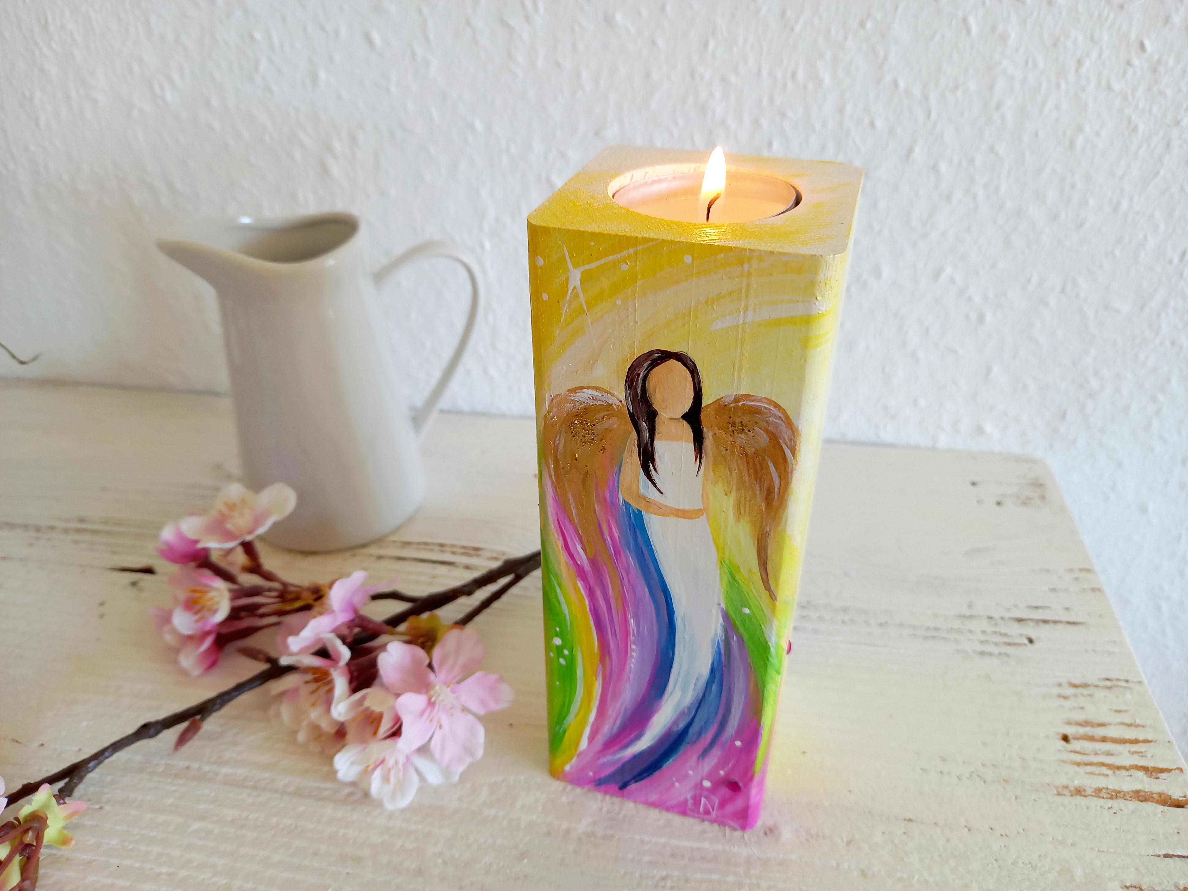 Preview: Engellicht aus Holz * Farbrausch * handbemalt