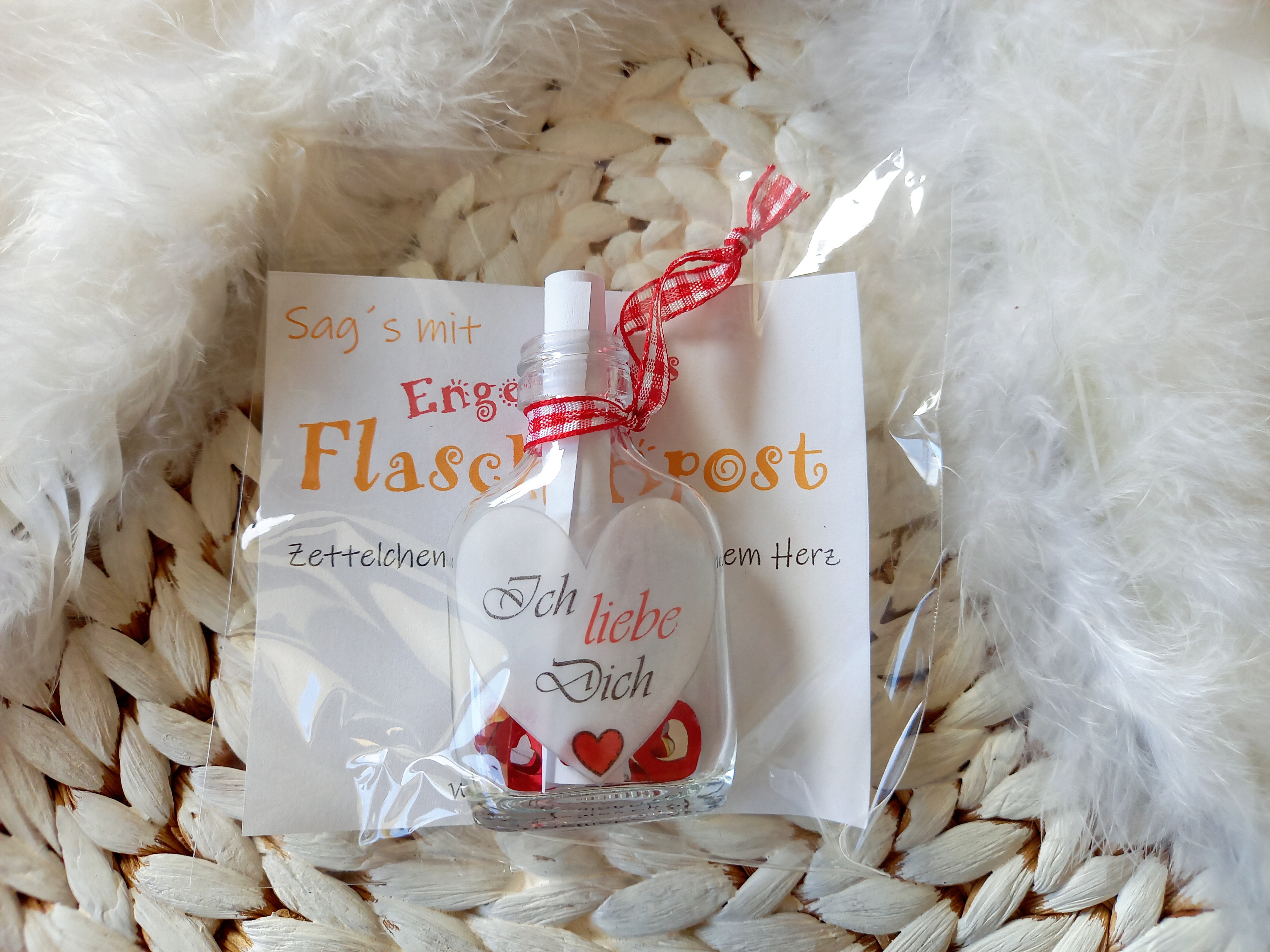 Sag's mit Engelliebe's Flaschenpost... ...süßes Fläschchen mit Zettel (+ Ersatzzettel) für liebe Zeilen.
