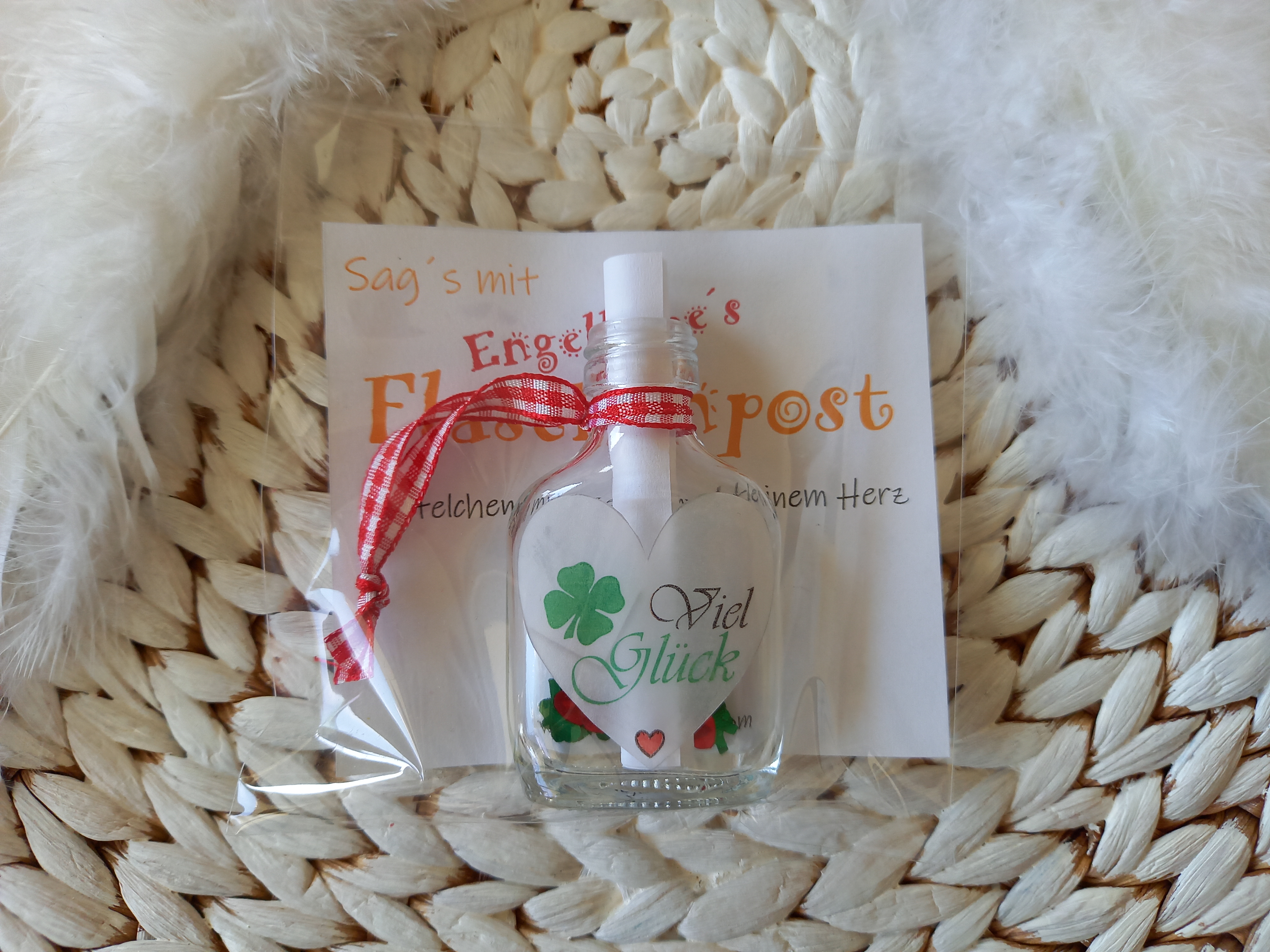 ...süßes Fläschchen mit Zettel (+ Ersatzzettel) für liebe Zeilen.