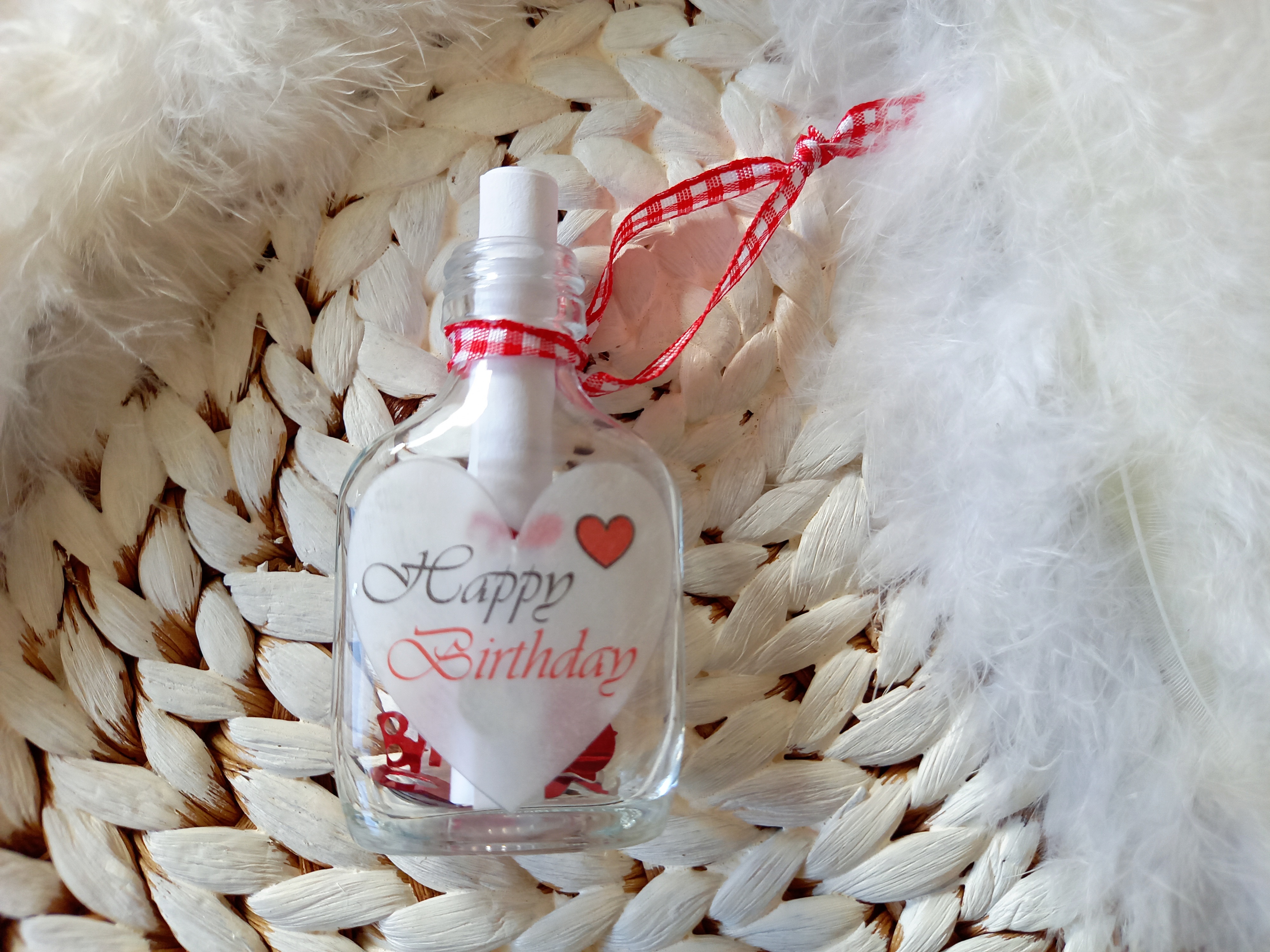 Mit Karoband zum Anhängen, z.B. am Flaschenhals, Geschenk etc.