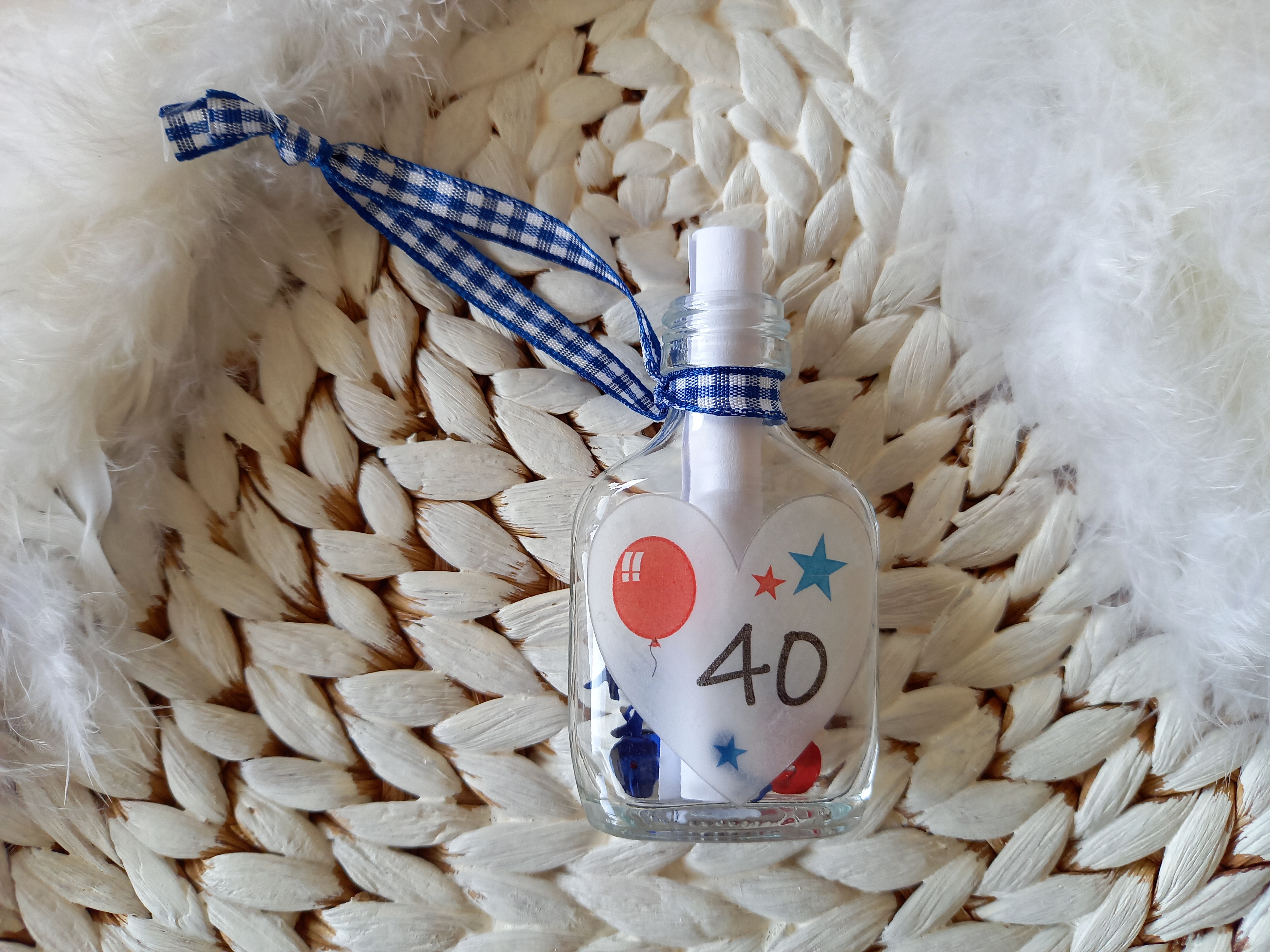 Mit Karoband zum Anhängen, z.B. am Flaschenhals, Geschenk etc.