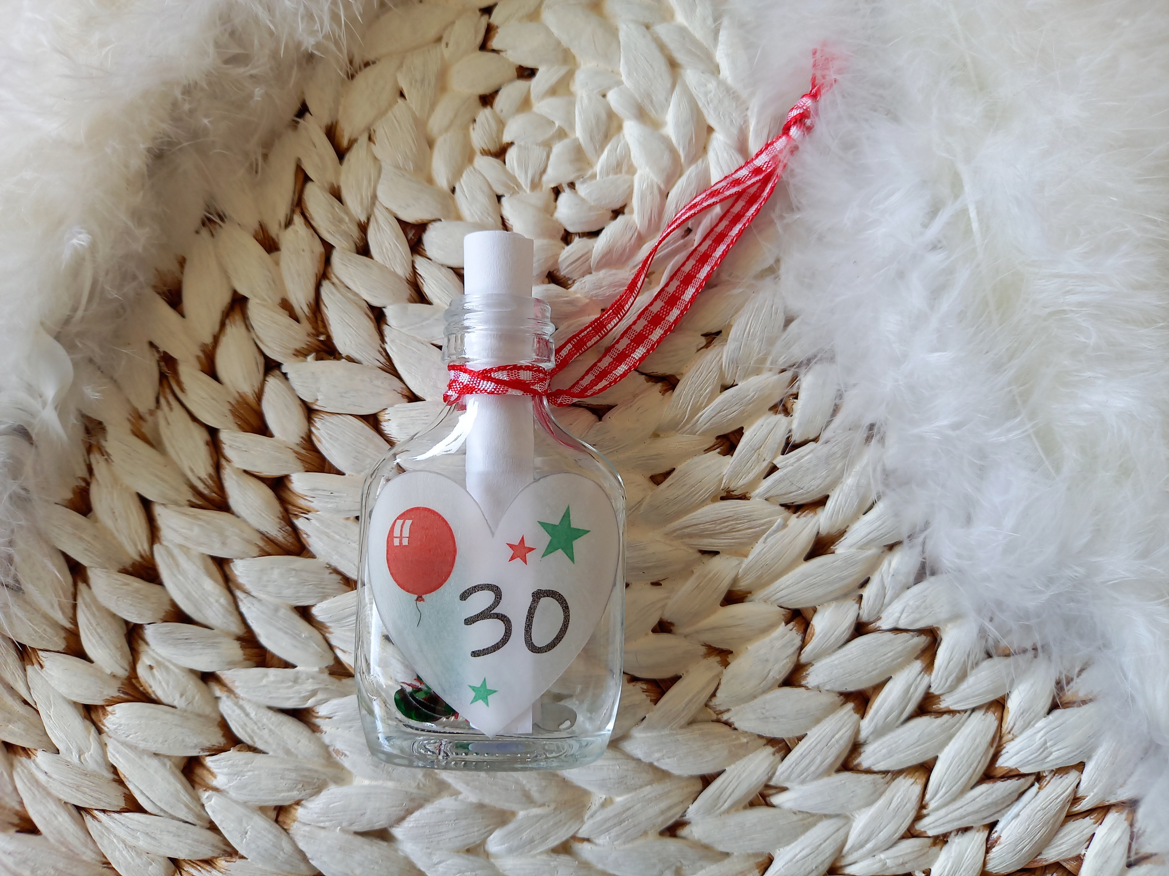 Mit Karoband zum Anhängen, z.B. am Flaschenhals, Geschenk etc.